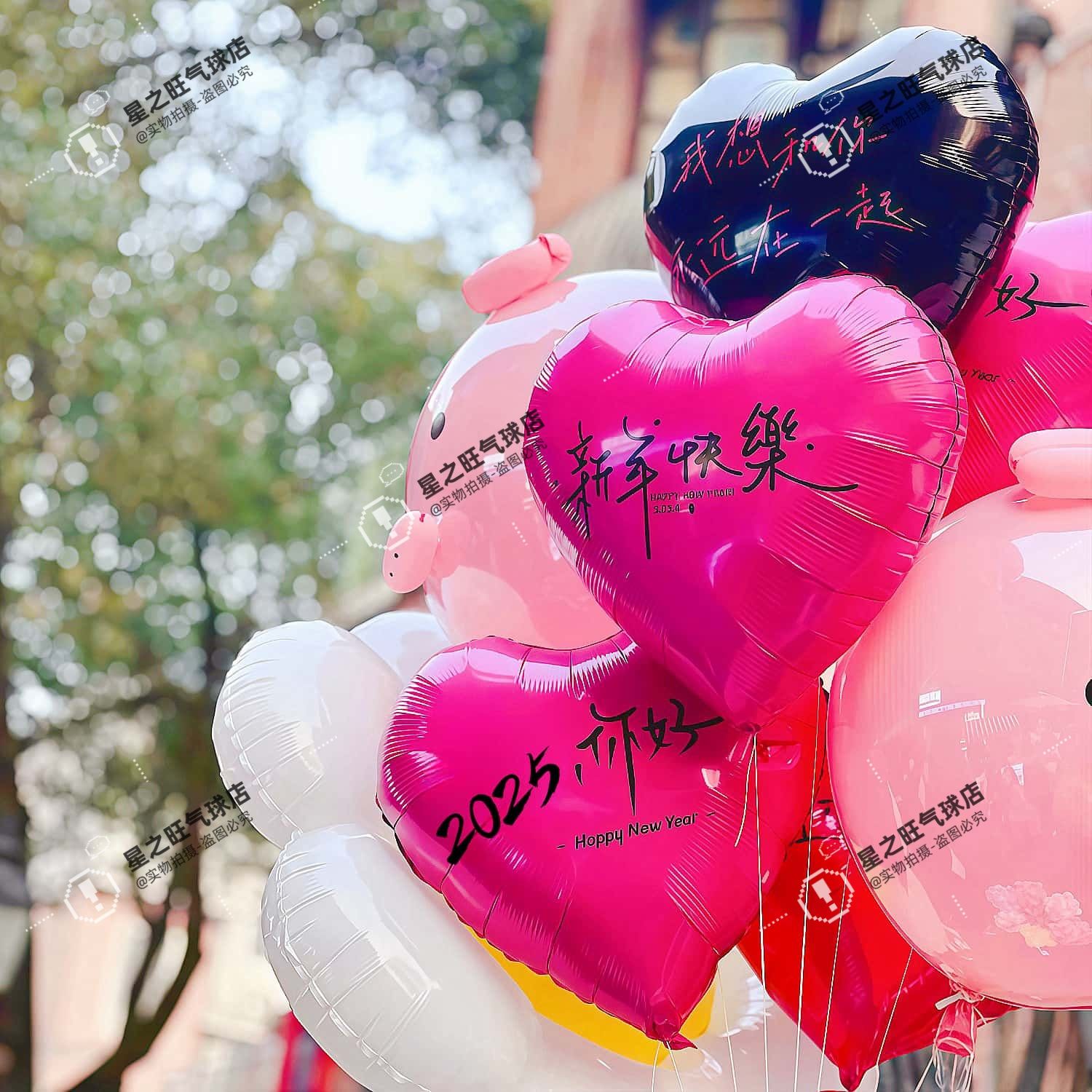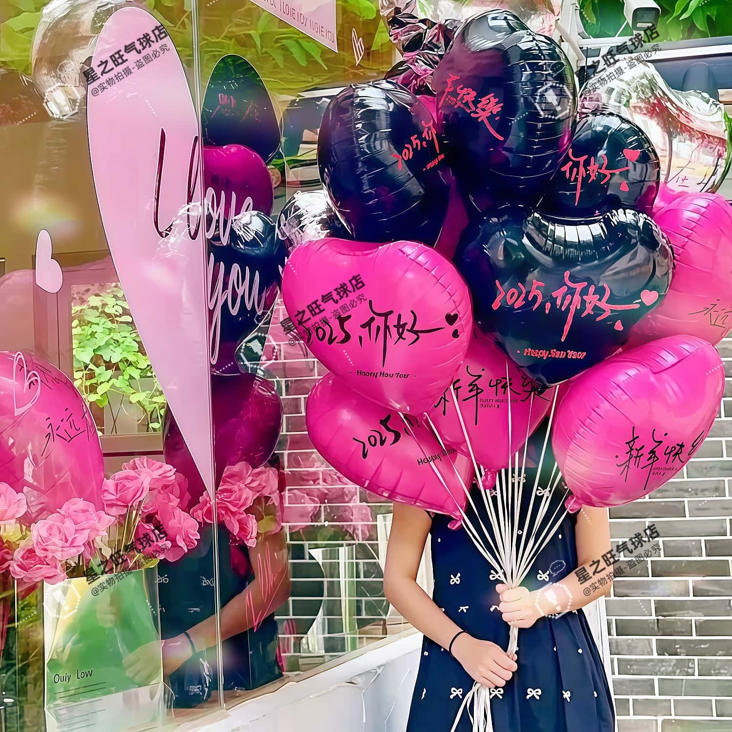 跨年摆摊批发2025年铝膜气球生日场景布置装饰仪式网红拍照爱心