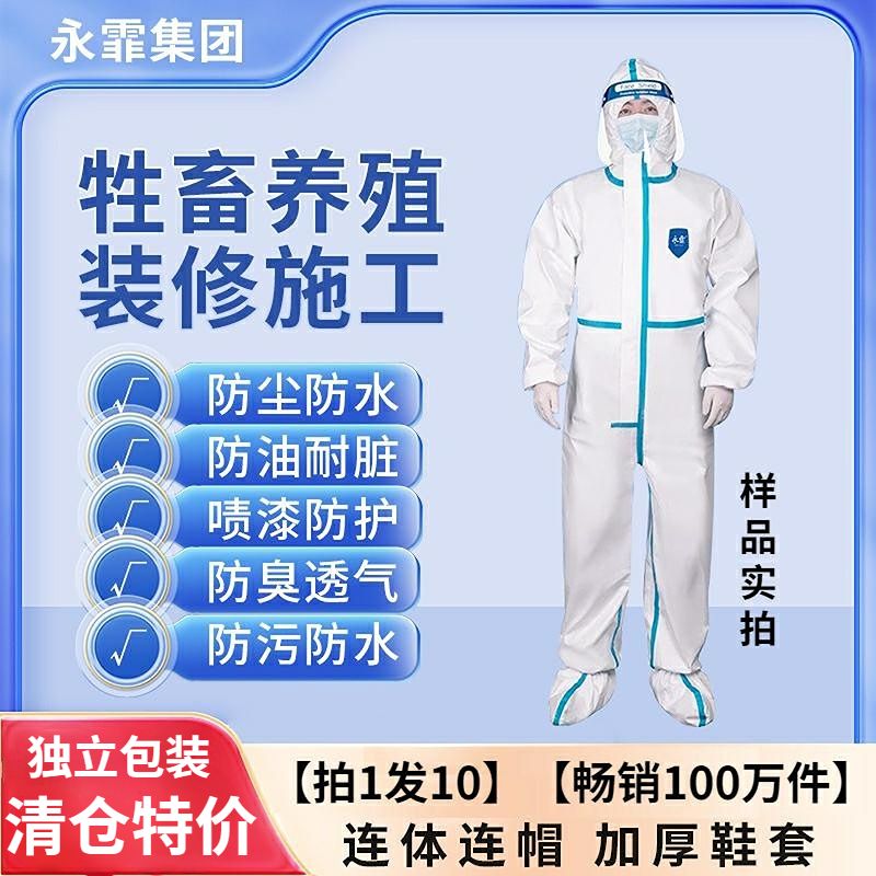 一次性防护服批发连体带帽全身防尘污工作服猪场养殖场喷漆隔离衣