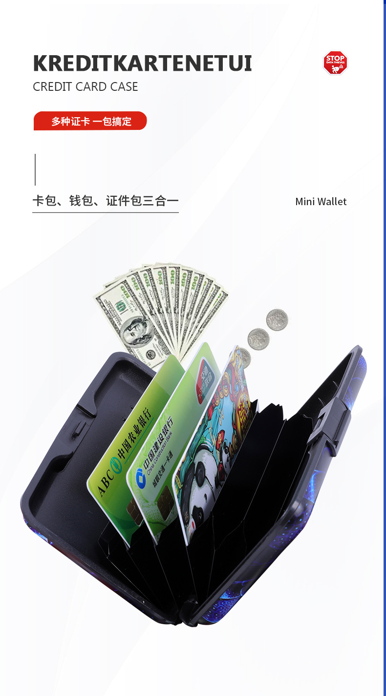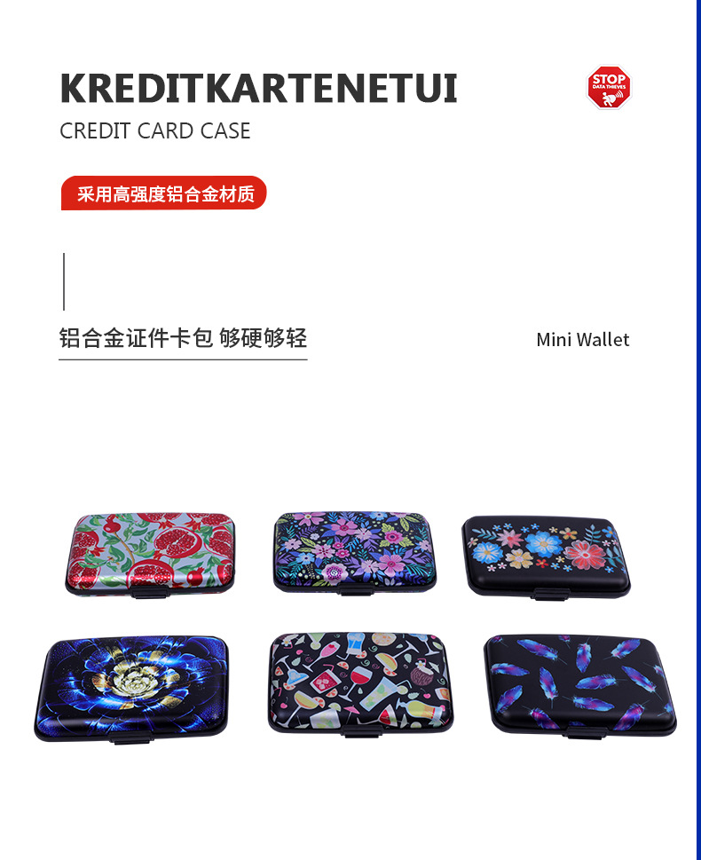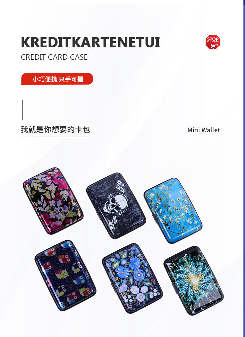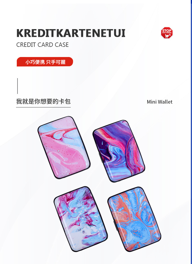 防RFID优价供应新款银行印花卡盒 铝合金信用卡包铝面彩色名片盒
