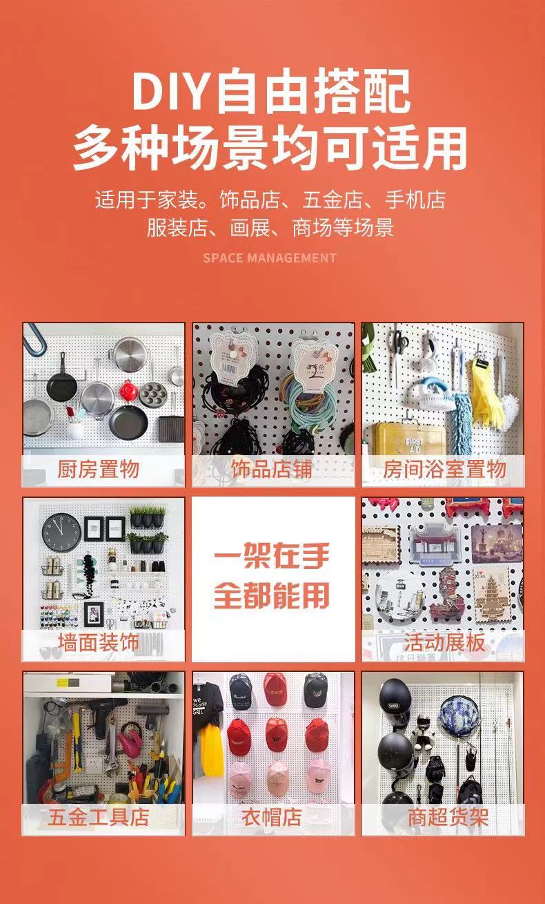 圆孔金属洞洞板置物架入户万能收纳架展示架上墙五金工具挂板墙