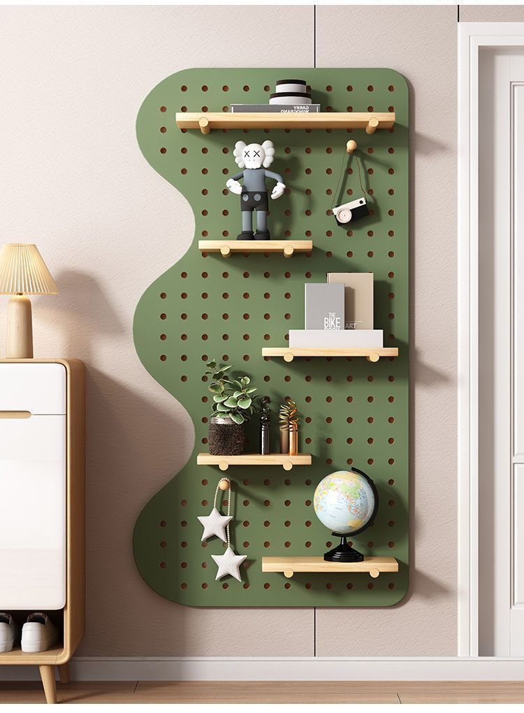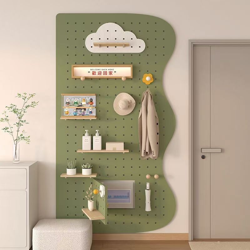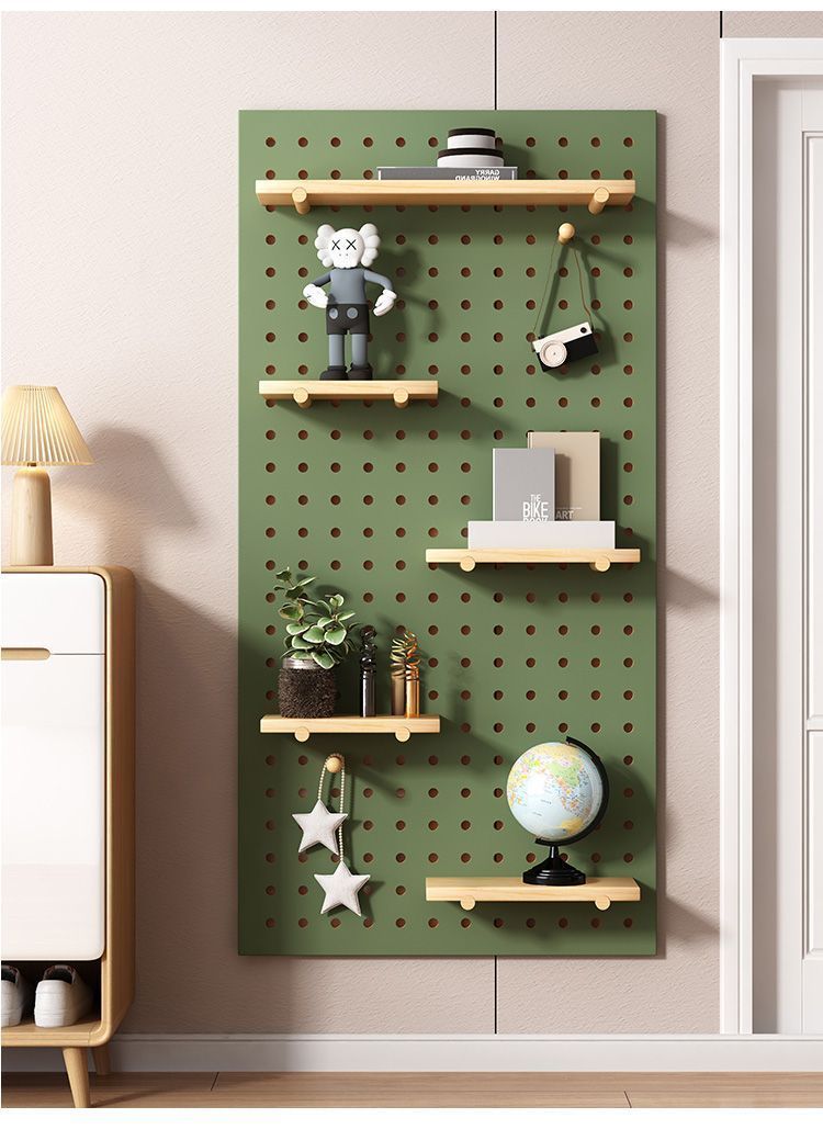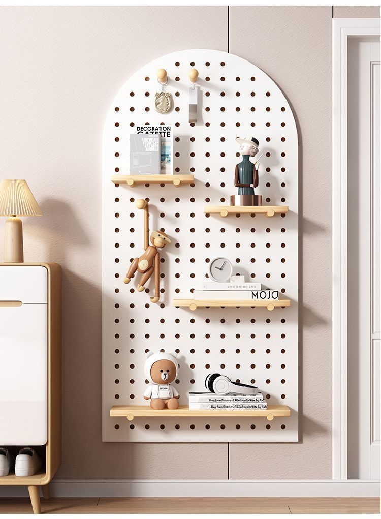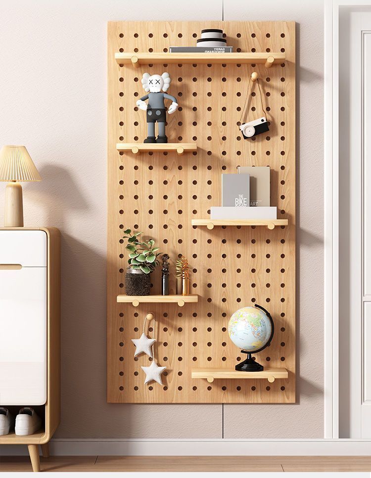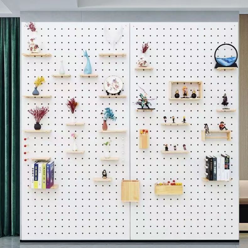 洞洞板定制玄关墙面置物架墙上实木挂板入户隔板收纳架墙壁展示架