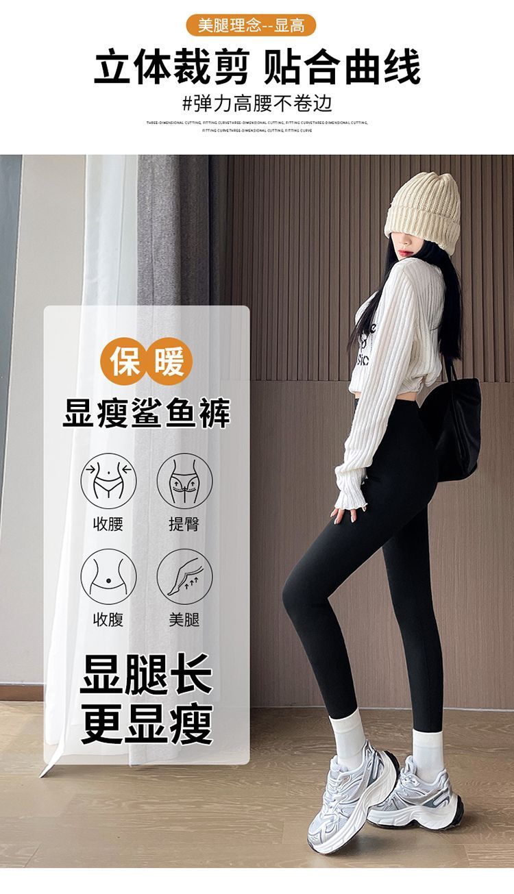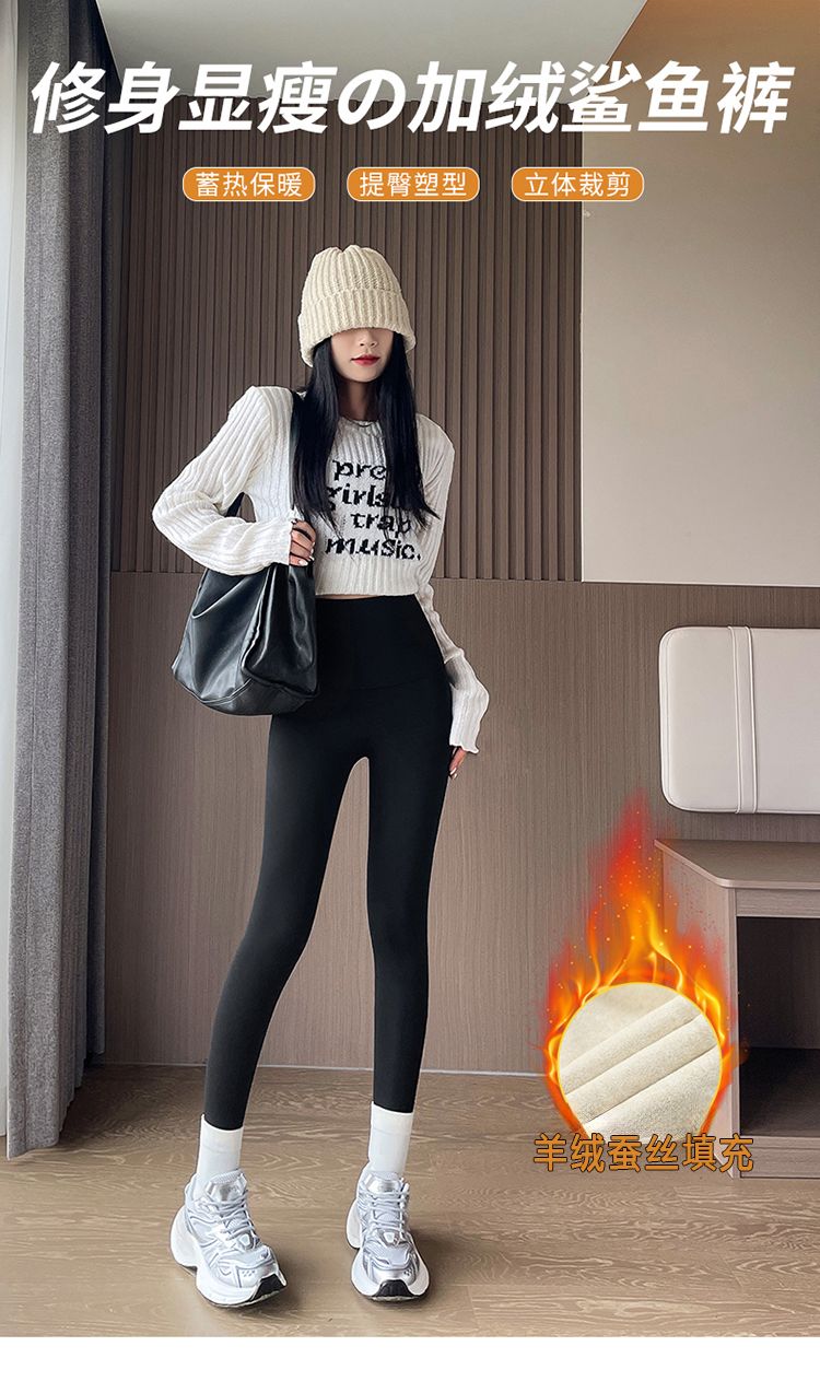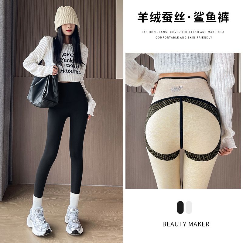 羊绒鲨鱼裤女外穿冬季新款加绒加厚保暖高腰提臀蚕丝打底芭比裤