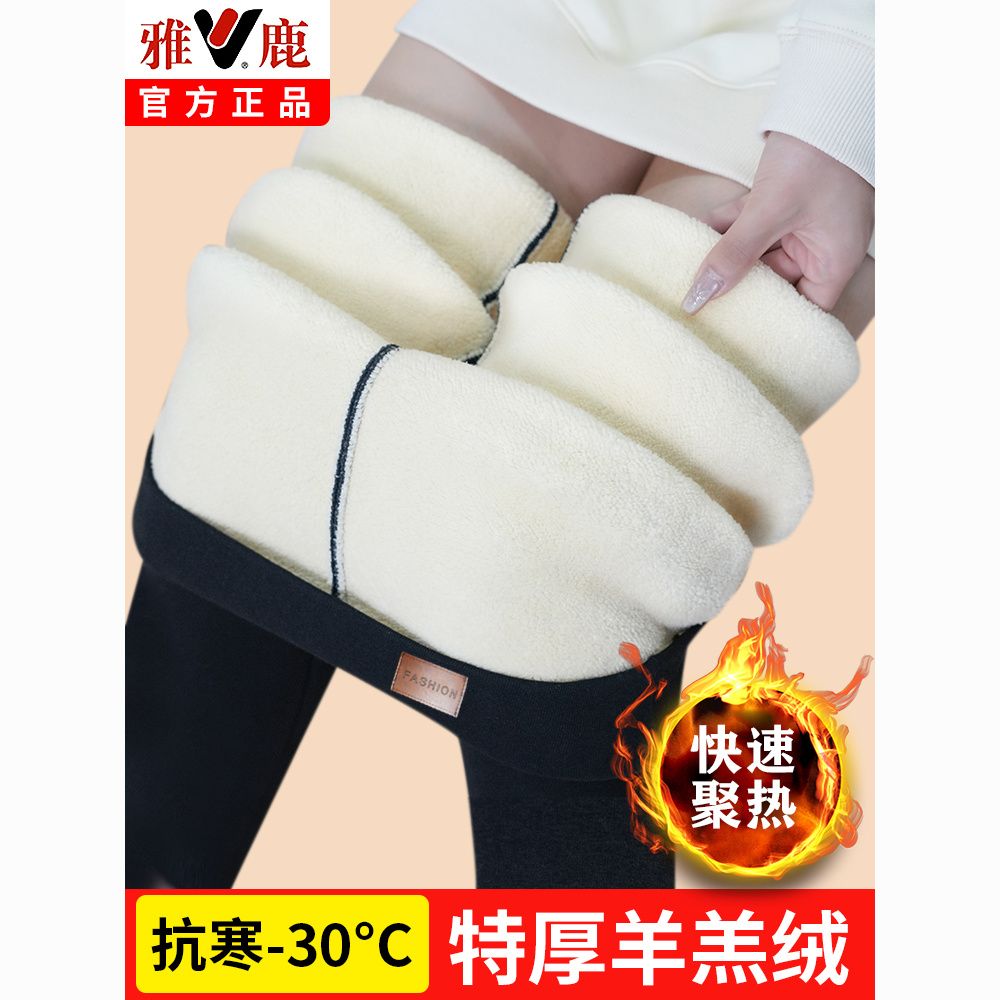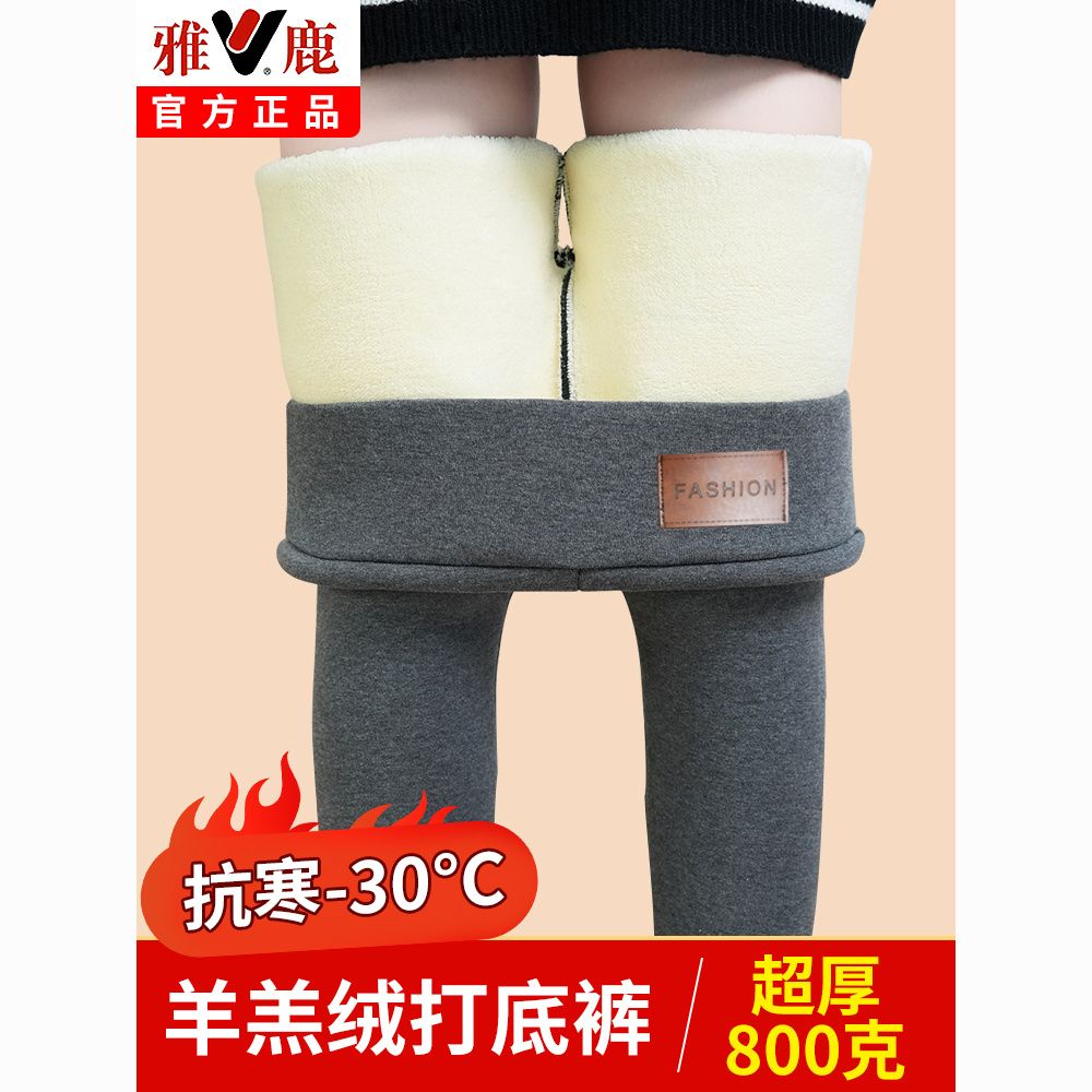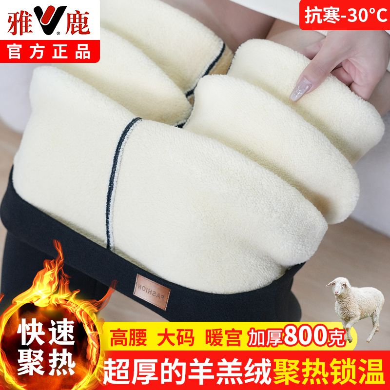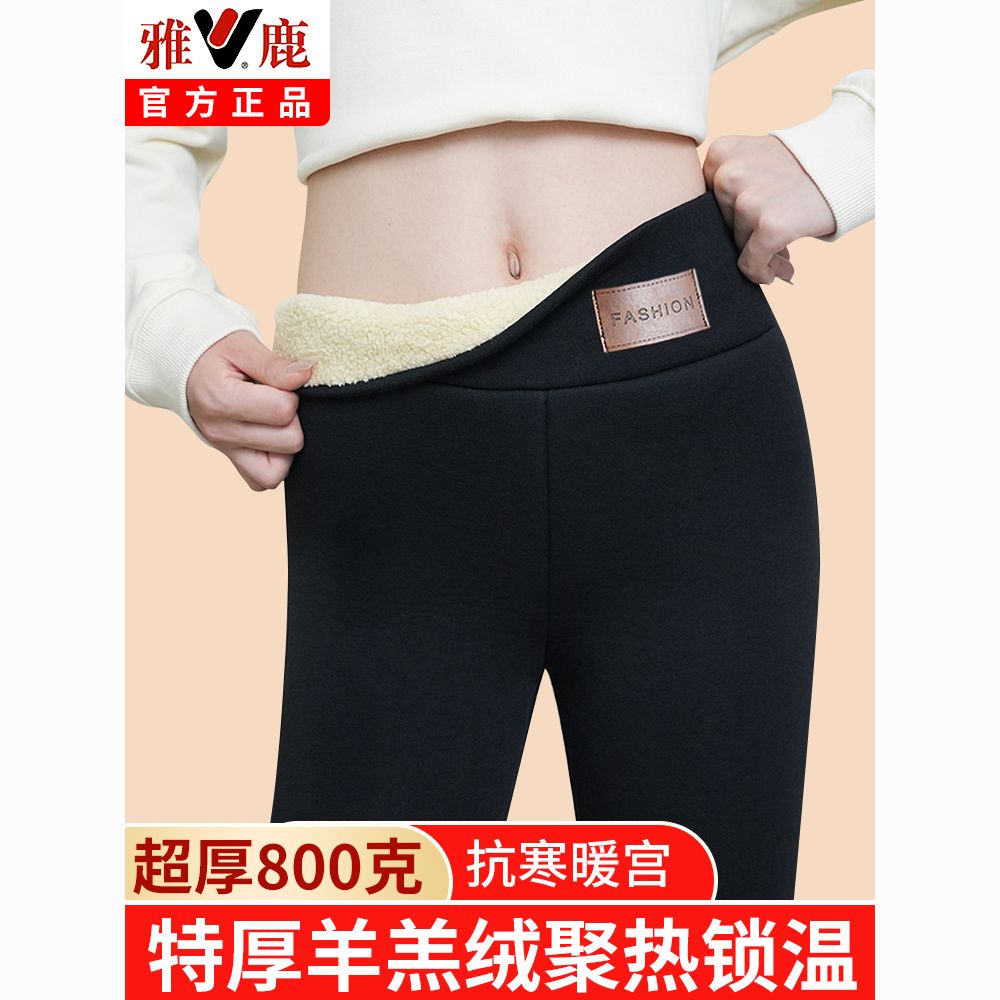 雅鹿特厚800克羊羔绒打底裤女士冬季保暖裤加绒加厚外穿高腰裤子