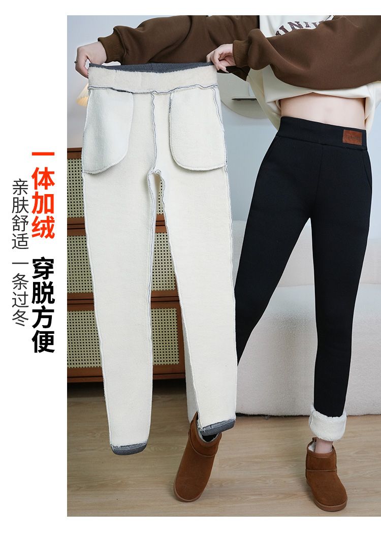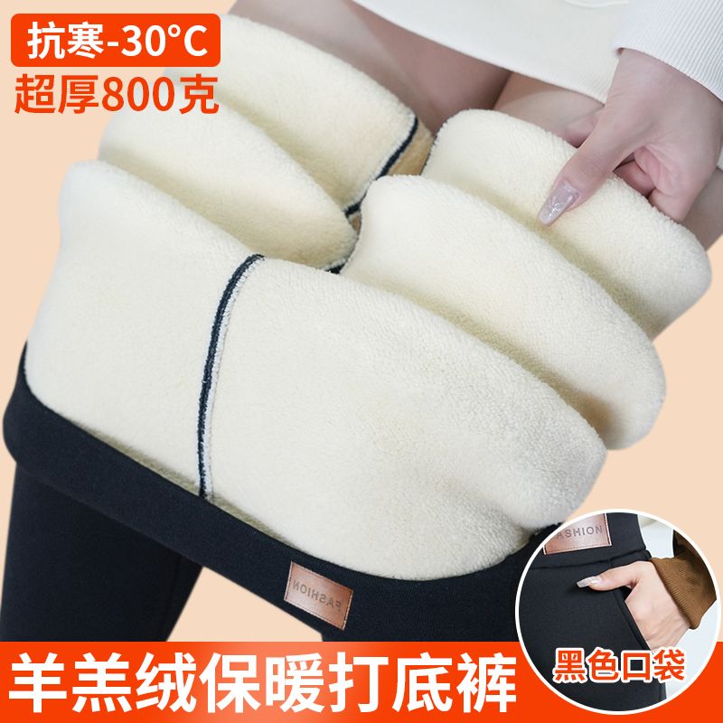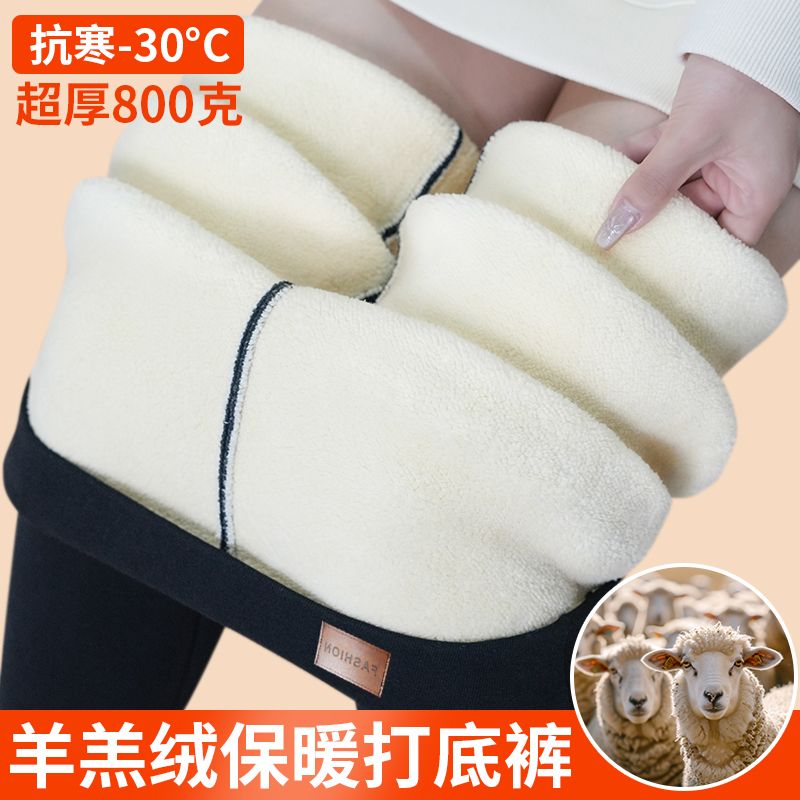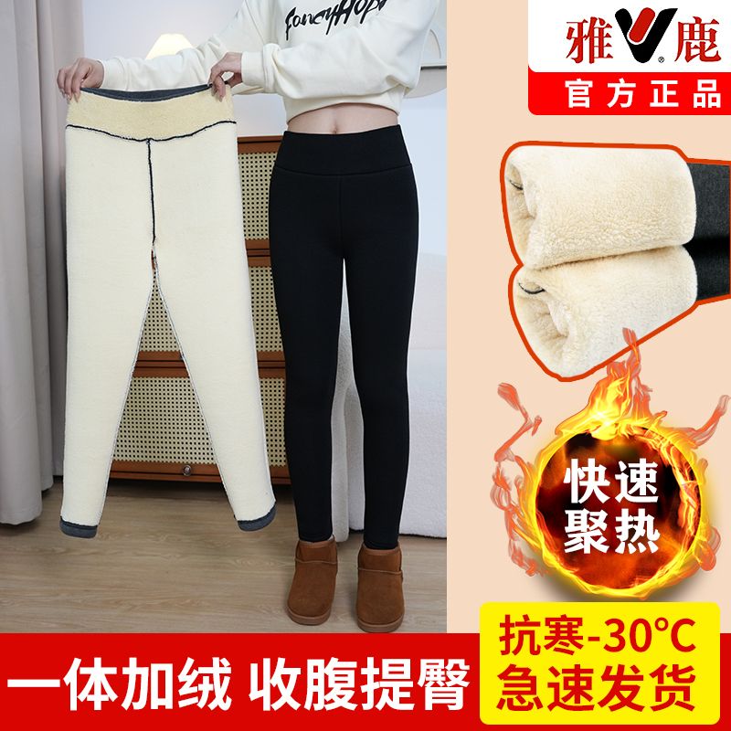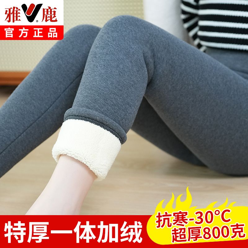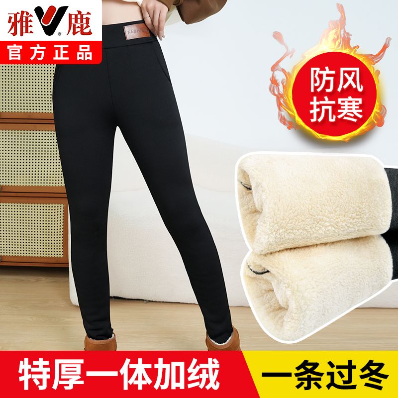 雅鹿特厚800克羊羔绒打底裤女士冬季保暖裤加绒加厚外穿高腰裤子