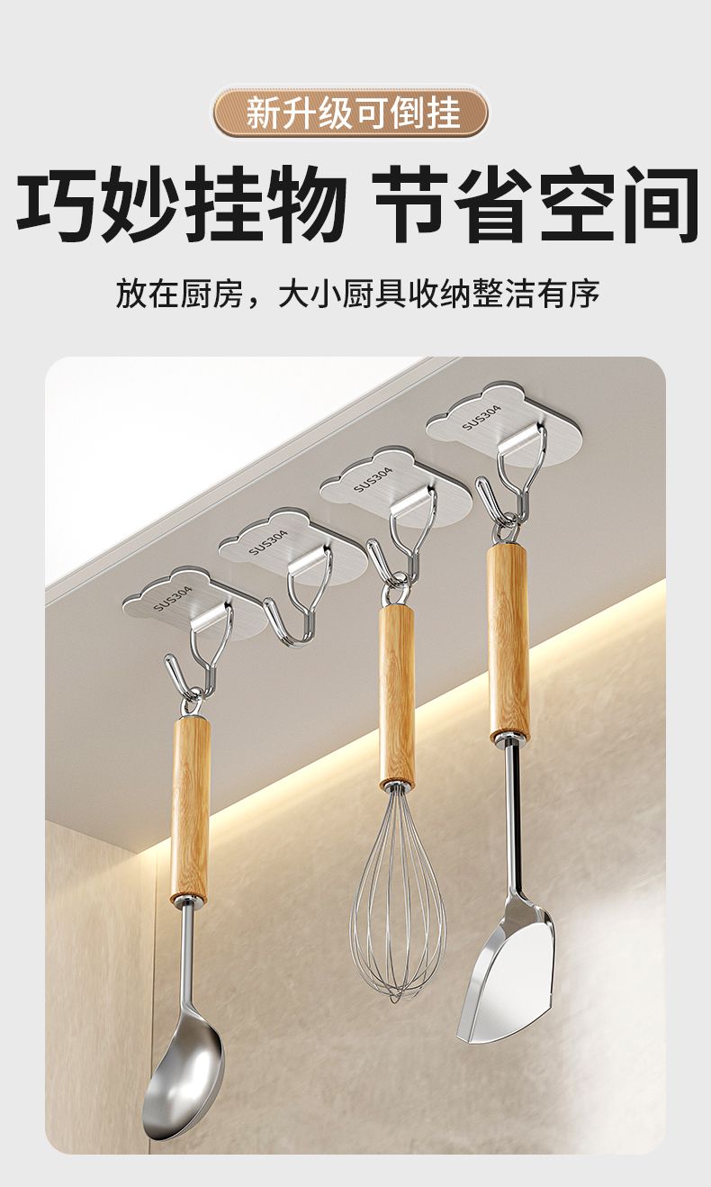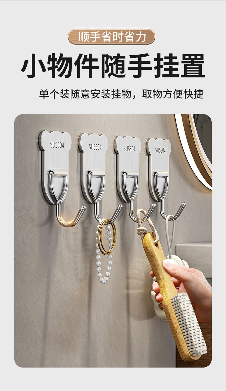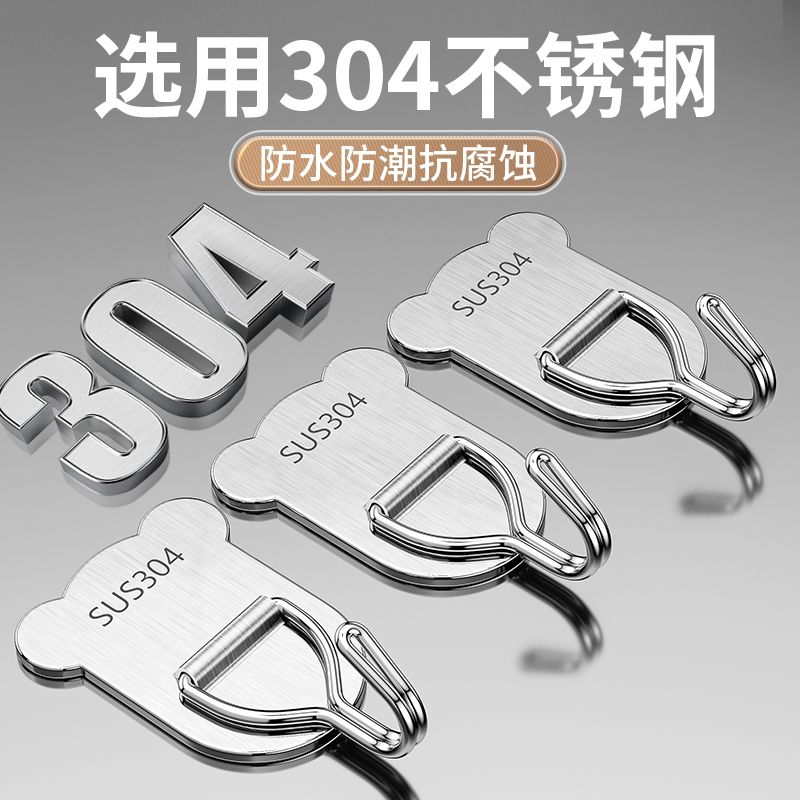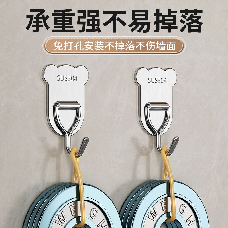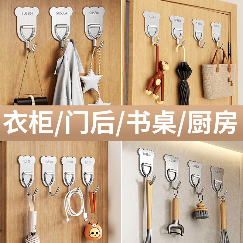 不锈钢挂钩强力承重免打孔粘钩家用浴室厨房墙上毛巾钩门后挂衣钩