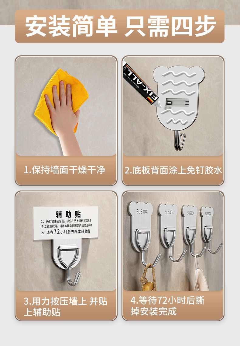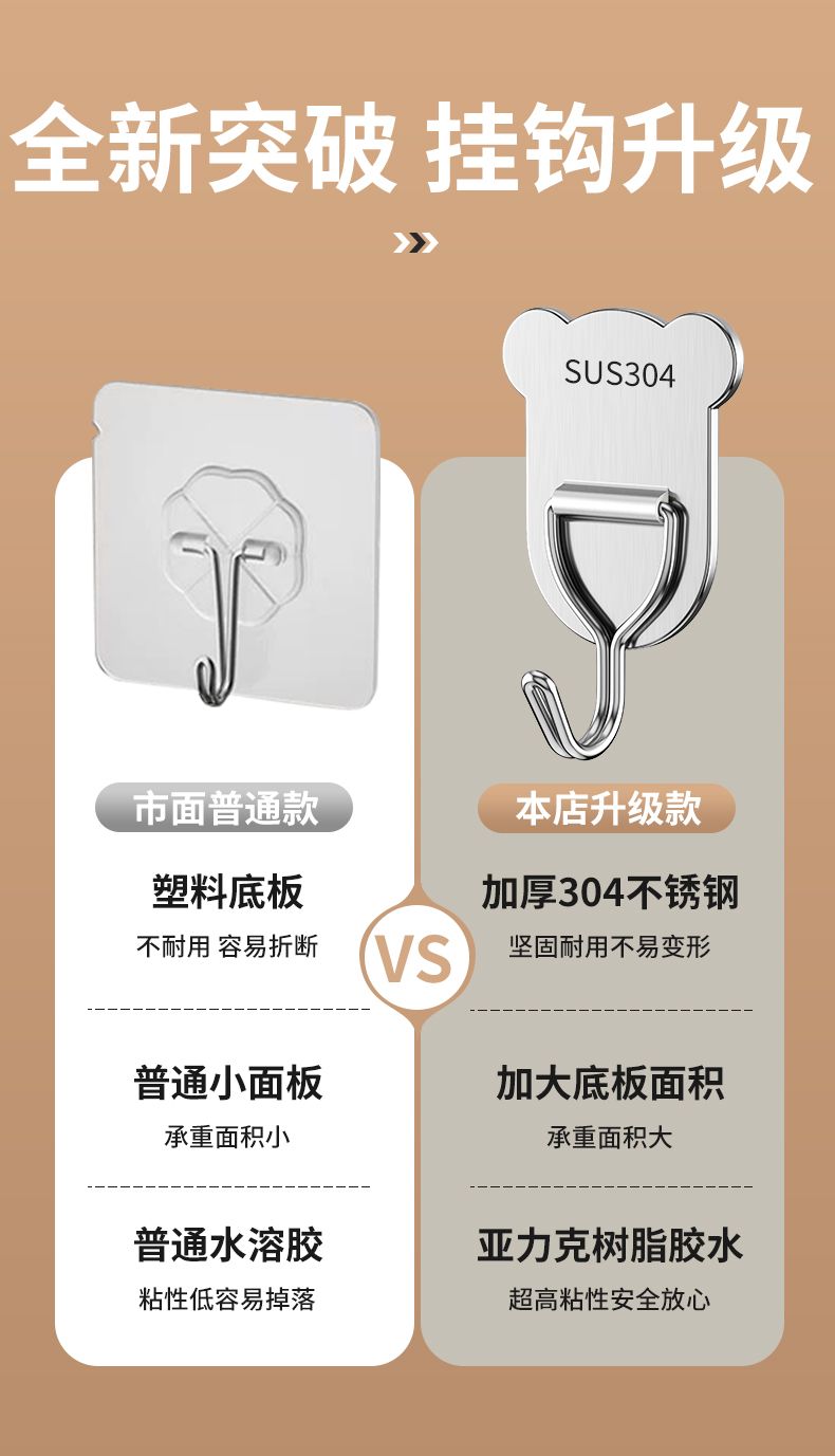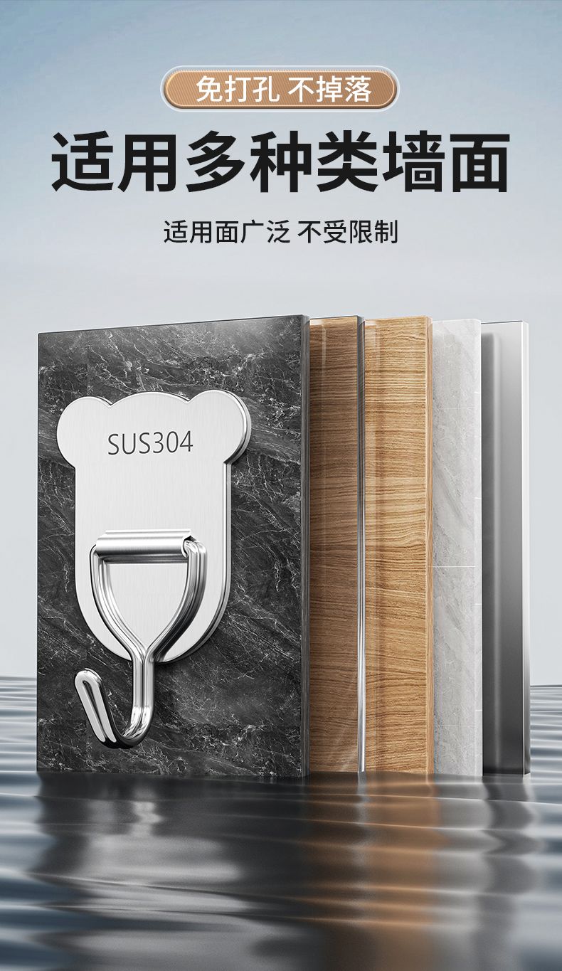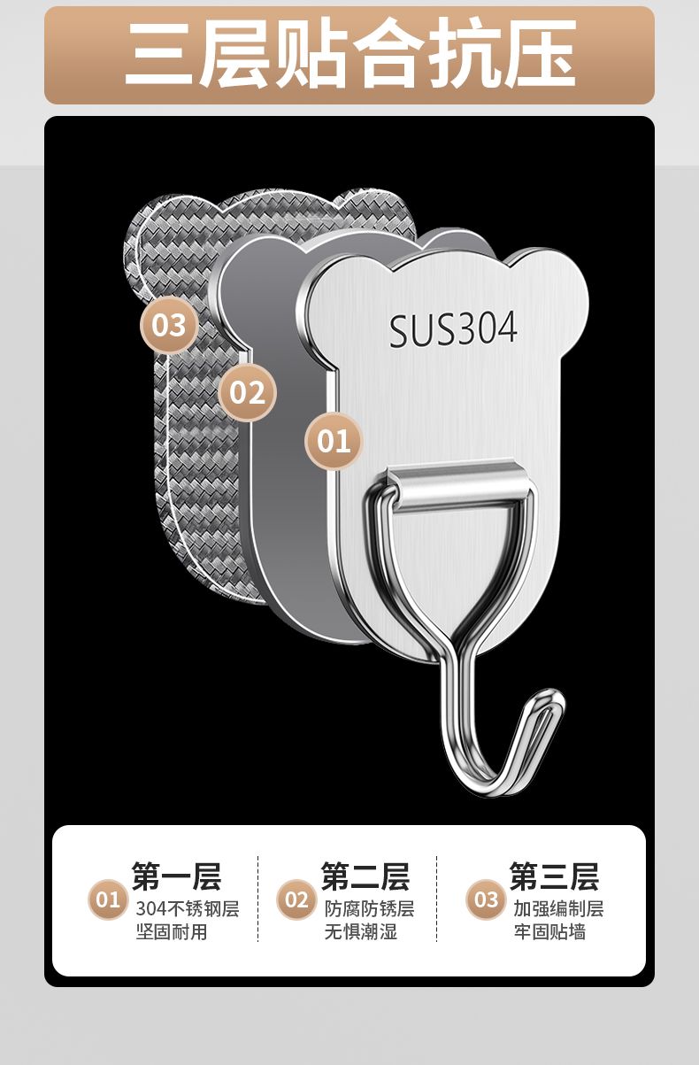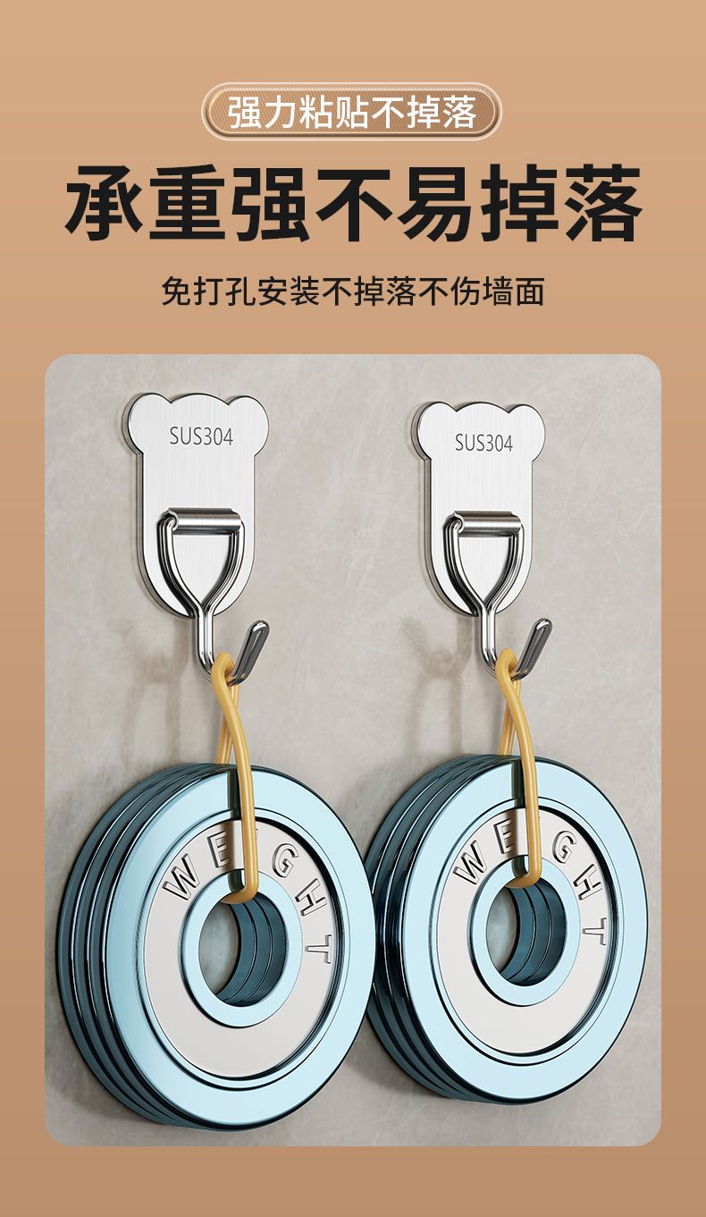 不锈钢挂钩强力承重免打孔粘钩家用浴室厨房墙上毛巾钩门后挂衣钩
