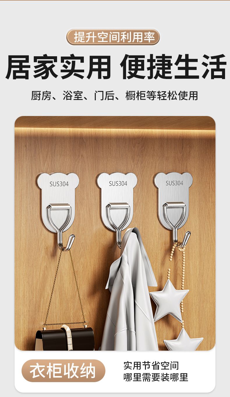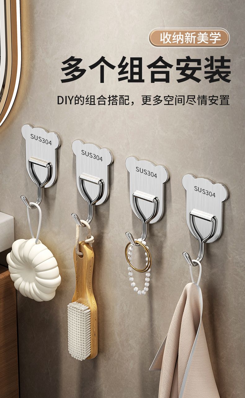 | stainless steel bear head hook [5 pack]](不锈钢熊头挂钩【5个装】) | USD $1.69 | 999999 piece available |