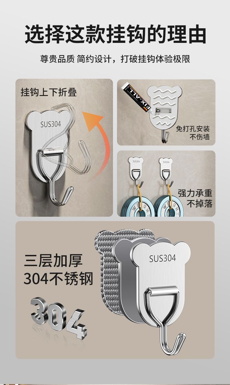 | stainless steel bear head hook [3 pack]](不锈钢熊头挂钩【3个装】) | USD $1.32 | 999999 piece available |