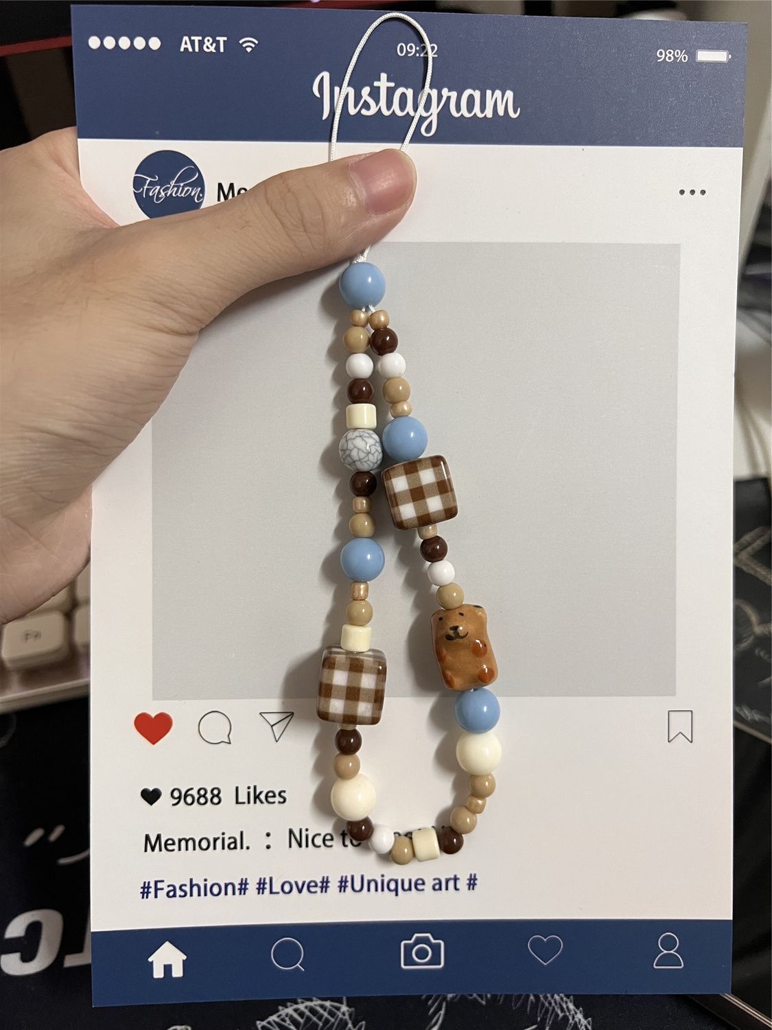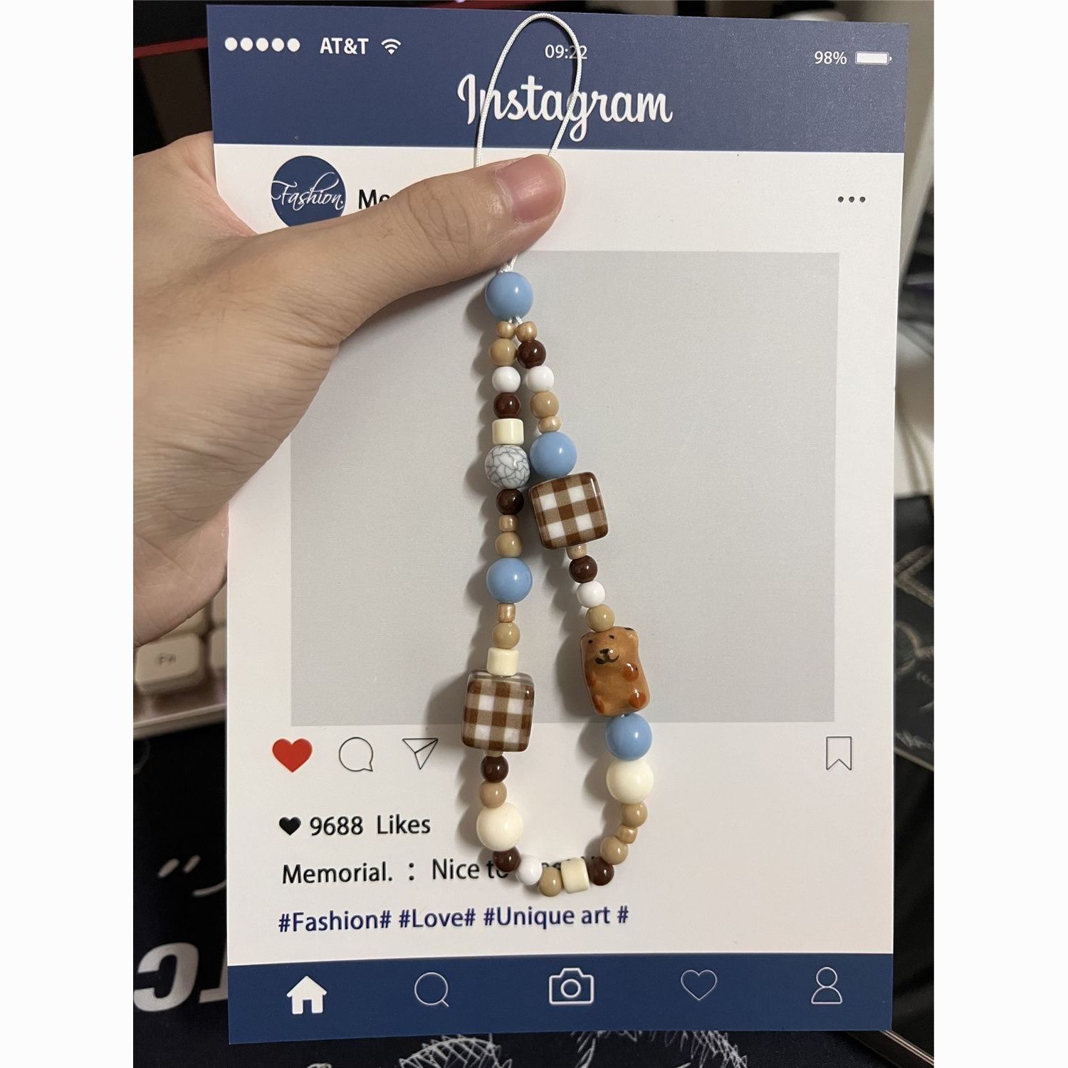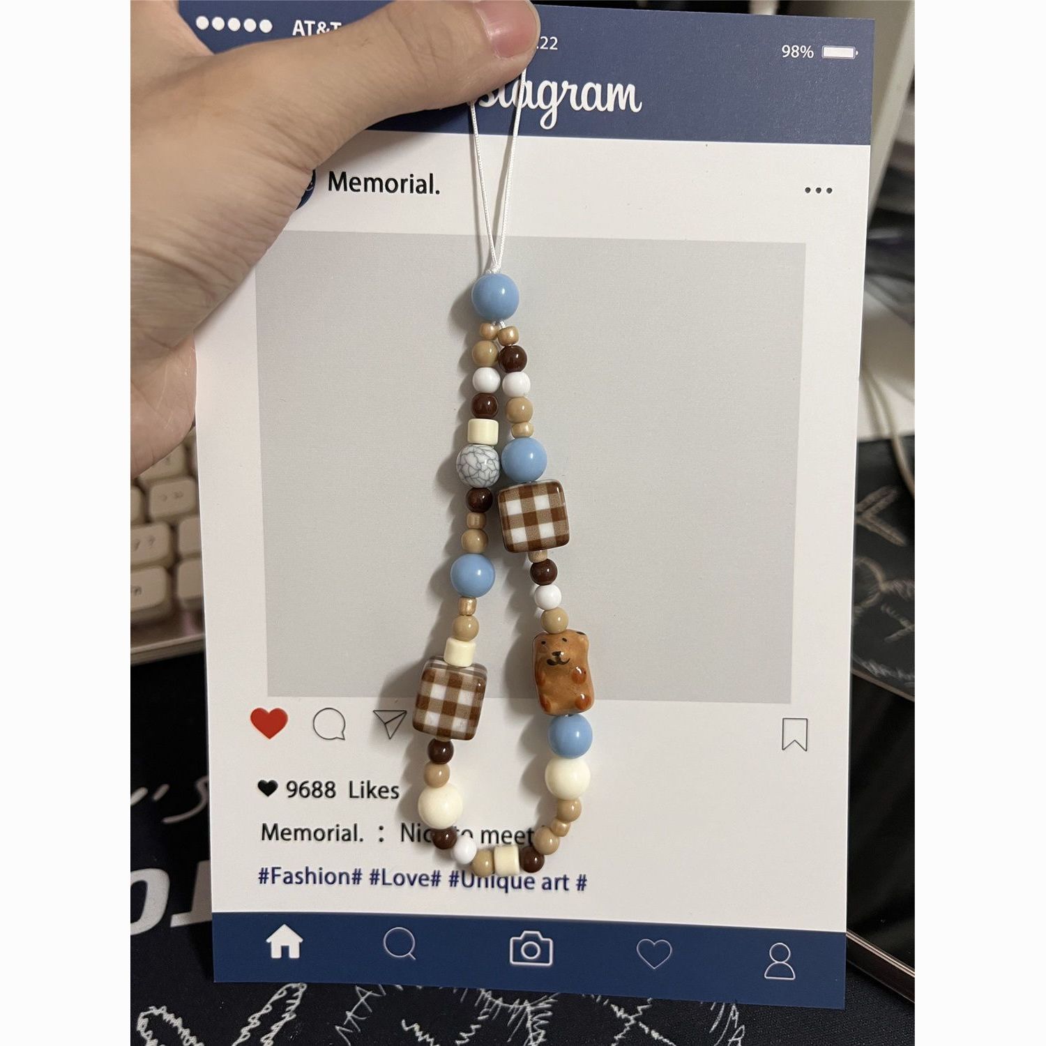 珠串格纹熊手链新款可爱手机链diy串珠ccd挂绳挂饰相机挂件防丢