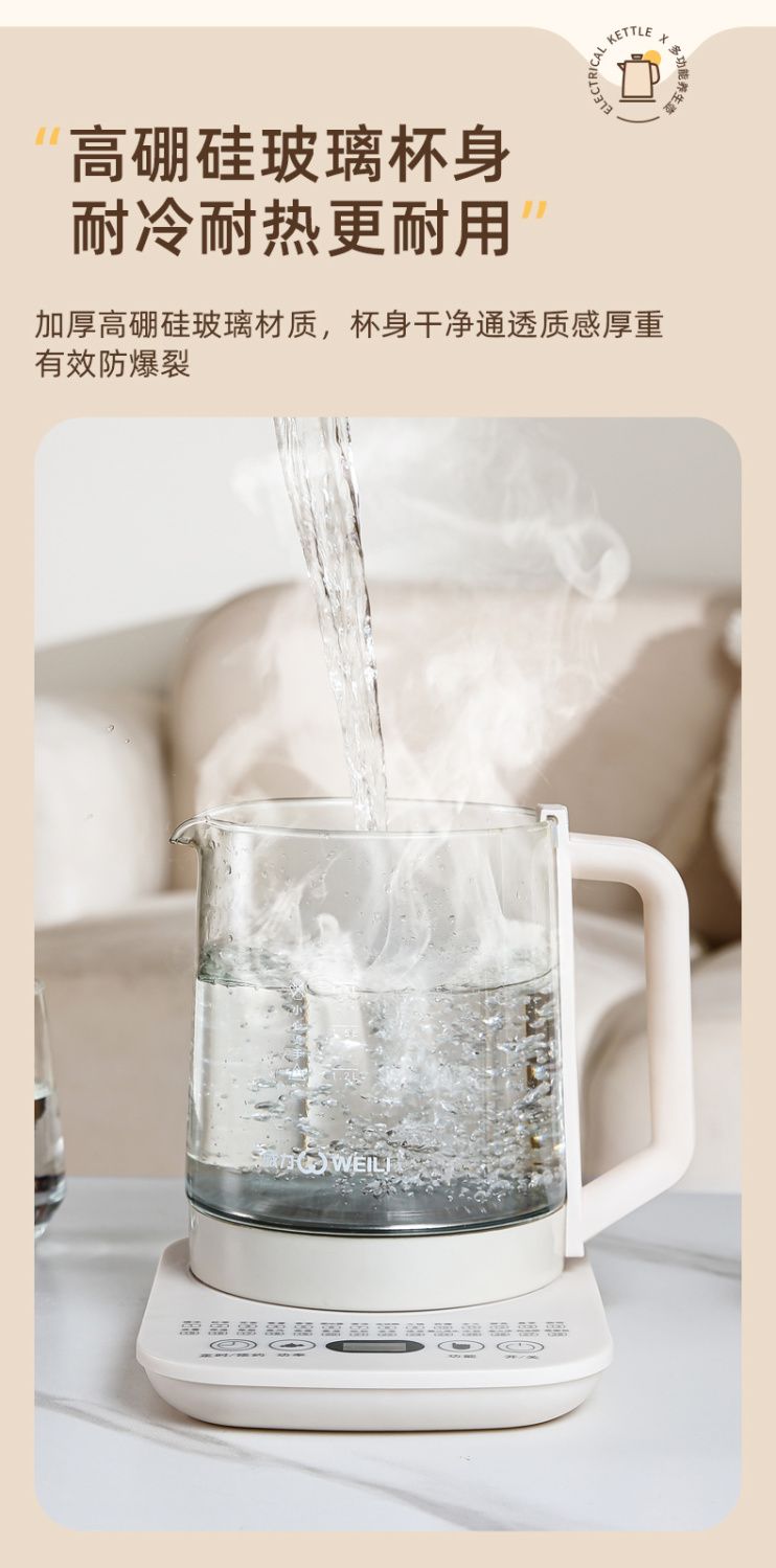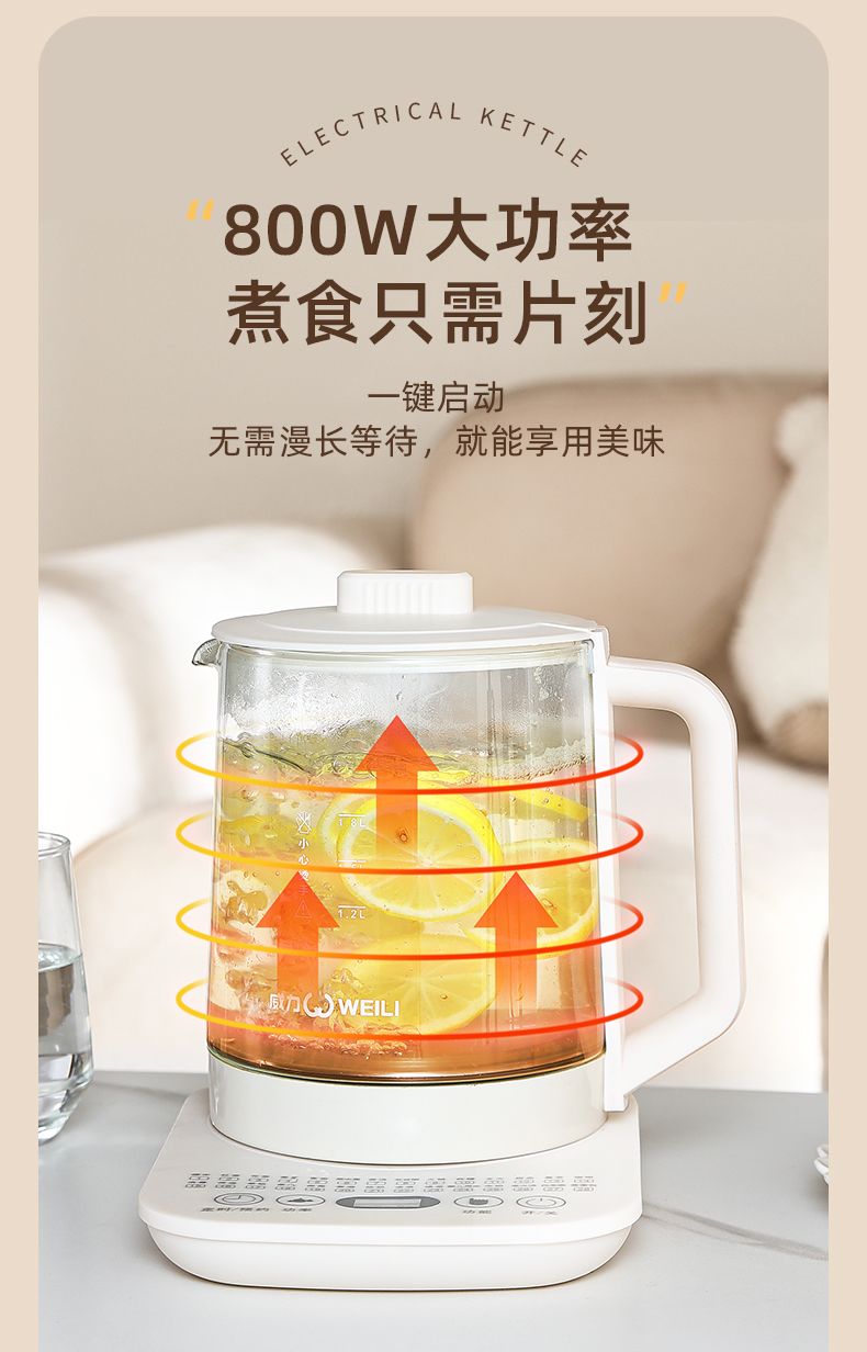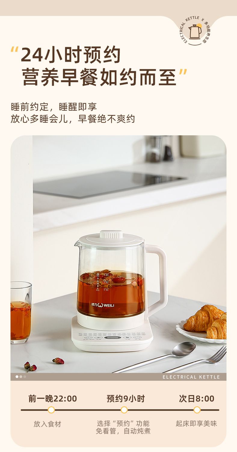 威力养生壶家用多功能煮花茶器滤网煮蛋烧水壶正品加厚玻璃煎药壶