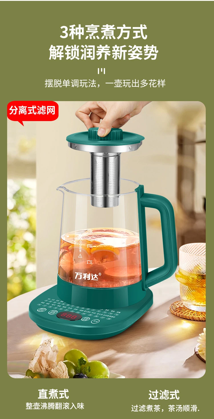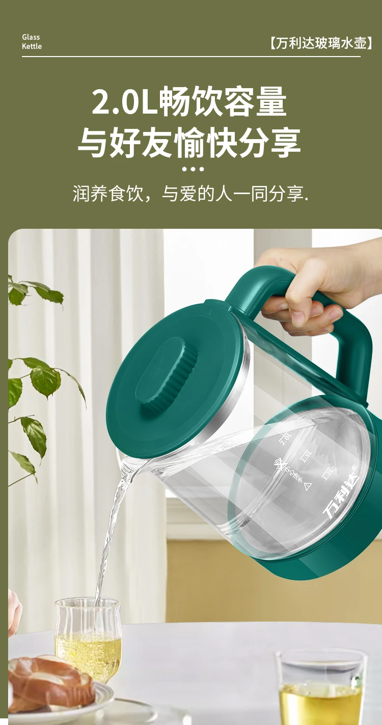 新款万利达烧水壶家用热水壶玻璃大容量煮花茶蒸蛋熬中药保温养生