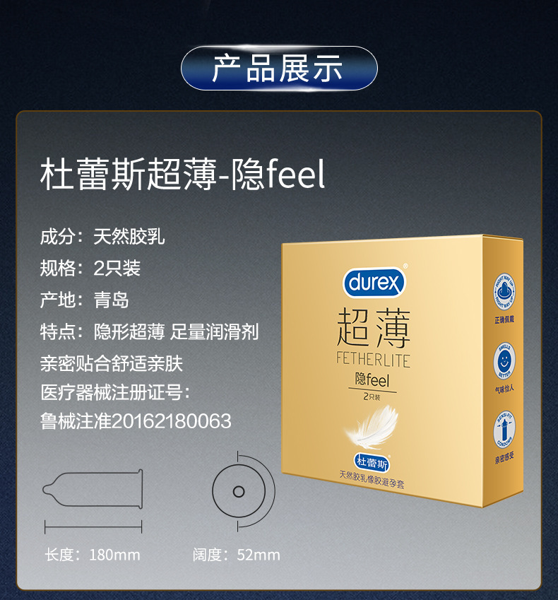 杜蕾斯超薄隐feel避孕套2只装酒店超市男用情趣安全套正品001批发