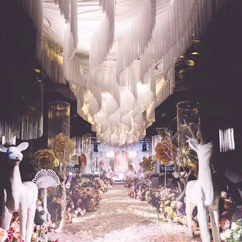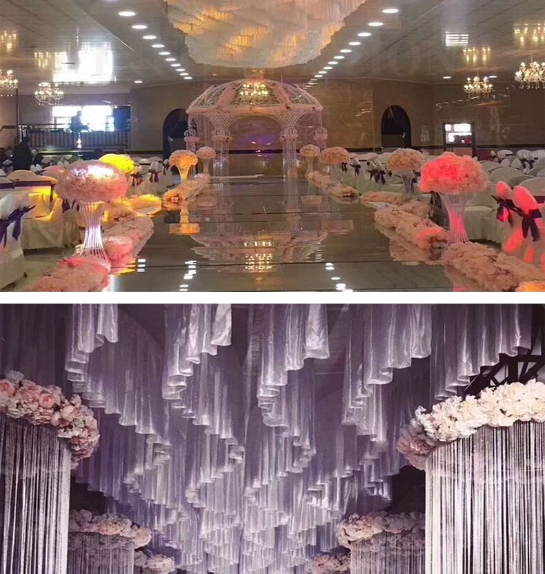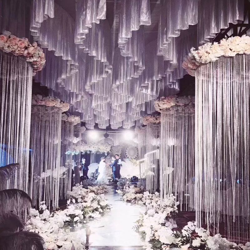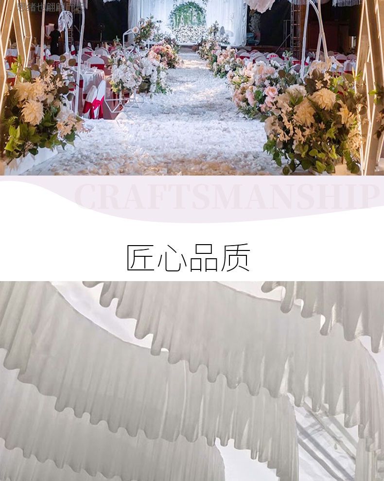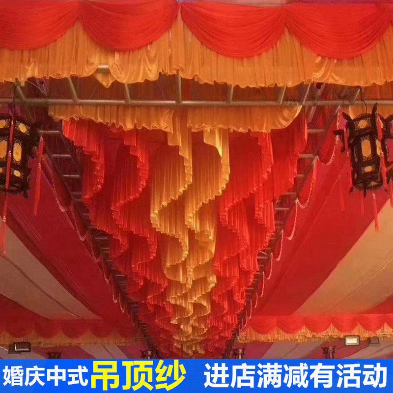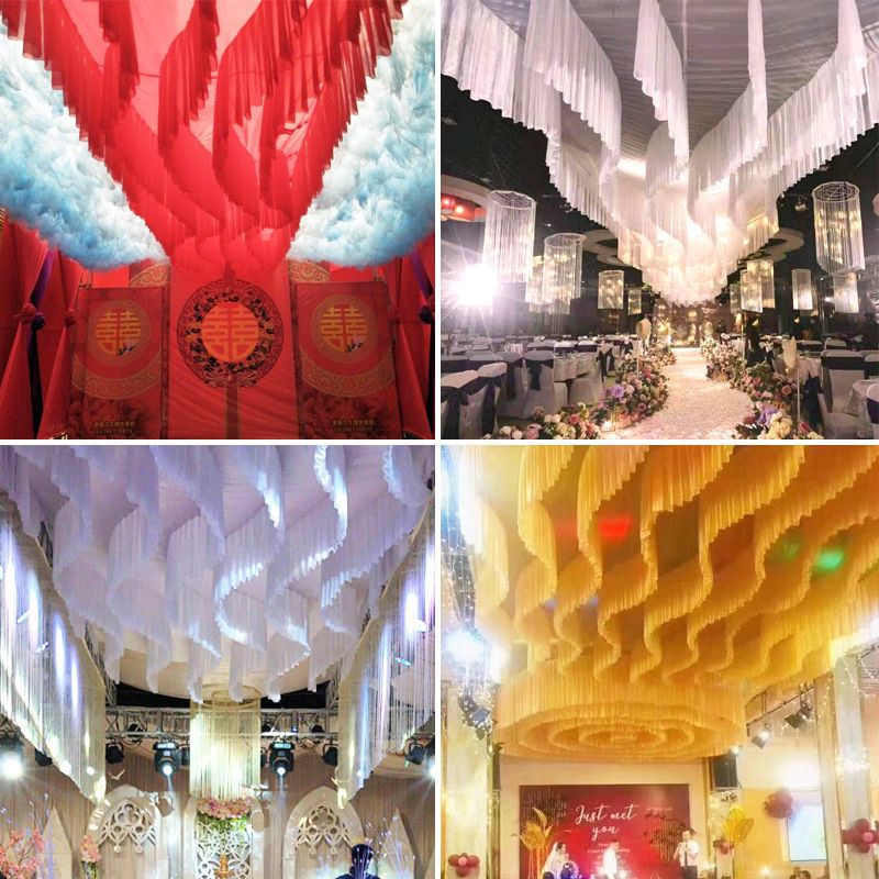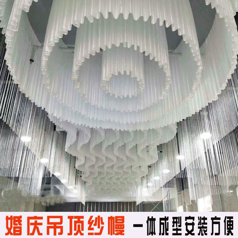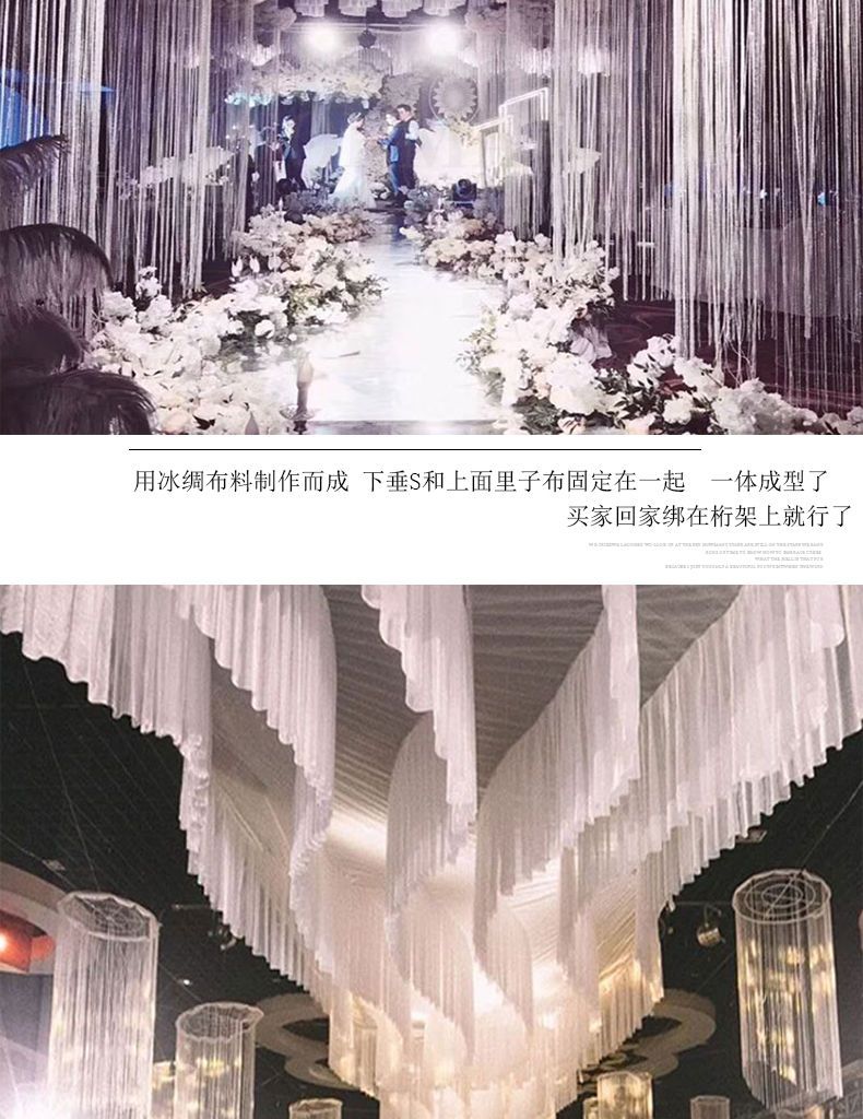 2024新款s吊顶纱婚礼顶部装饰s型波浪云顶吊顶纱幔布置婚庆道具