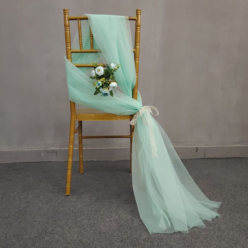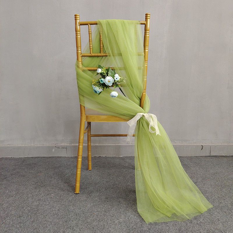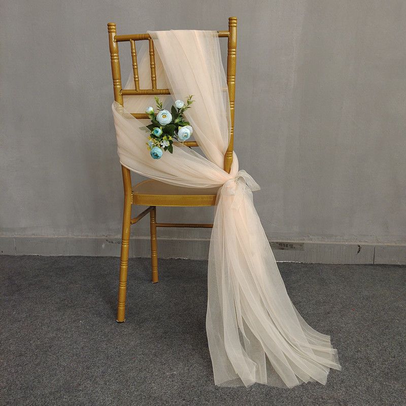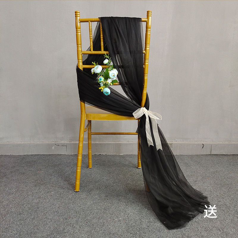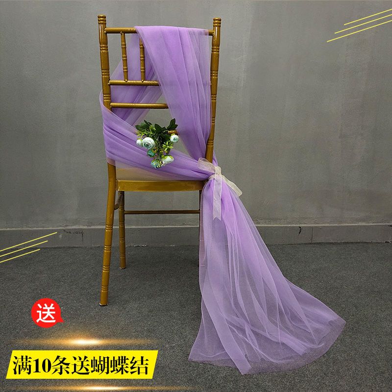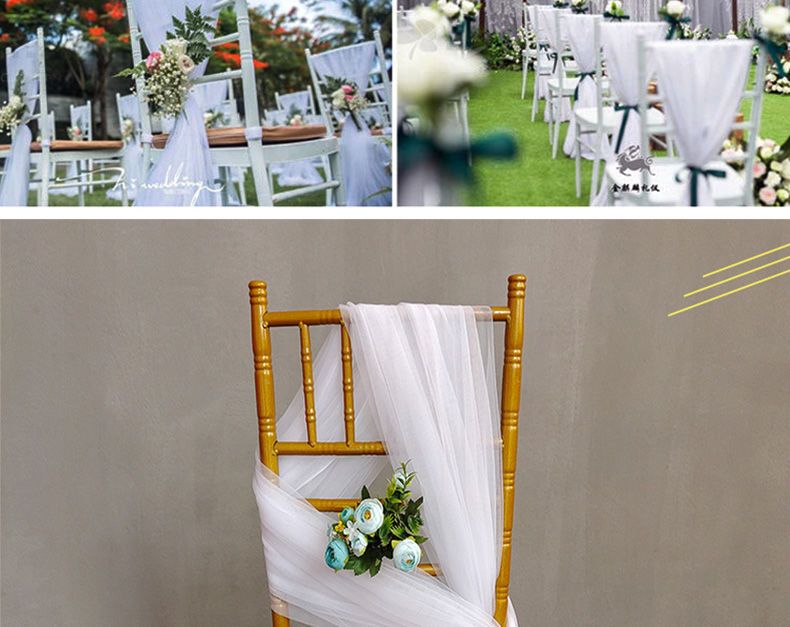 婚庆道具椅背纱背景纱幔瑞士纱户外婚礼椅子白纱竹节椅子装饰纱