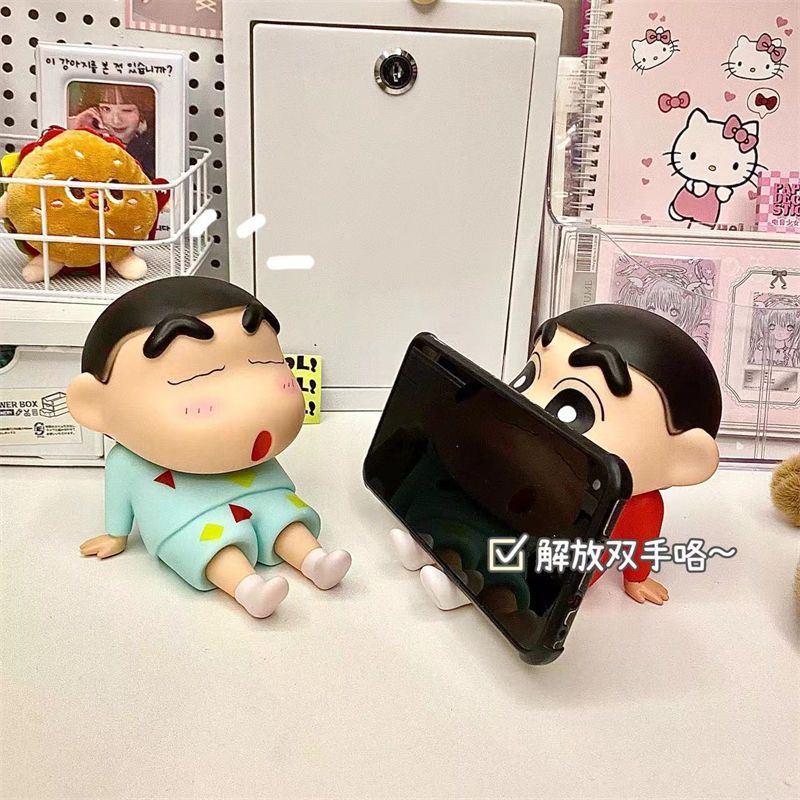 网红动漫蜡笔小新卡通懒人手机支架桌面摆件潮玩礼物手办模型公仔