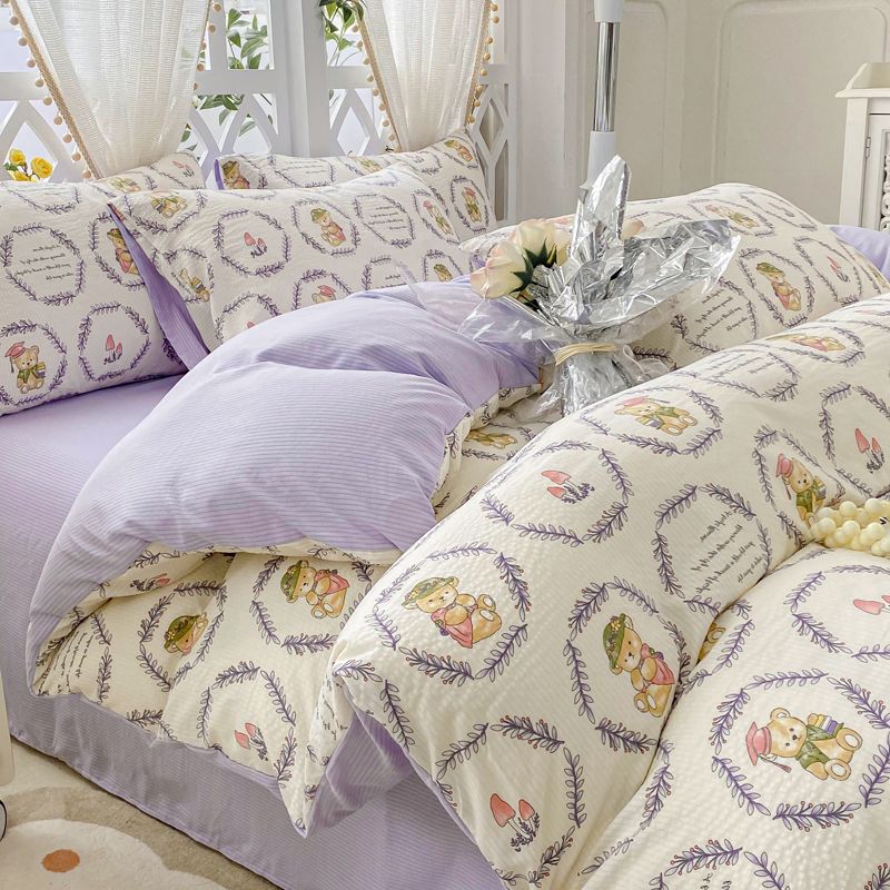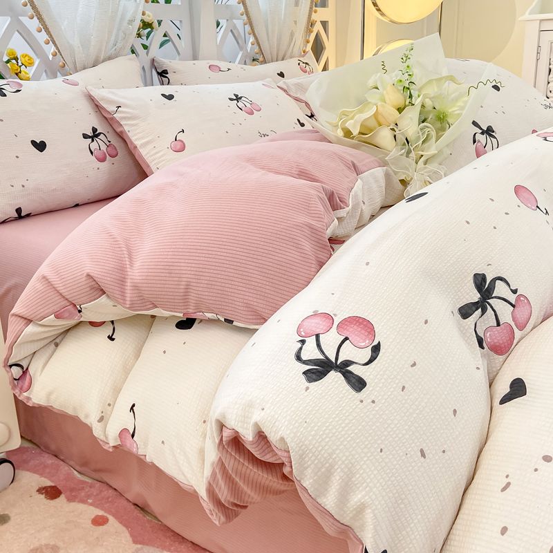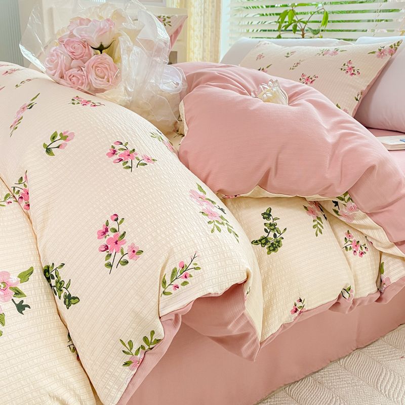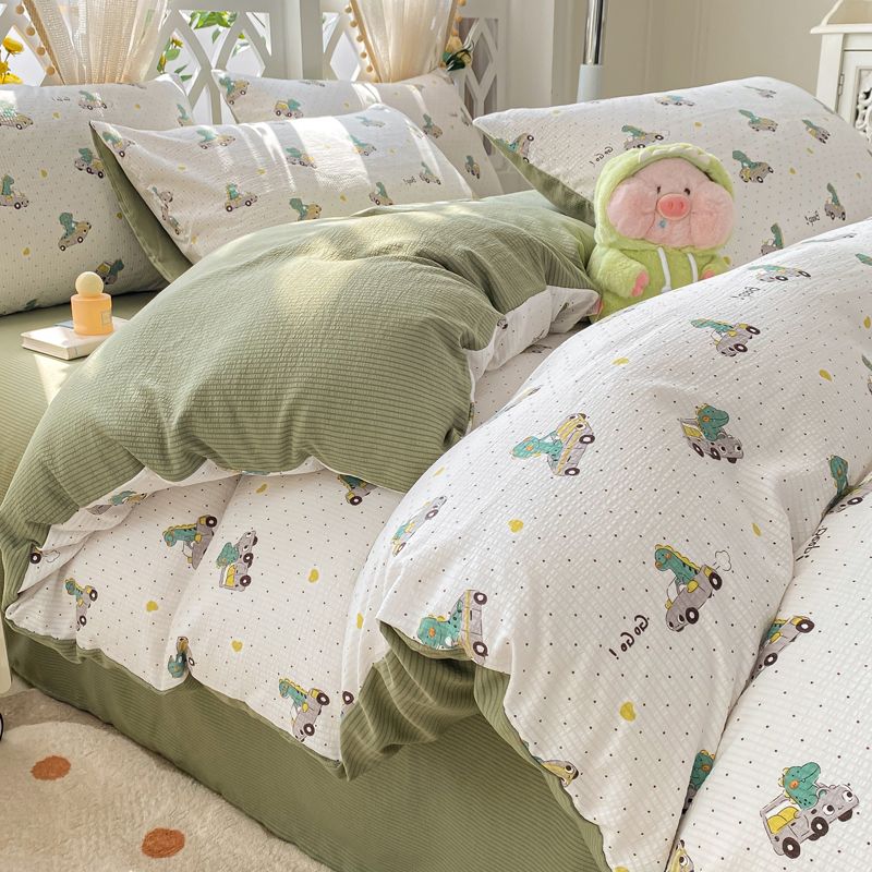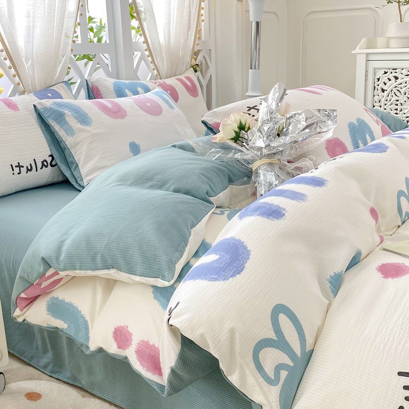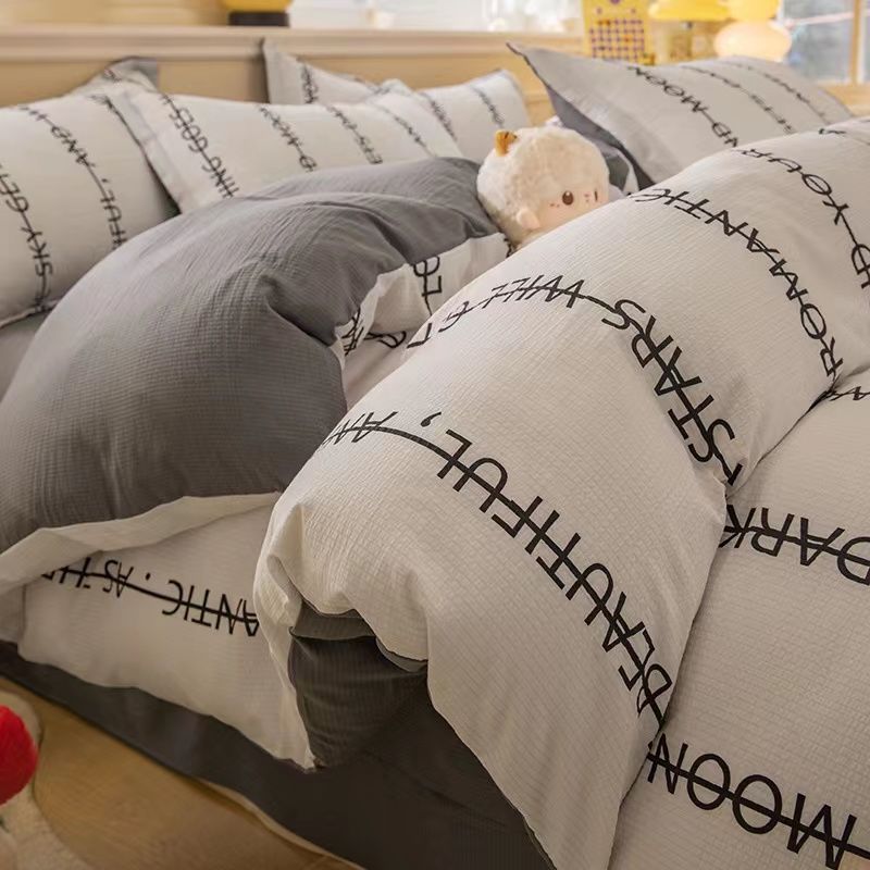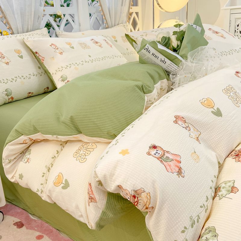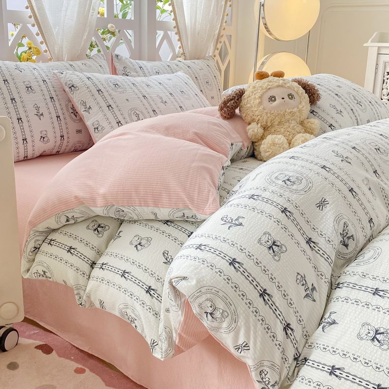 A类母婴级超软泡泡纱水洗棉四件套床单被套单人宿舍三件套床笠款4