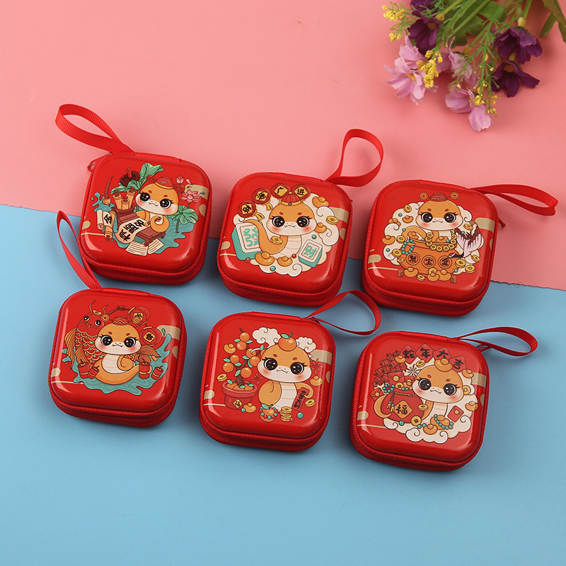 新款马口铁零钱包圣诞圆形拉链包卡通学生硬币钥匙收纳包耳机包