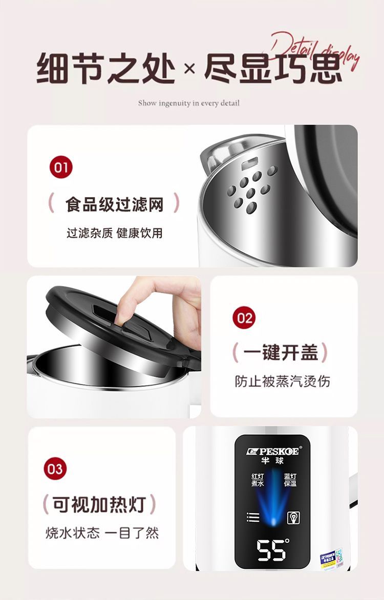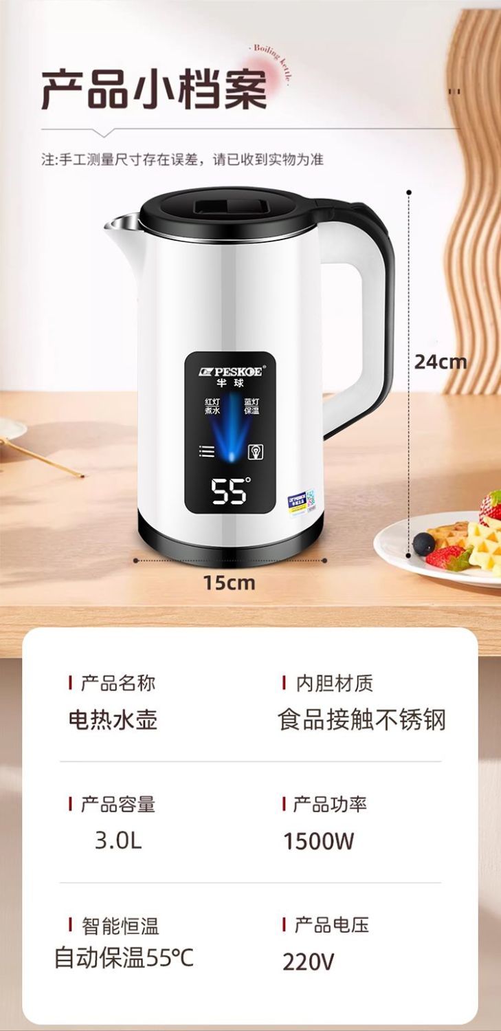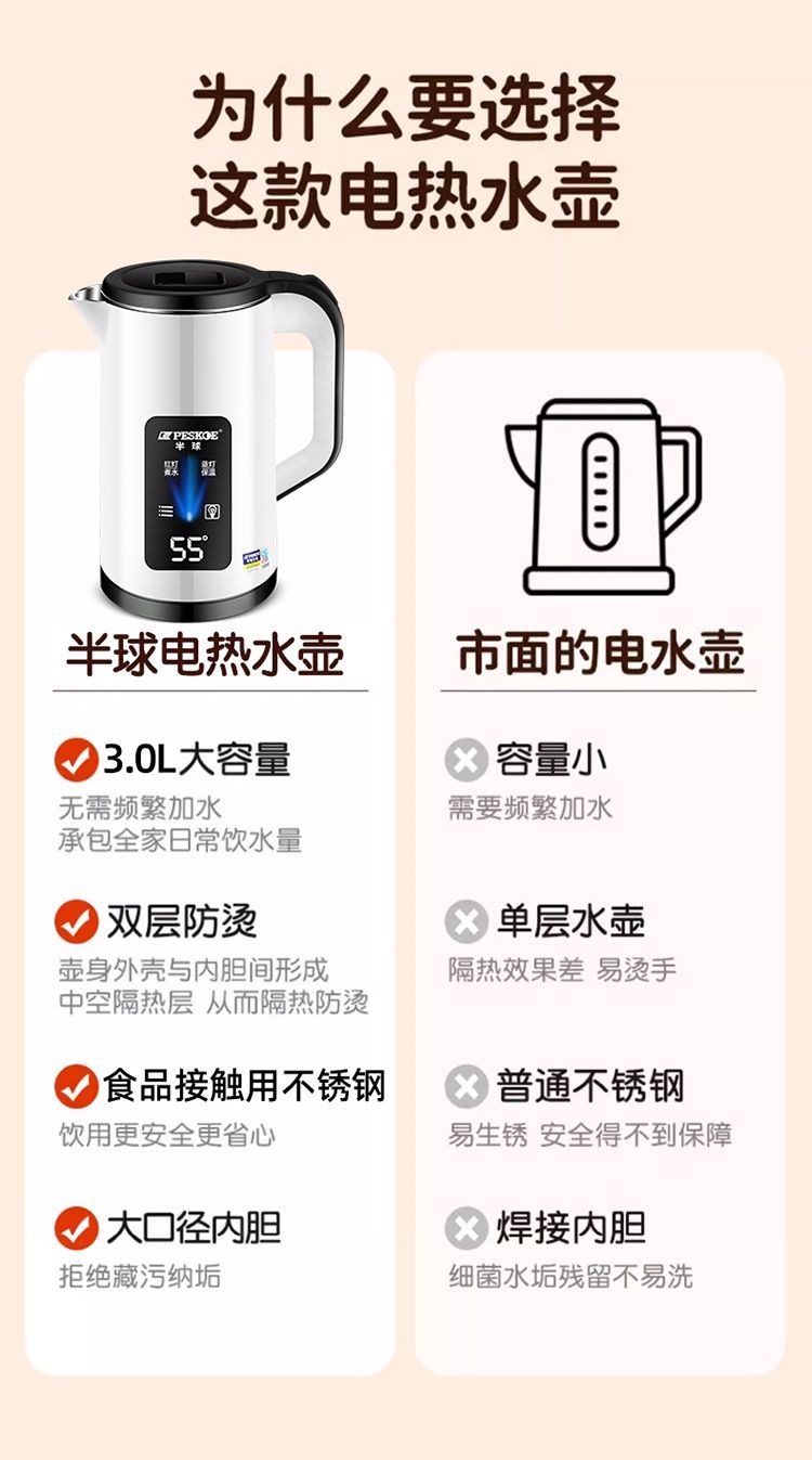 半球烧水壶家用耐用304大容量高档保温一体恒温电热烧水壶小型