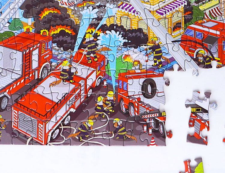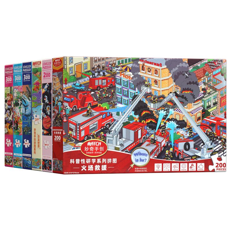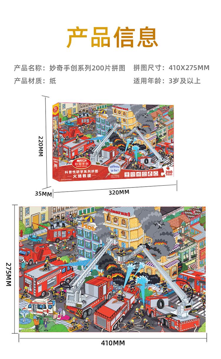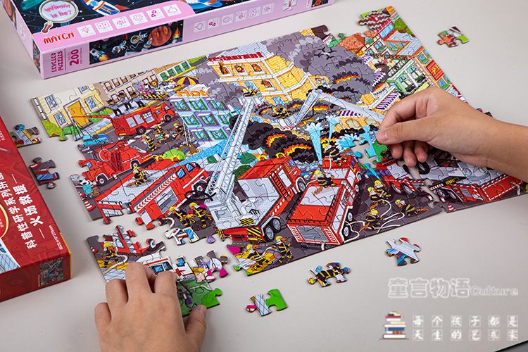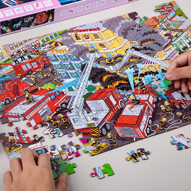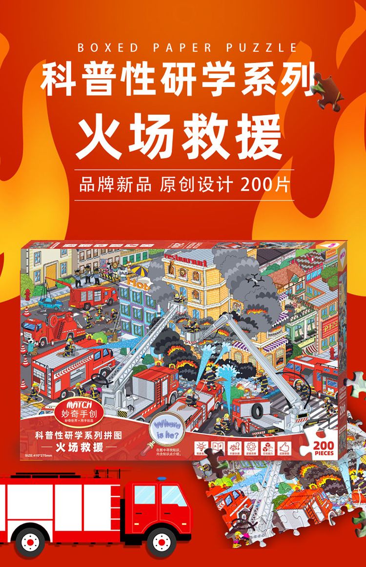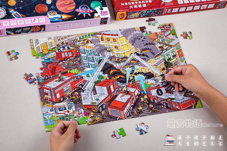 儿童益智拼图200片男孩女孩开发智力玩具6岁以上消防车科普拼图板