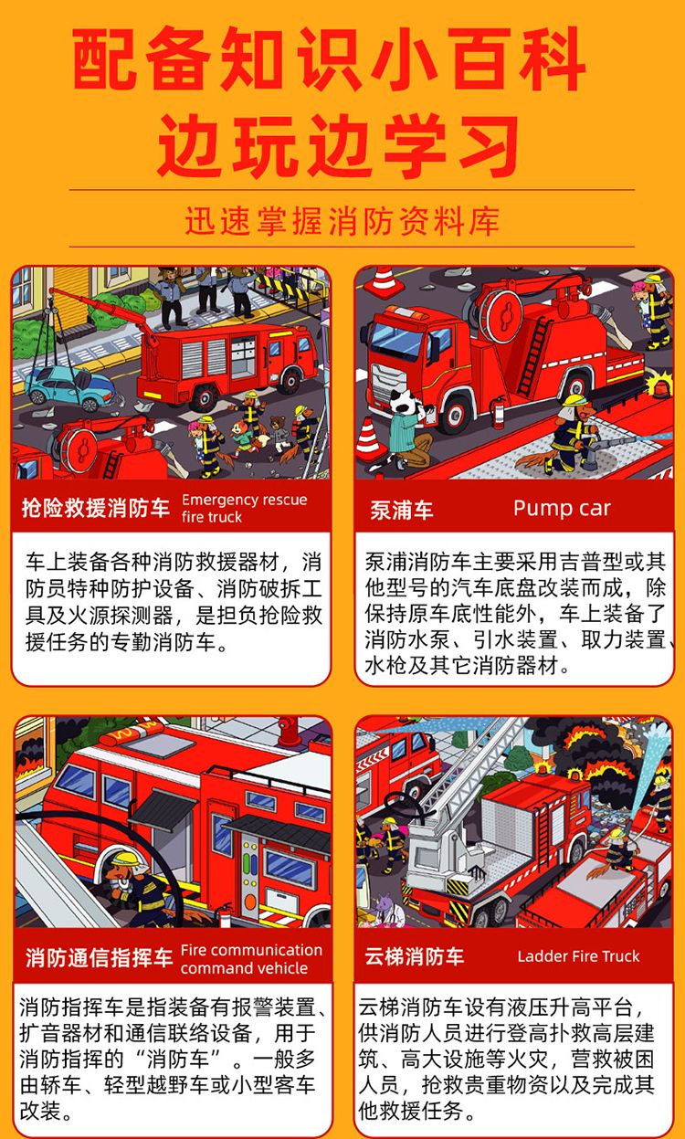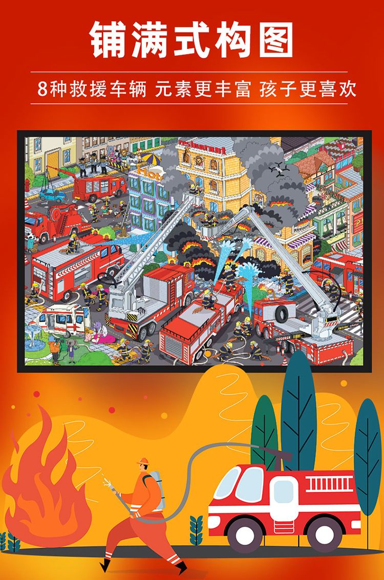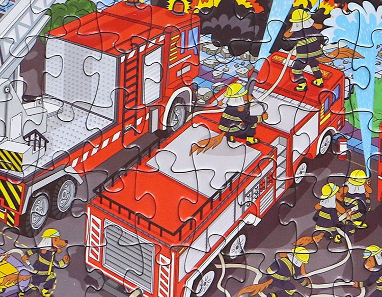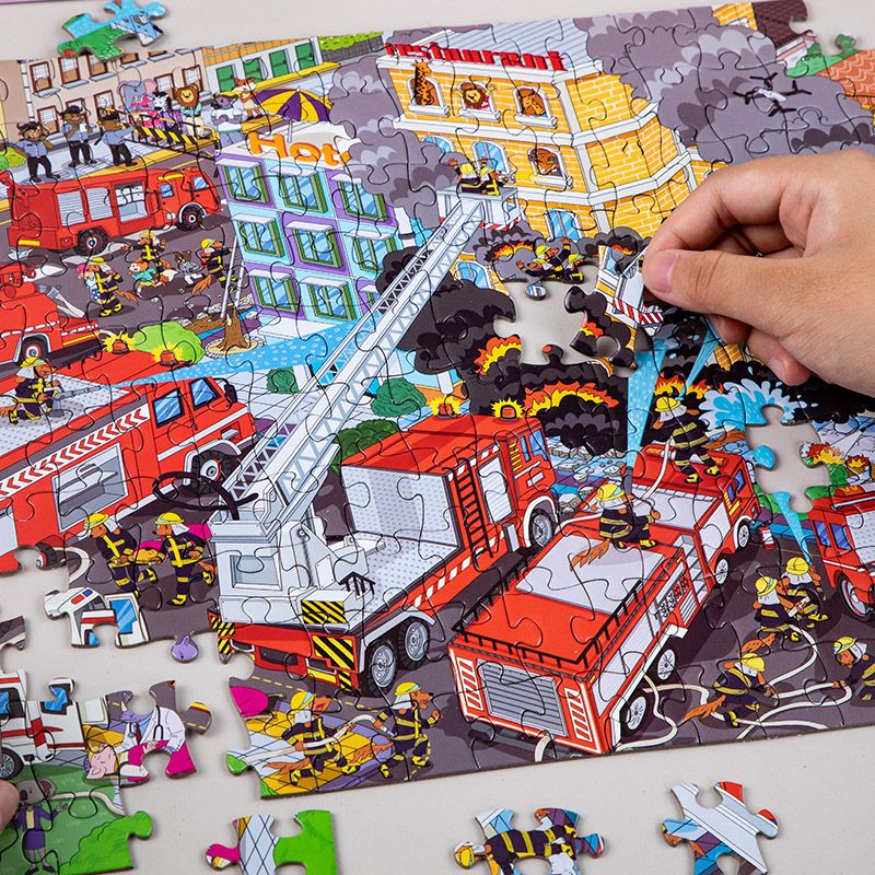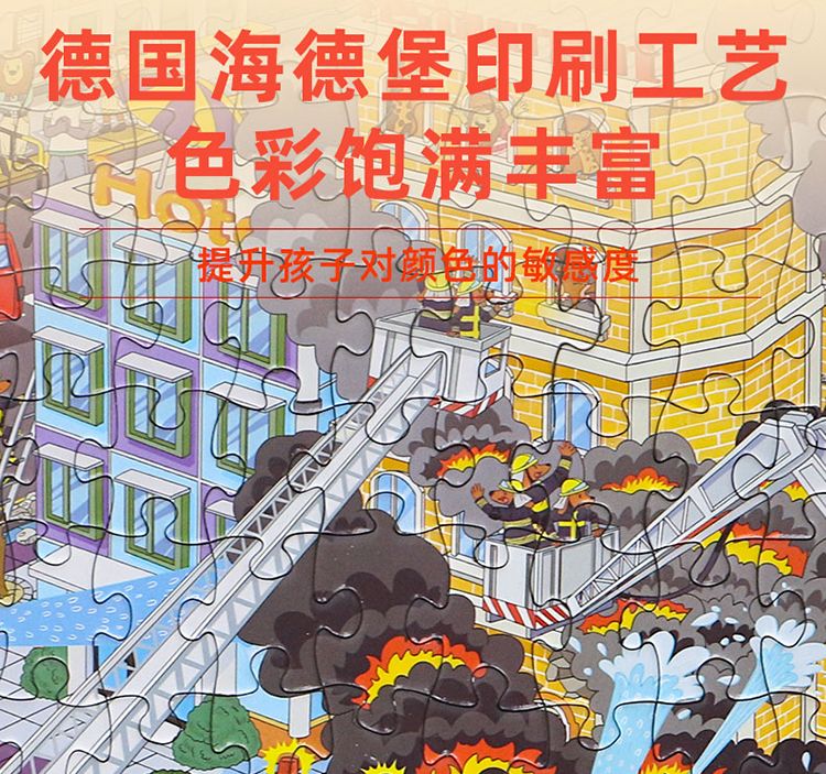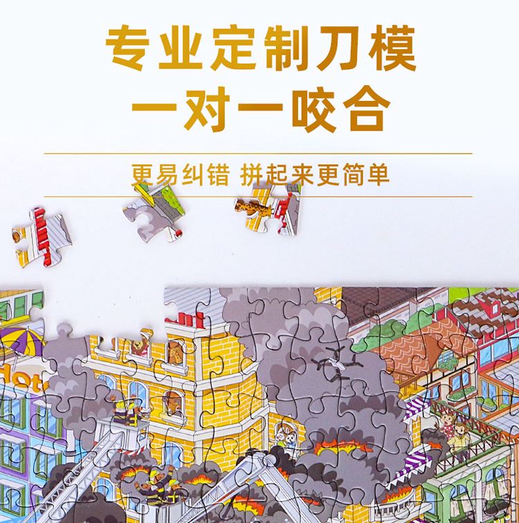 儿童益智拼图200片男孩女孩开发智力玩具6岁以上消防车科普拼图板