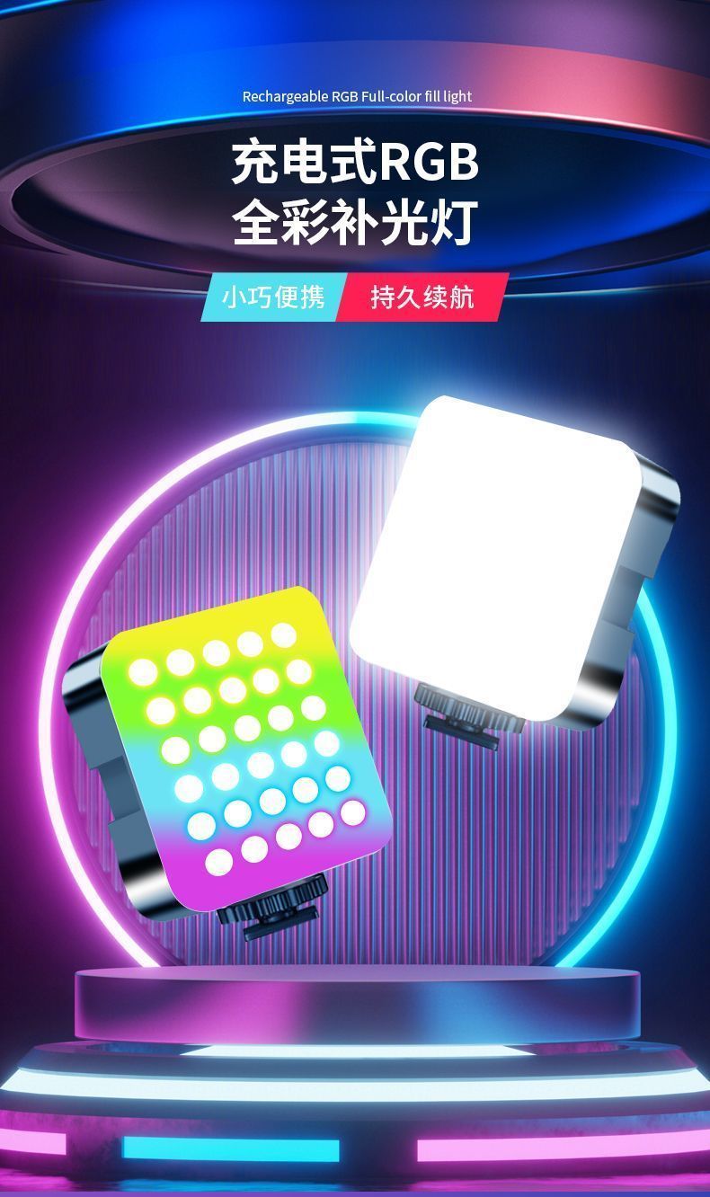 手持rgb迷你口袋灯美颜彩色补光灯拍照直播专用充电便携式打光灯
