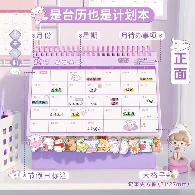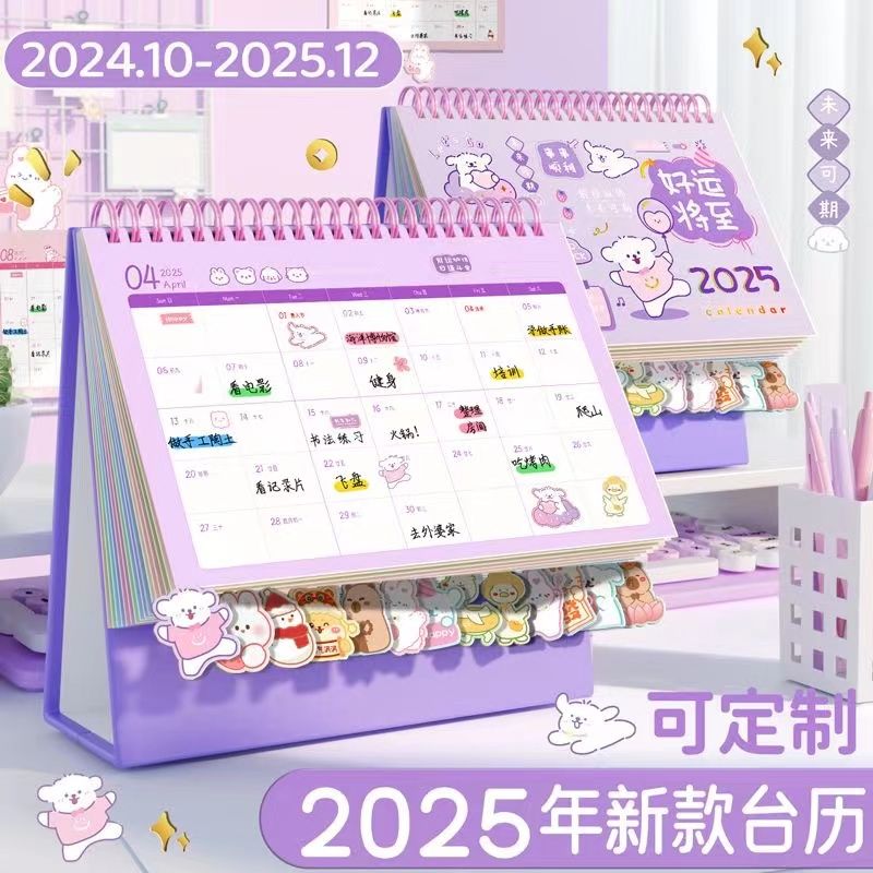 2025年新款台历日历计划本卡通记事本可爱桌面2024年下半年到定制