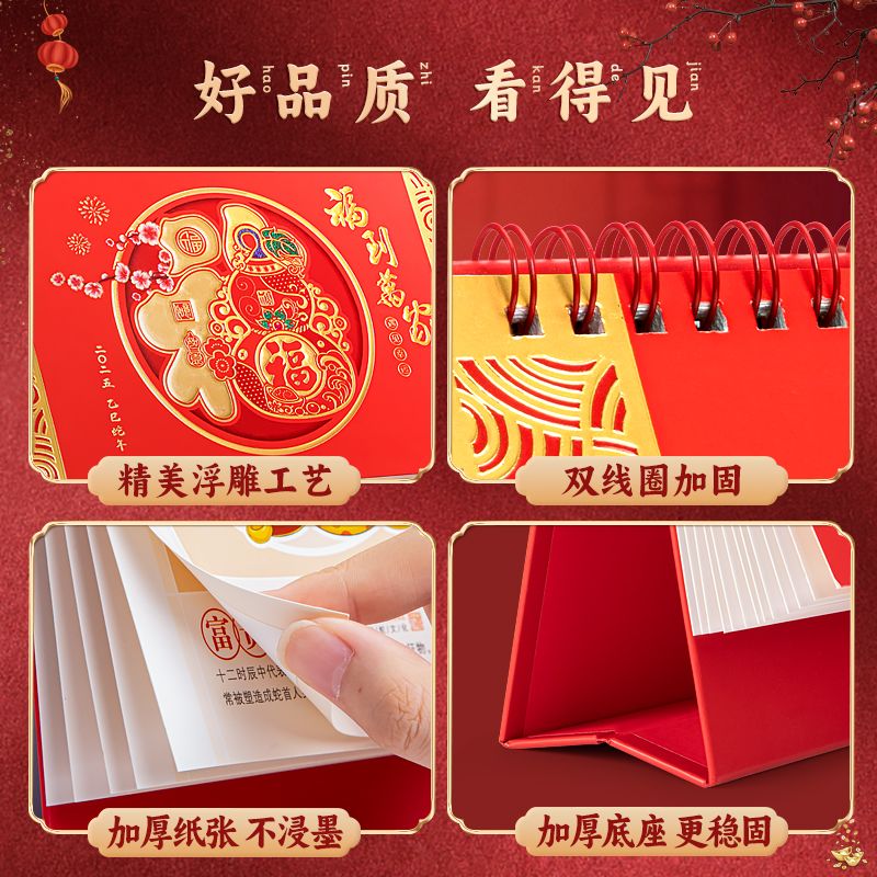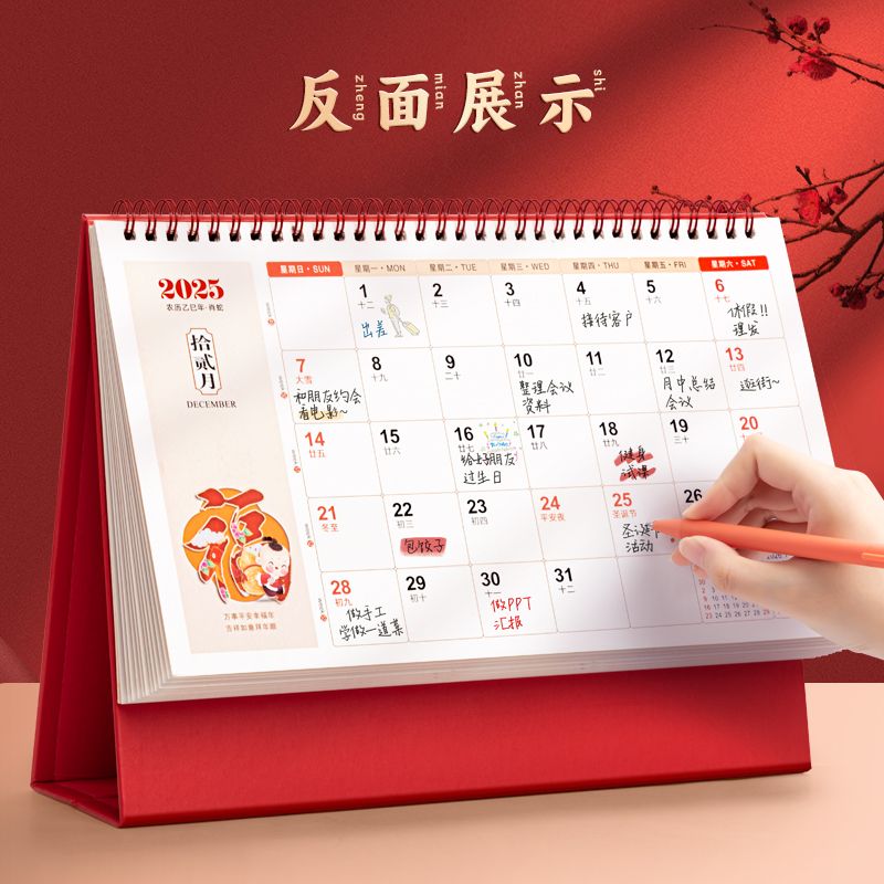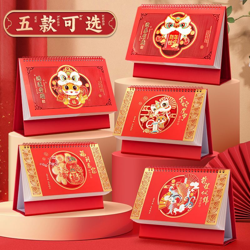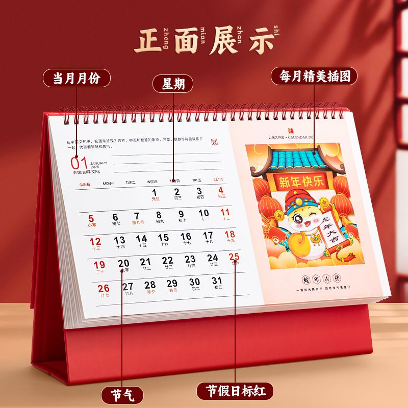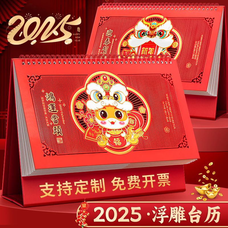 2025年台历红色蛇年定制中国红喜庆企业礼品订制三角台历制作日历