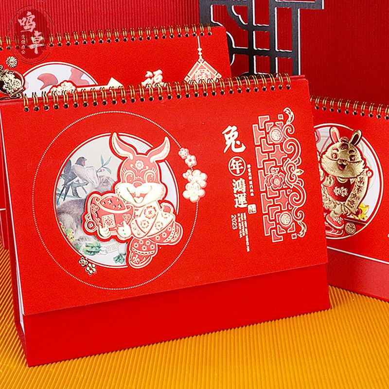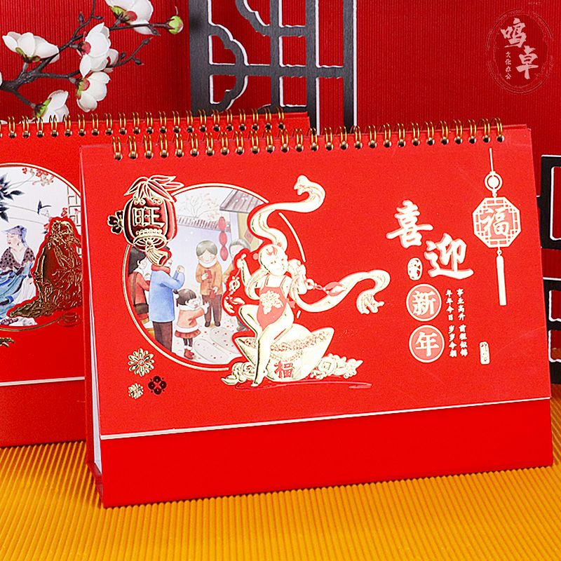 台历2025年中国风桌面台历广告定制创意中国红月历商务日历记事本