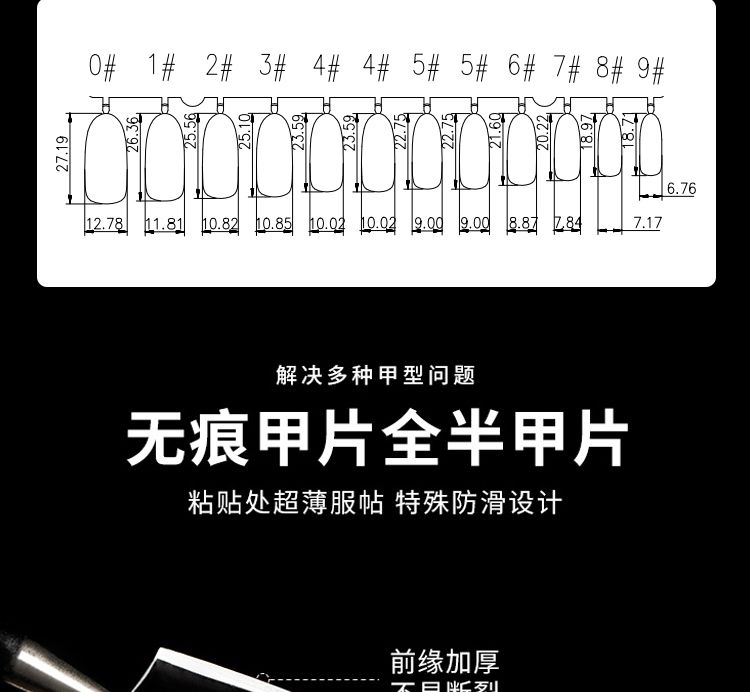 甲片美甲店专用超薄无痕免刻磨全半两用折无痕平弧扁平指甲甲片