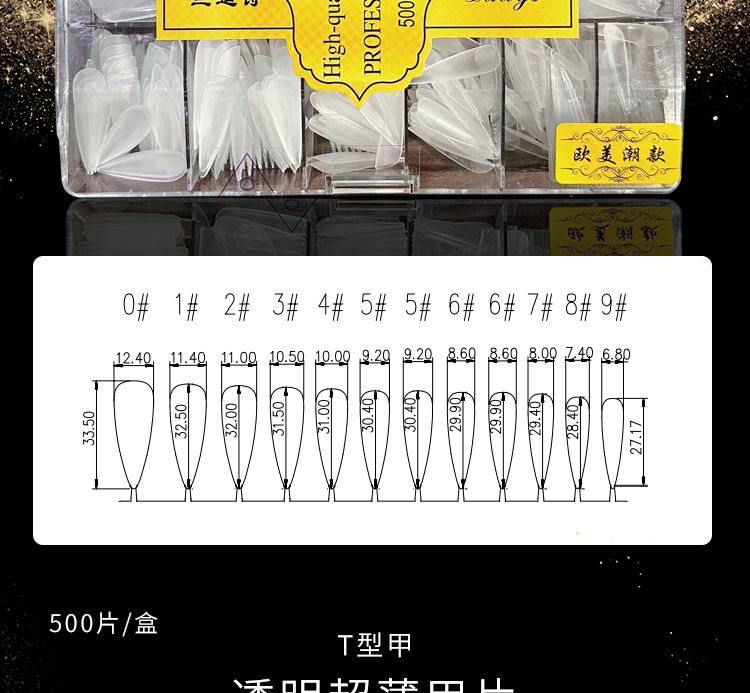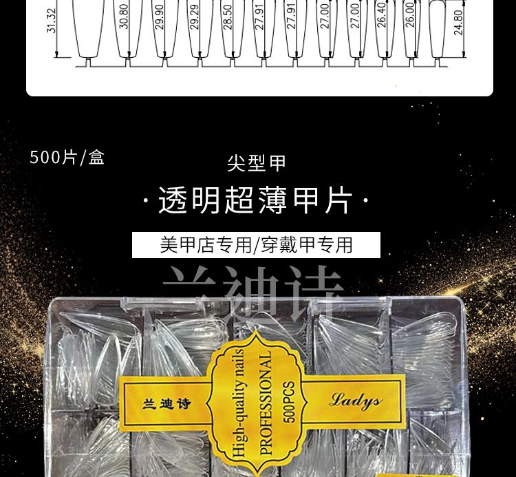 | transparent pointed full no. 0-9 500 pieces(透明尖形全号0-9号 500片) | USD $3.9 | 999999 piece available |