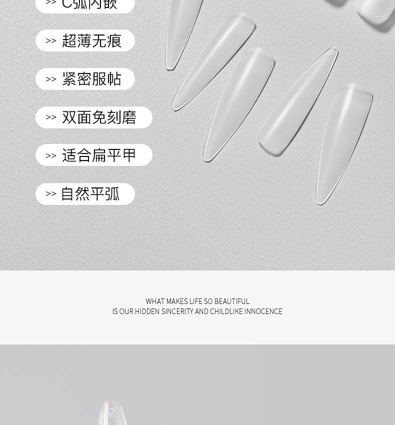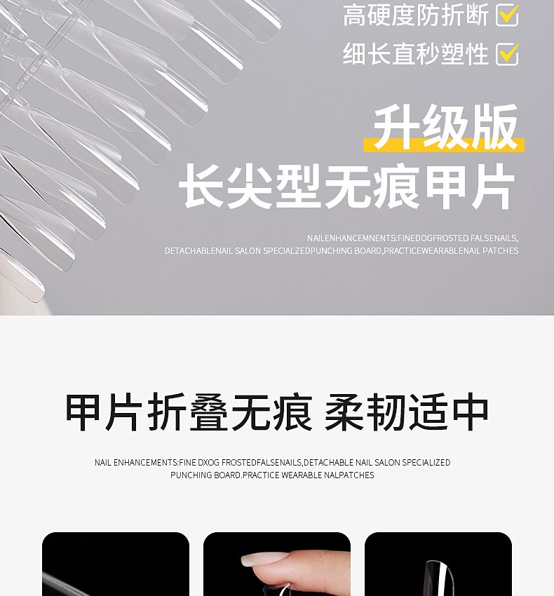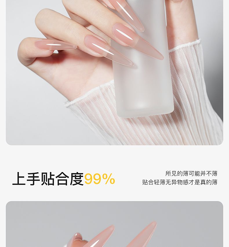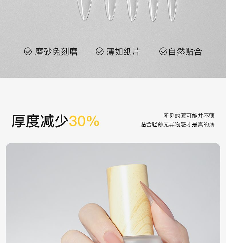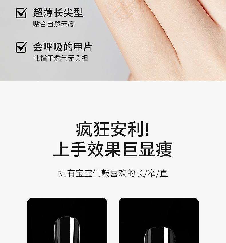 美甲超薄细狗全贴免刻细狗甲片细长无痕透明磨砂指甲美甲店专用