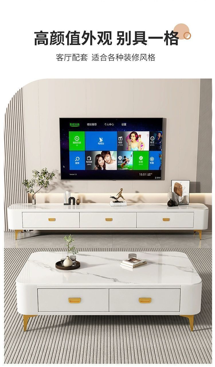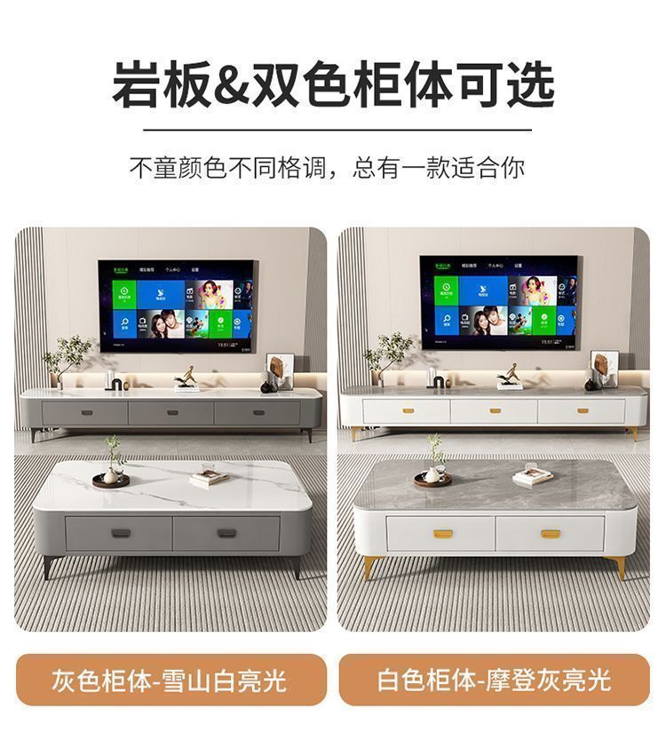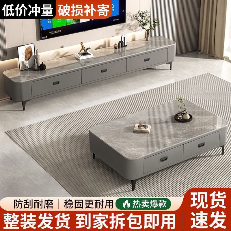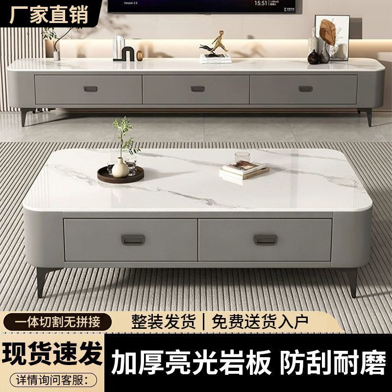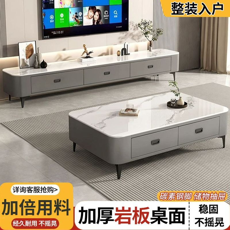 岩板电视柜茶几客厅家用小户型2024现代简约茶桌北欧落地茶几组合