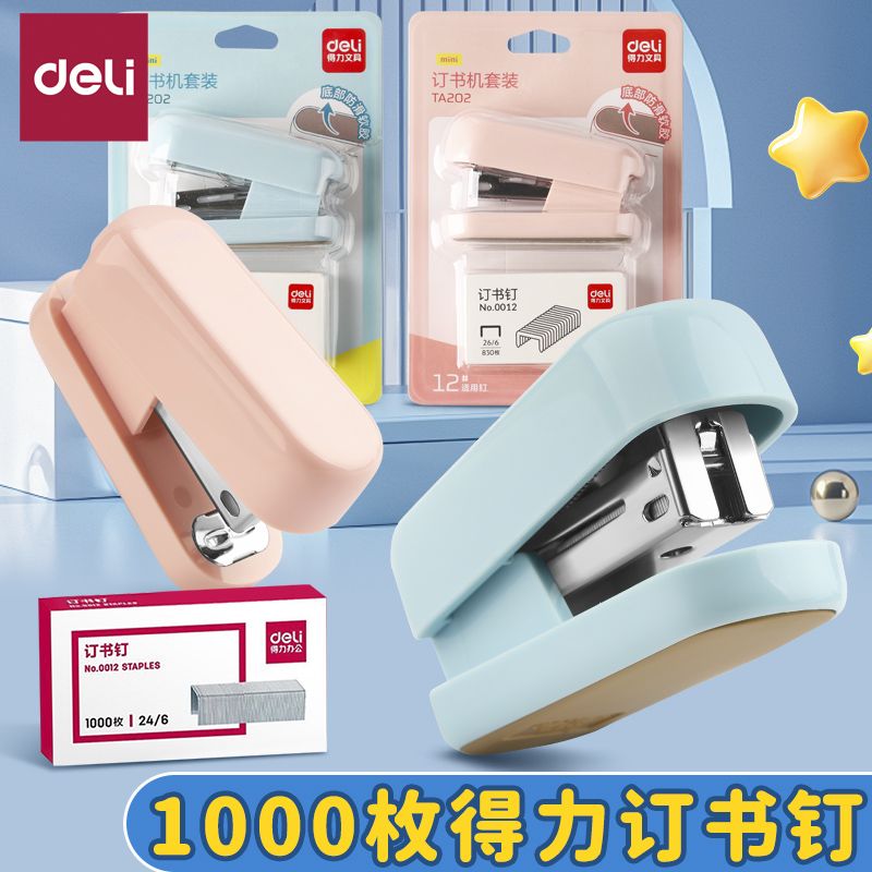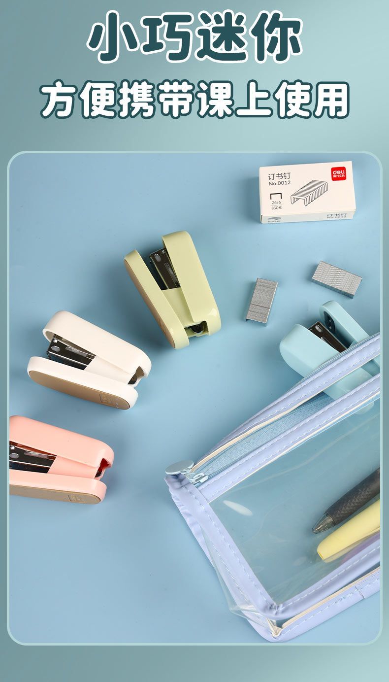 得力迷你订书机学生专用小号小型便携省力型12号订书器经久耐用
