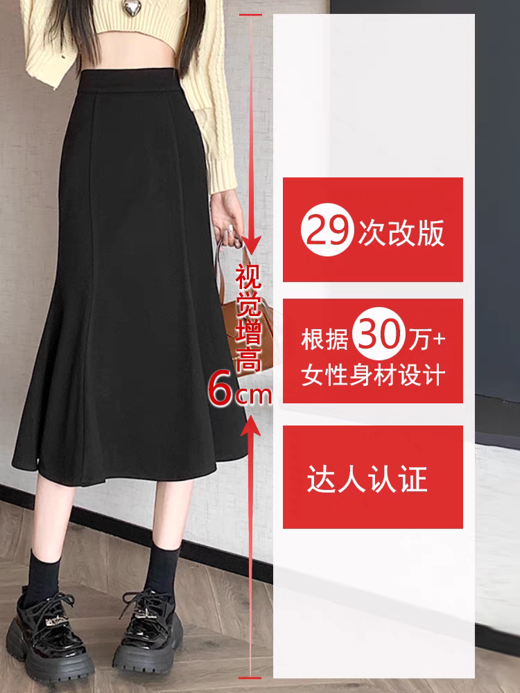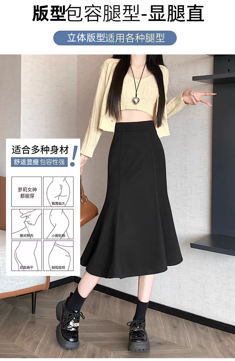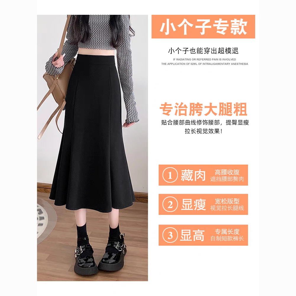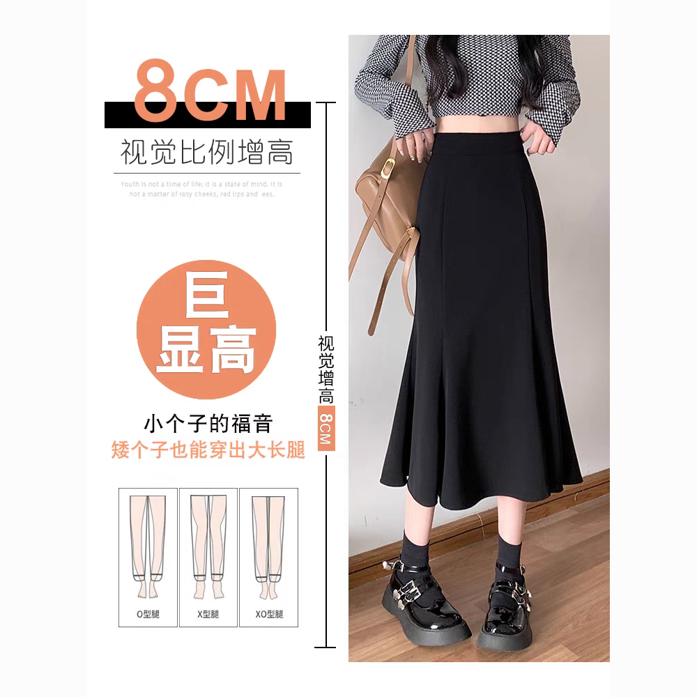 高档面料鱼尾黑色半身裙2024秋冬新款中长款高腰显瘦气质长裙加厚
