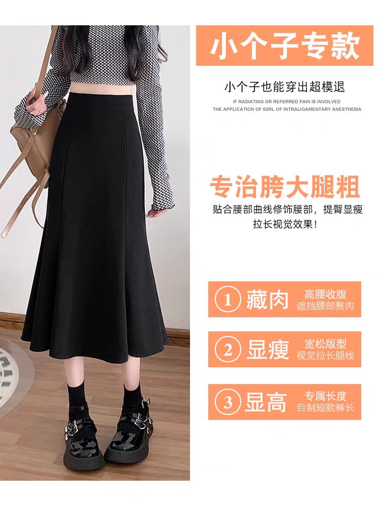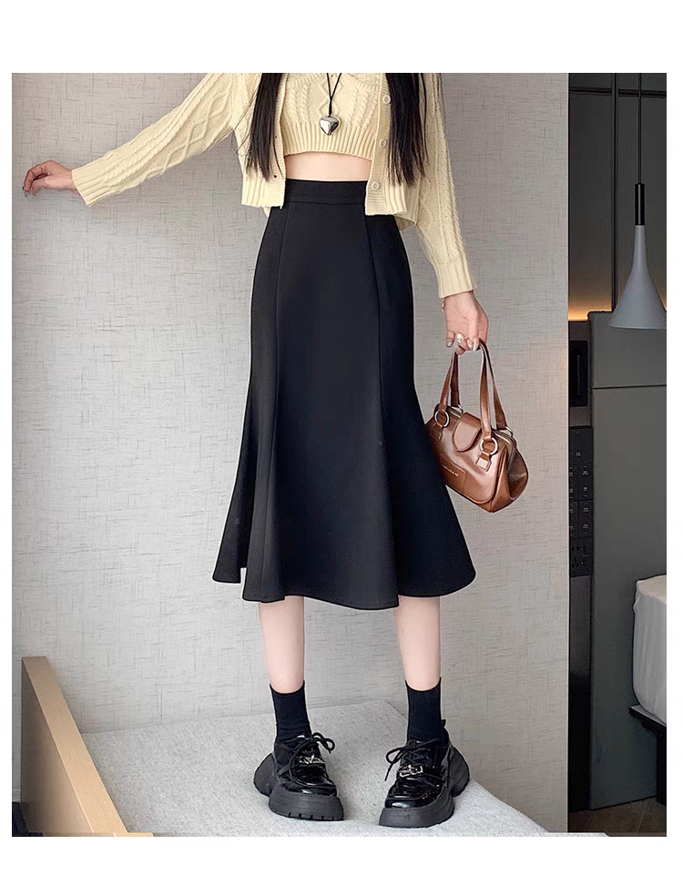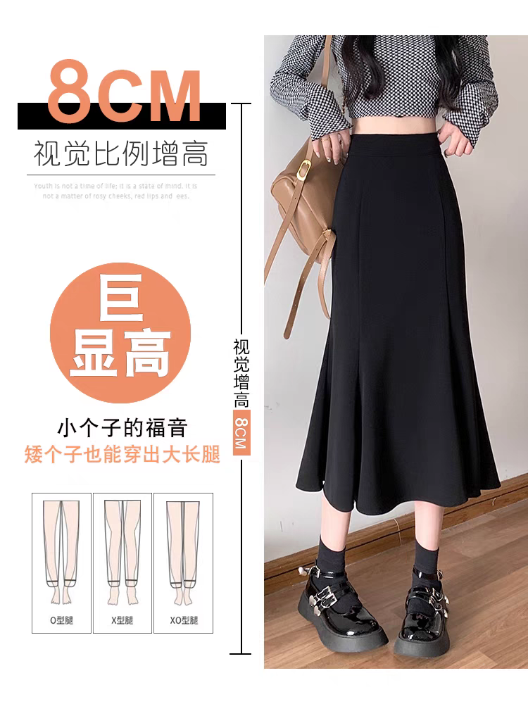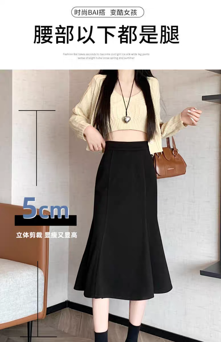 高档面料鱼尾黑色半身裙2024秋冬新款中长款高腰显瘦气质长裙加厚