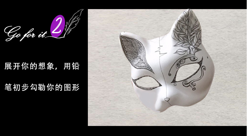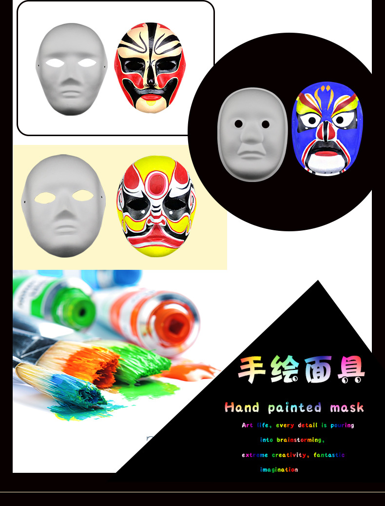 纸浆面具白色手绘画画面具猫脸面具狐狸DIY京剧脸谱面具白色眼罩