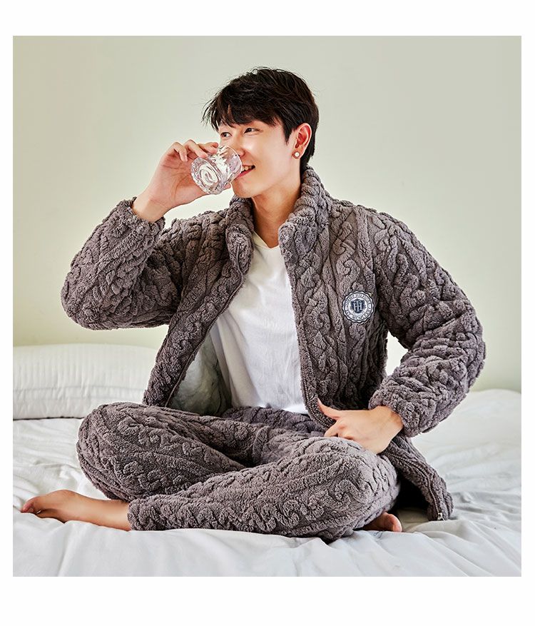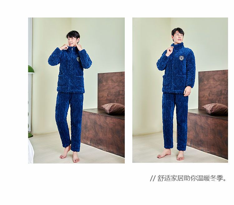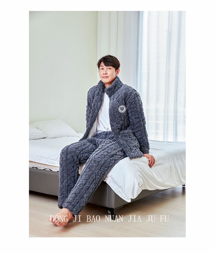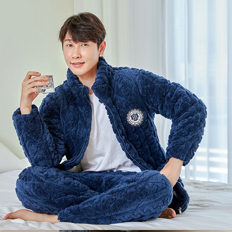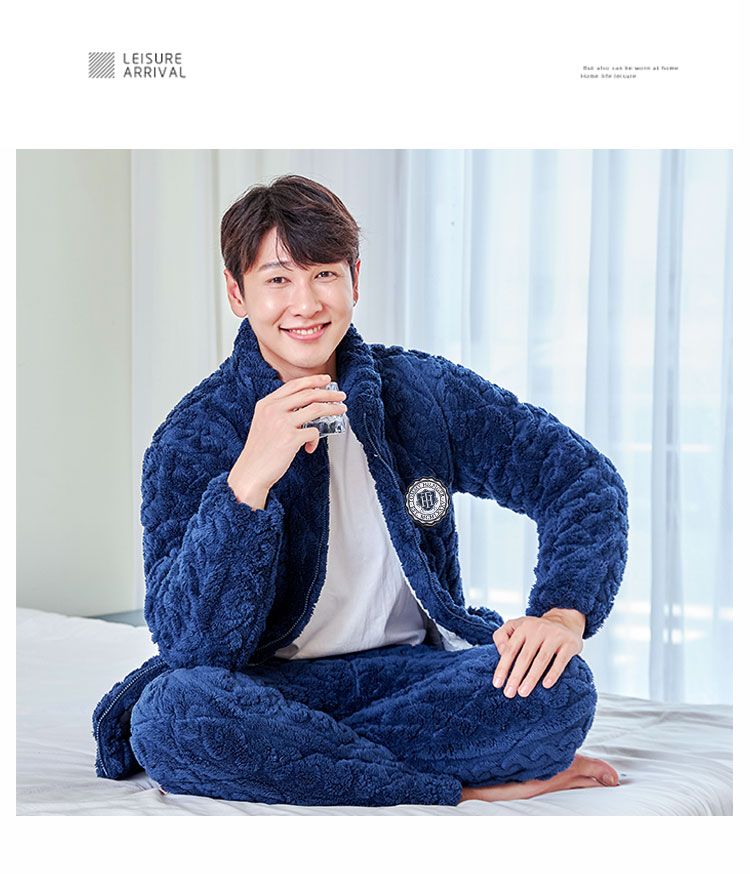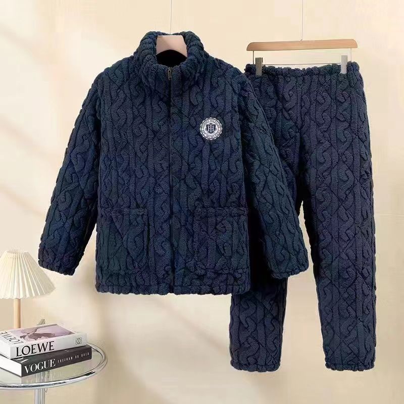 睡衣男新款秋冬季外穿加绒特厚夹棉袄超厚保暖套装中老年家居服