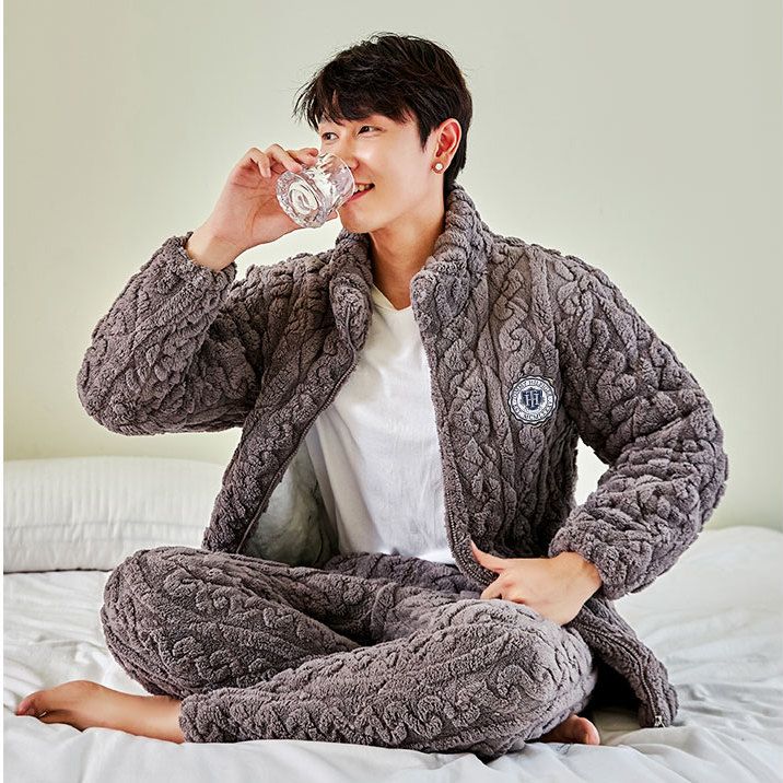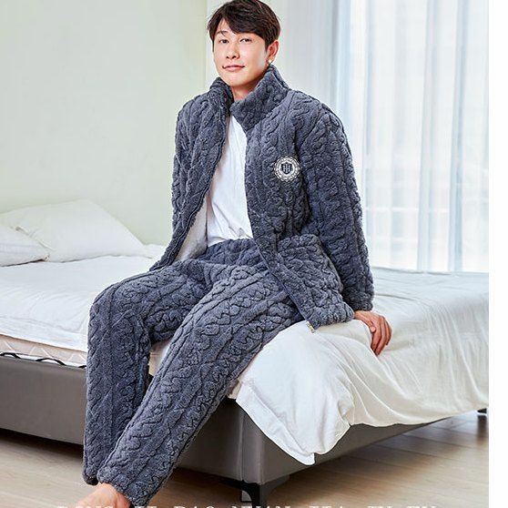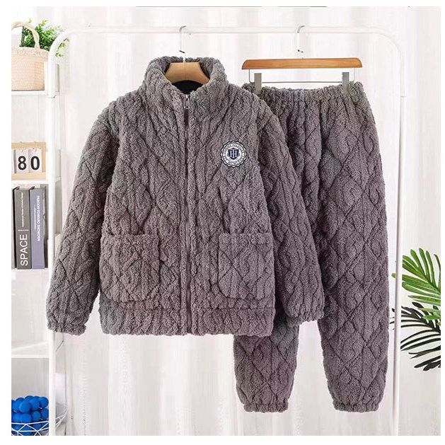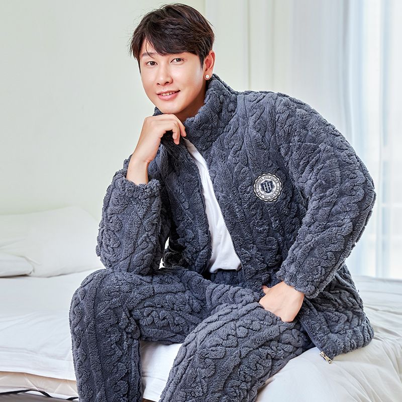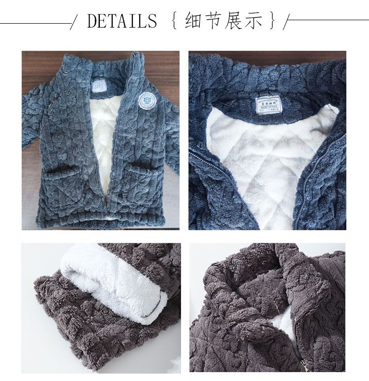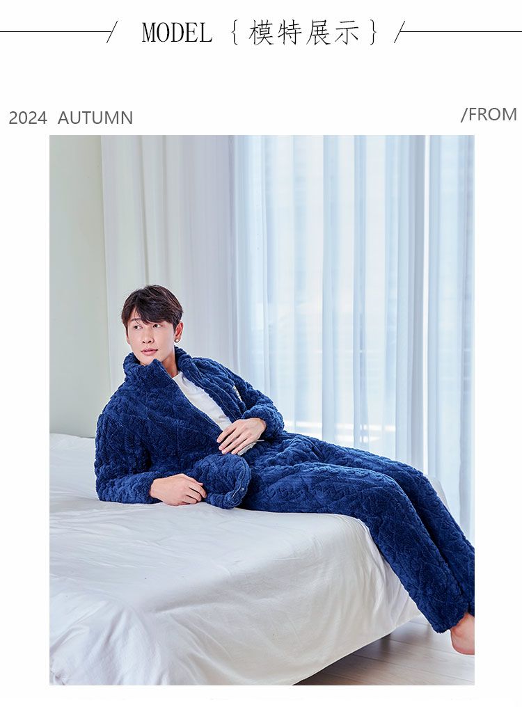 睡衣男新款秋冬季外穿加绒特厚夹棉袄超厚保暖套装中老年家居服