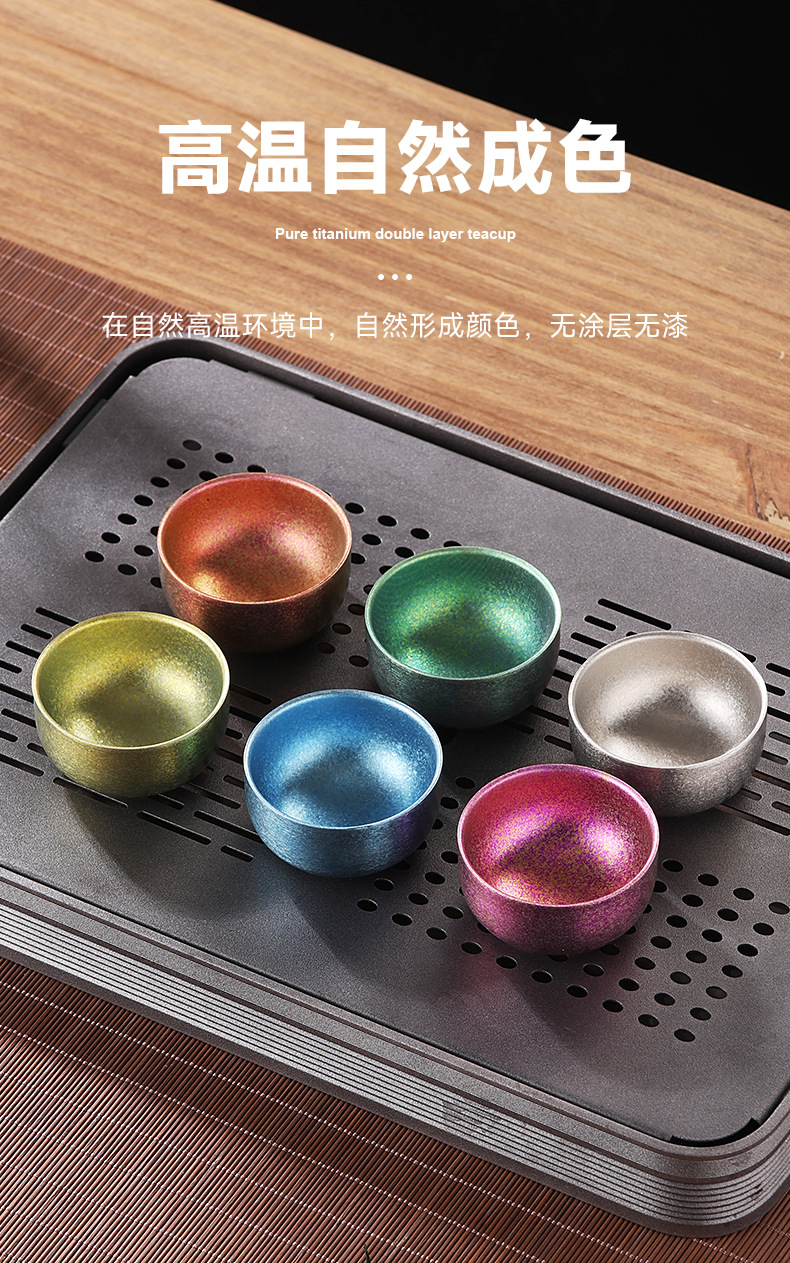 纯钛茶杯主人杯双层品茗中式家用功夫喝茶具小单建盏旅行套装合金