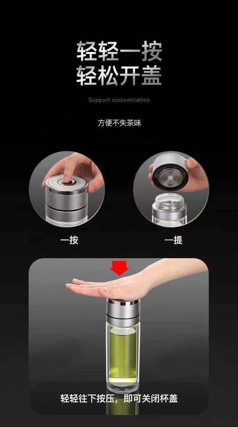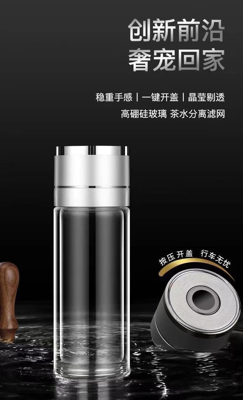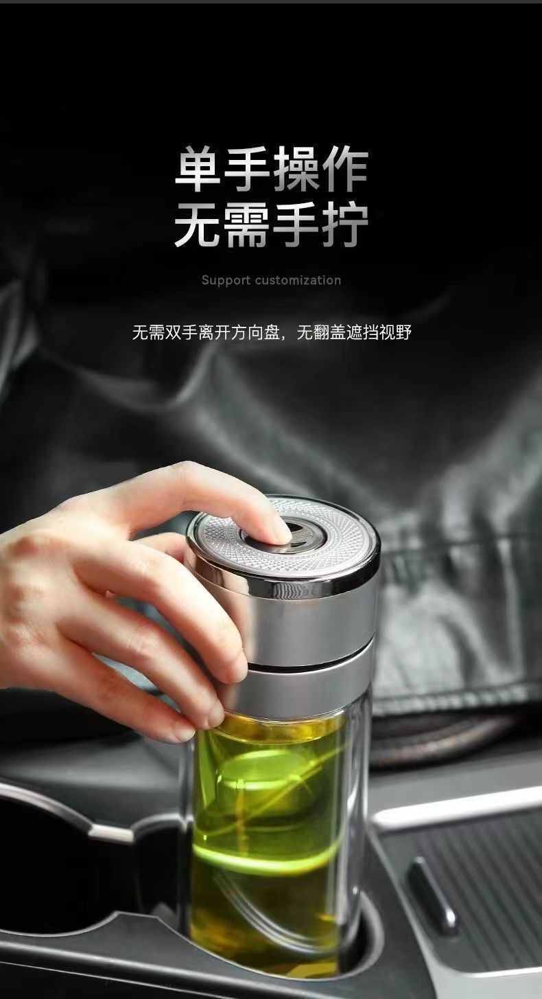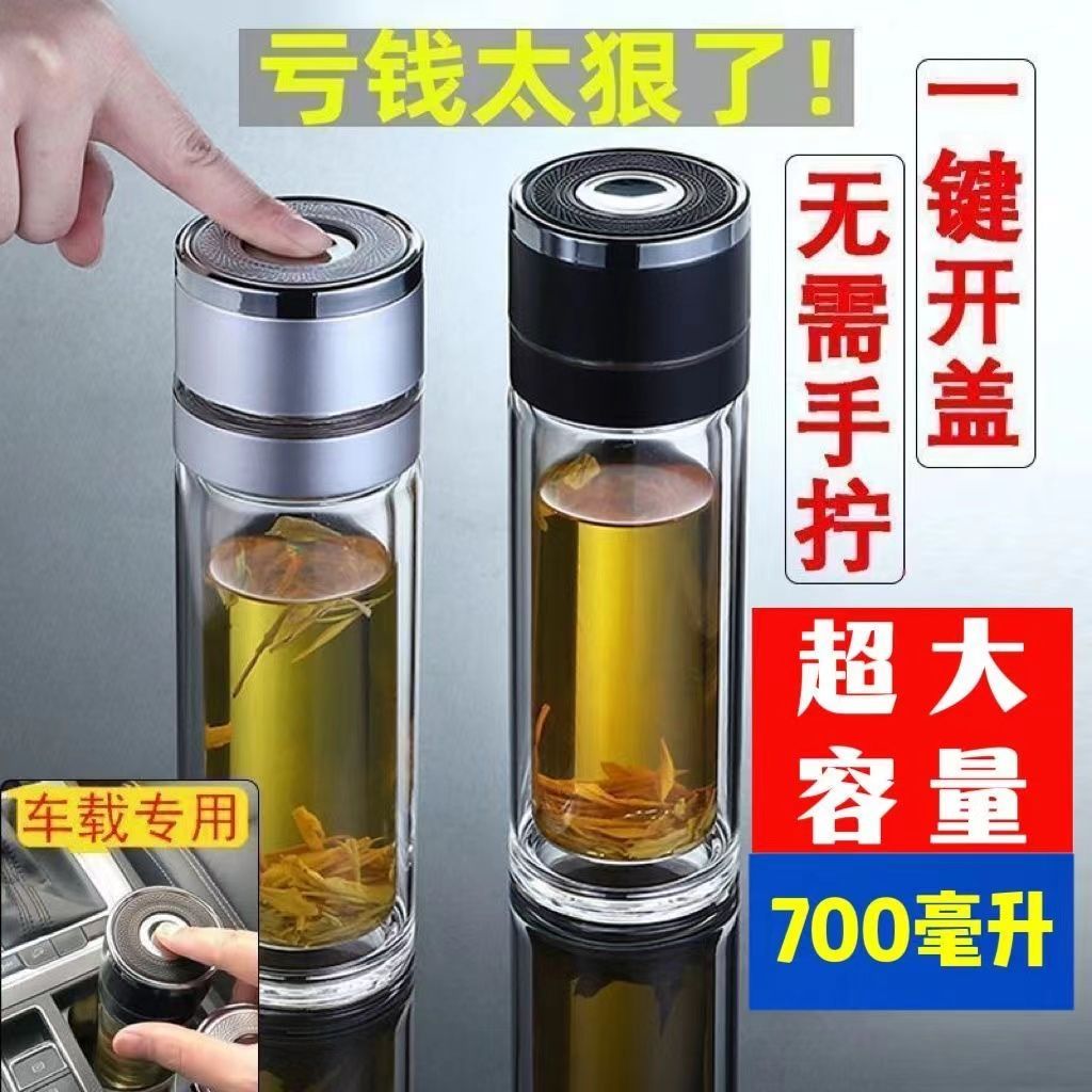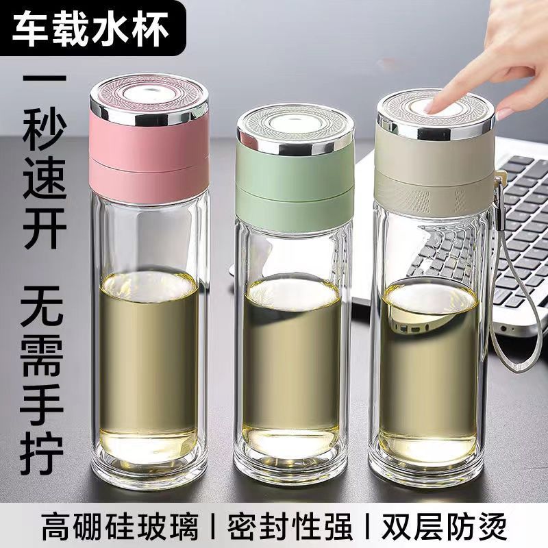 车载玻璃杯男士水杯一键便携开盖高档双层加厚茶杯新款茶水分离