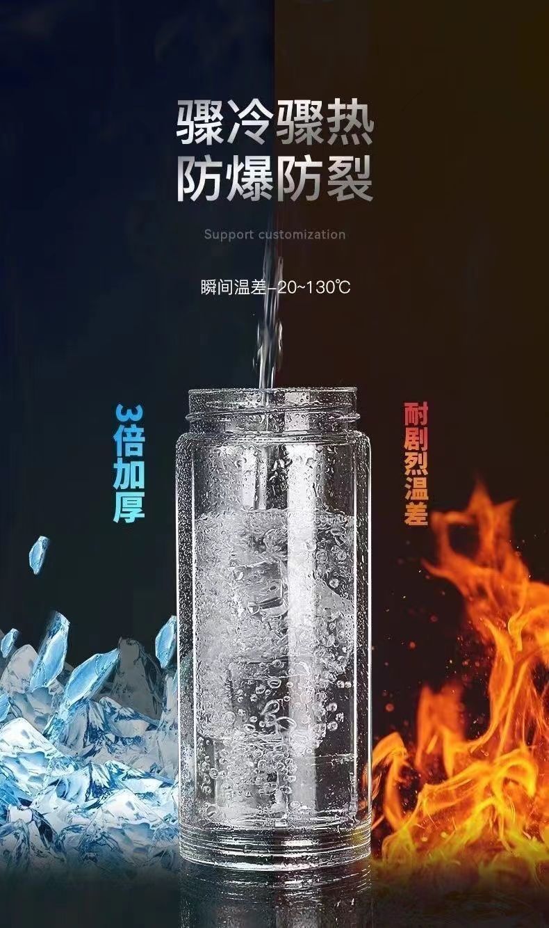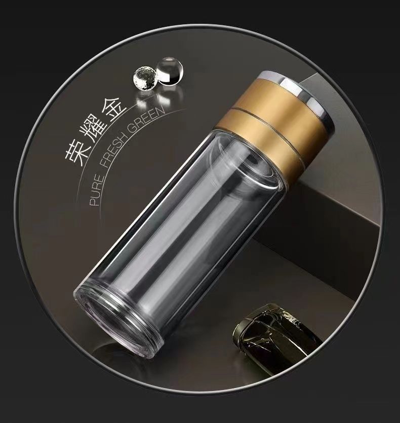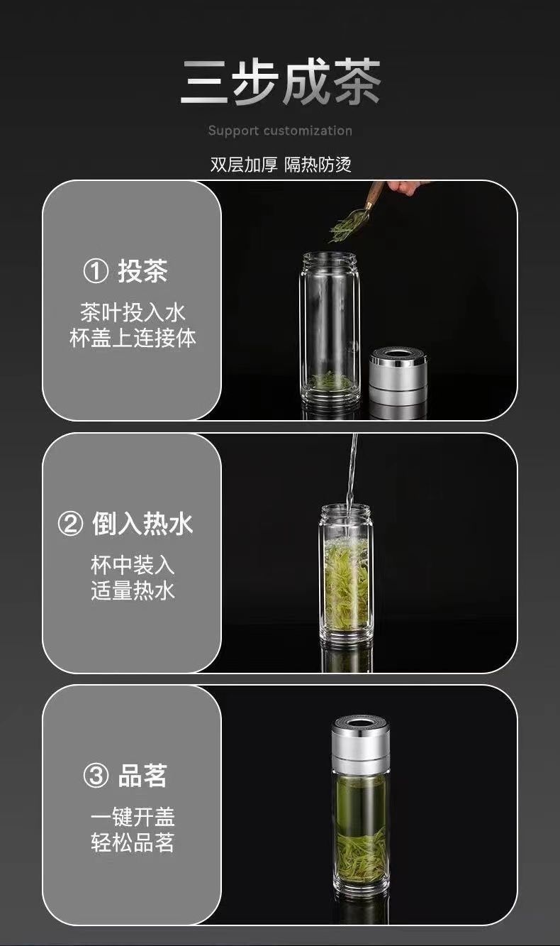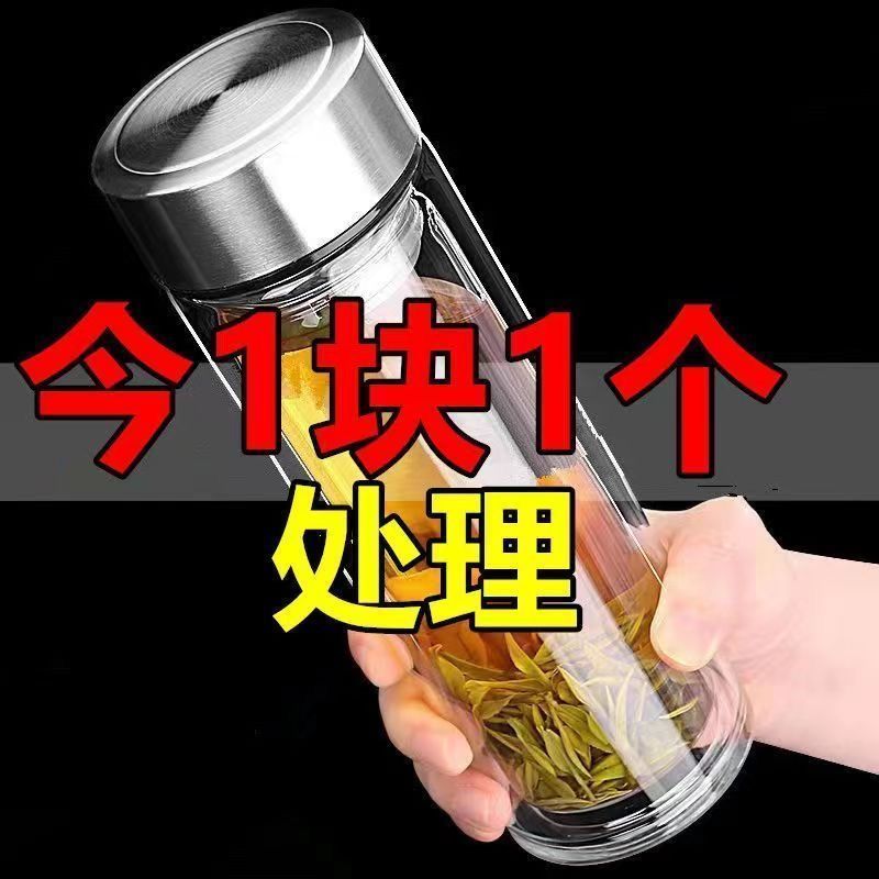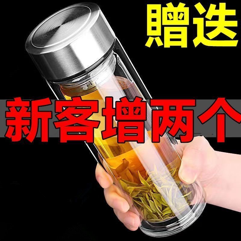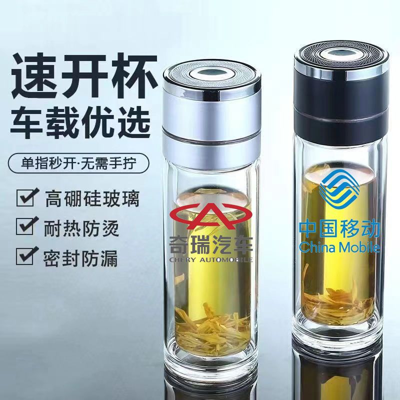 车载玻璃杯男士水杯一键便携开盖高档双层加厚茶杯新款茶水分离
