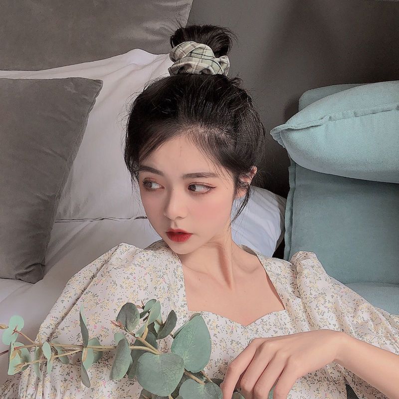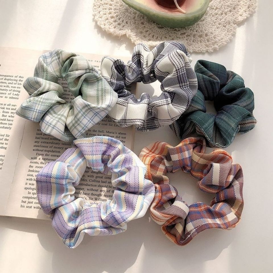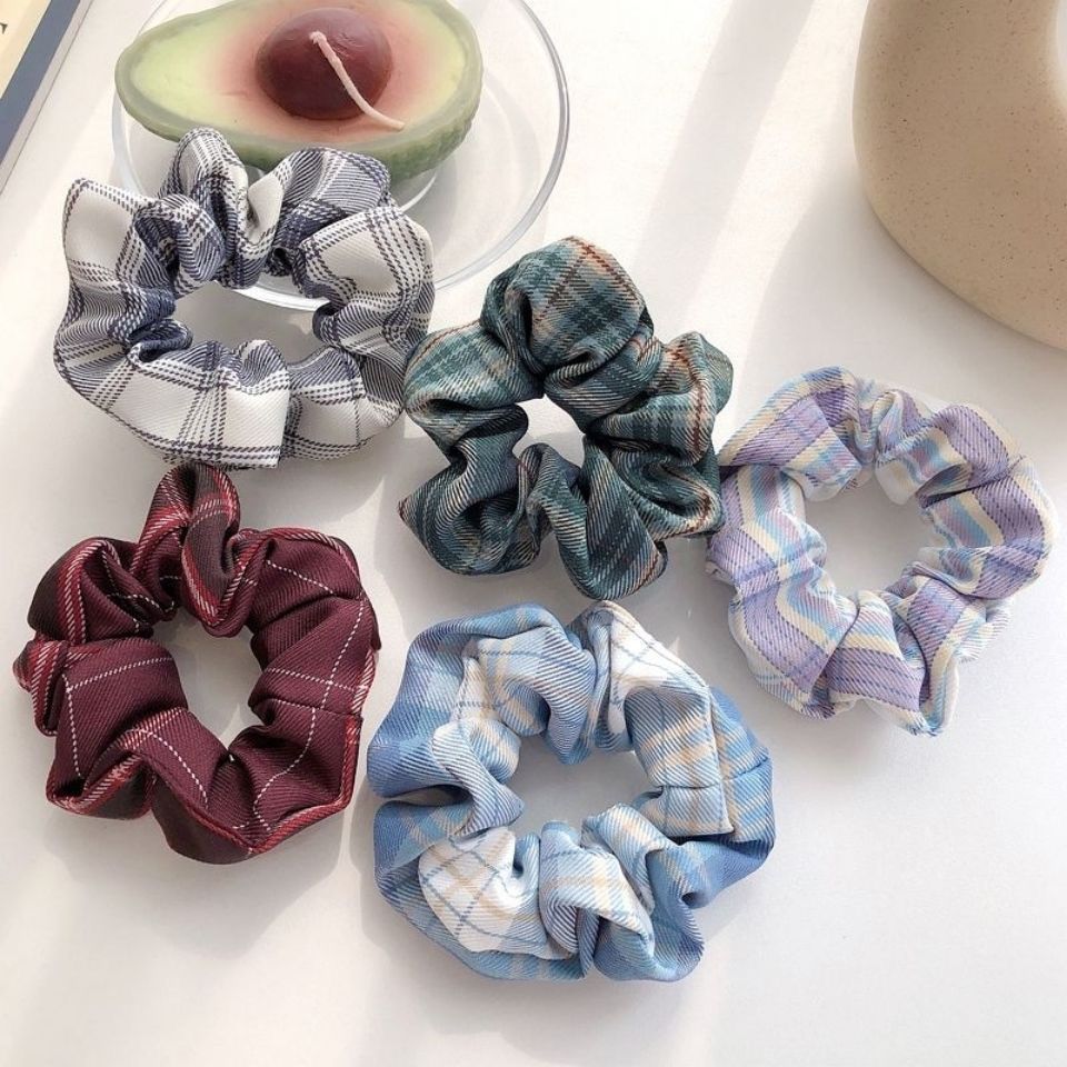 jk制服碎花格子网红大肠发圈韩版学院风布艺扎头发森林系格子发圈