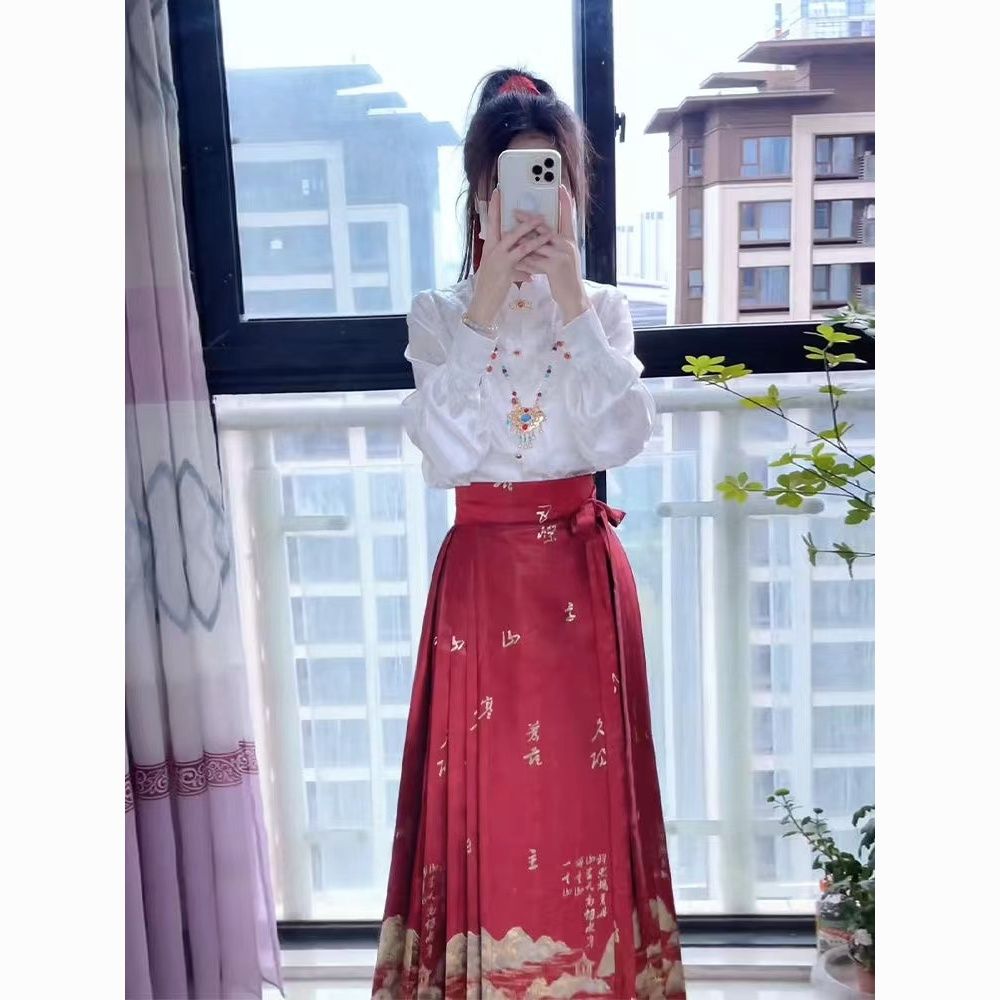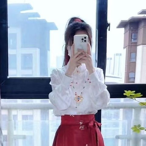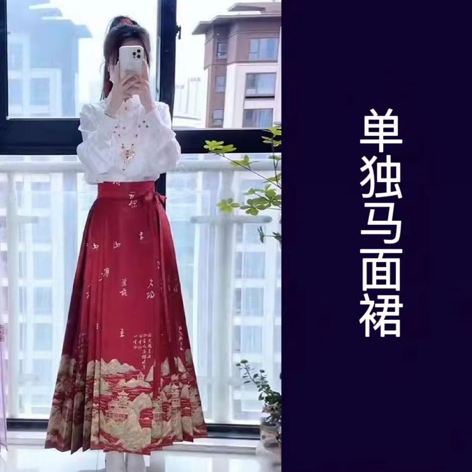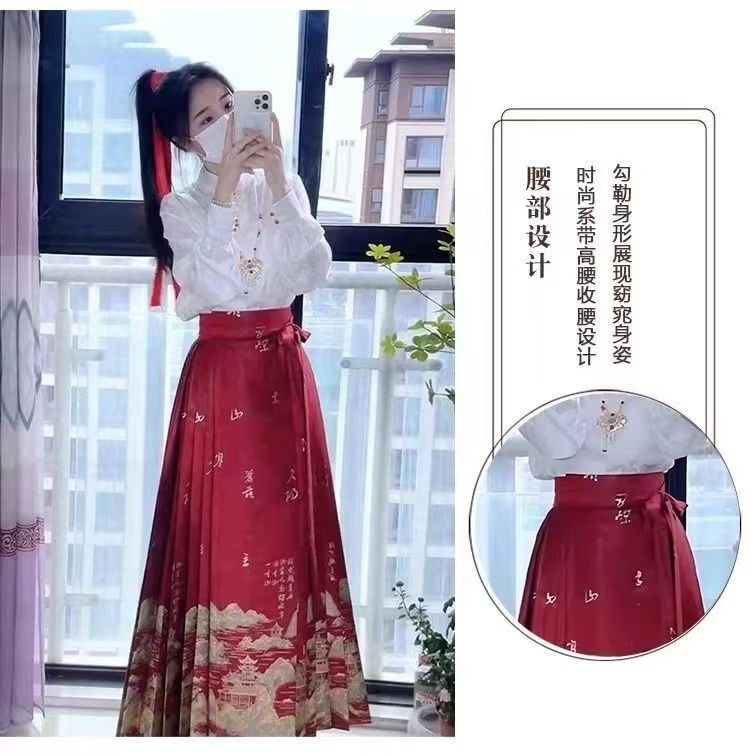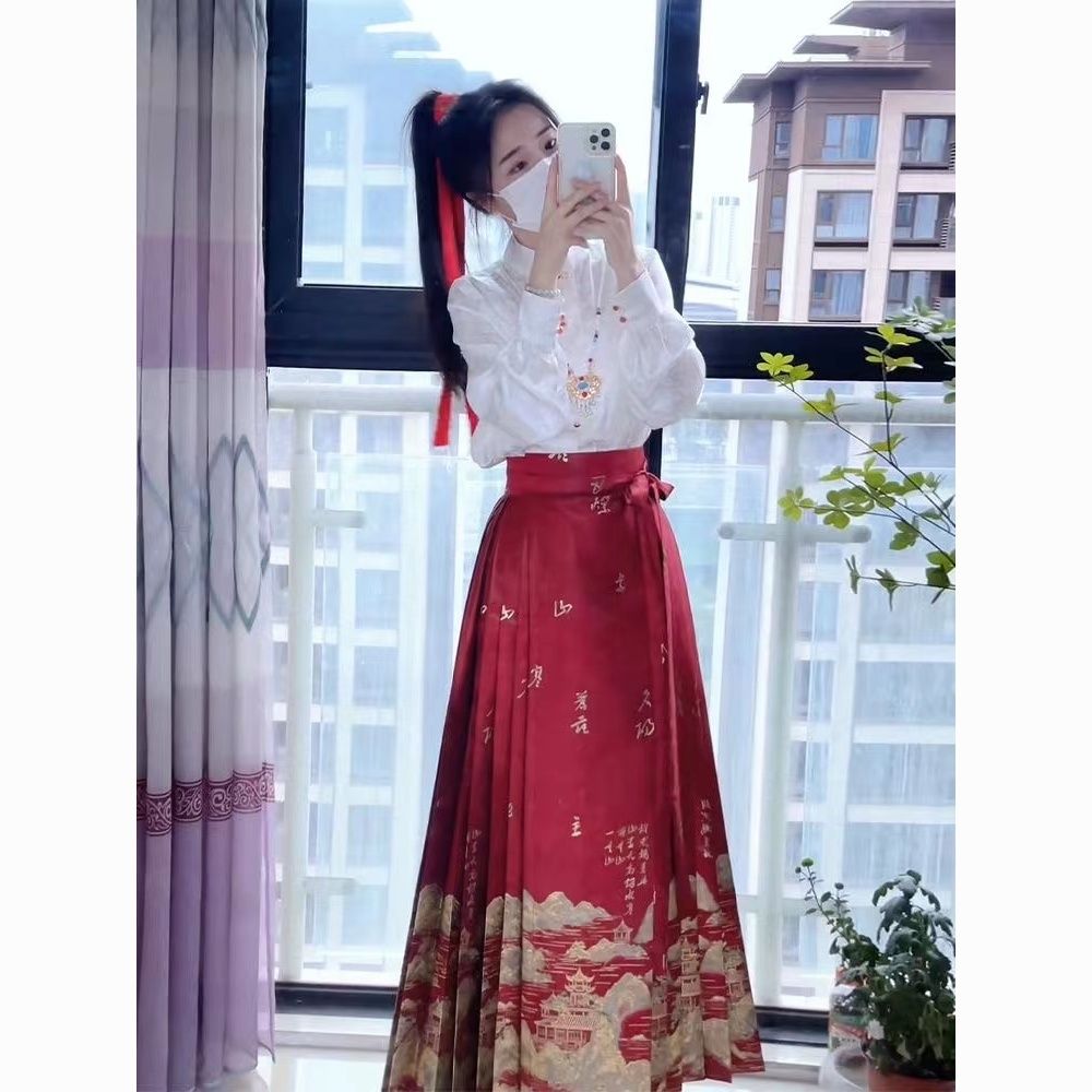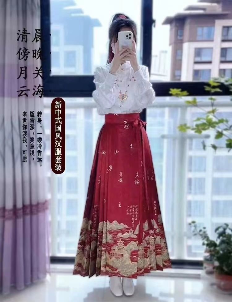 千里江山春季新款中式红色马面女上衣套装小个子日常国风加大汉服