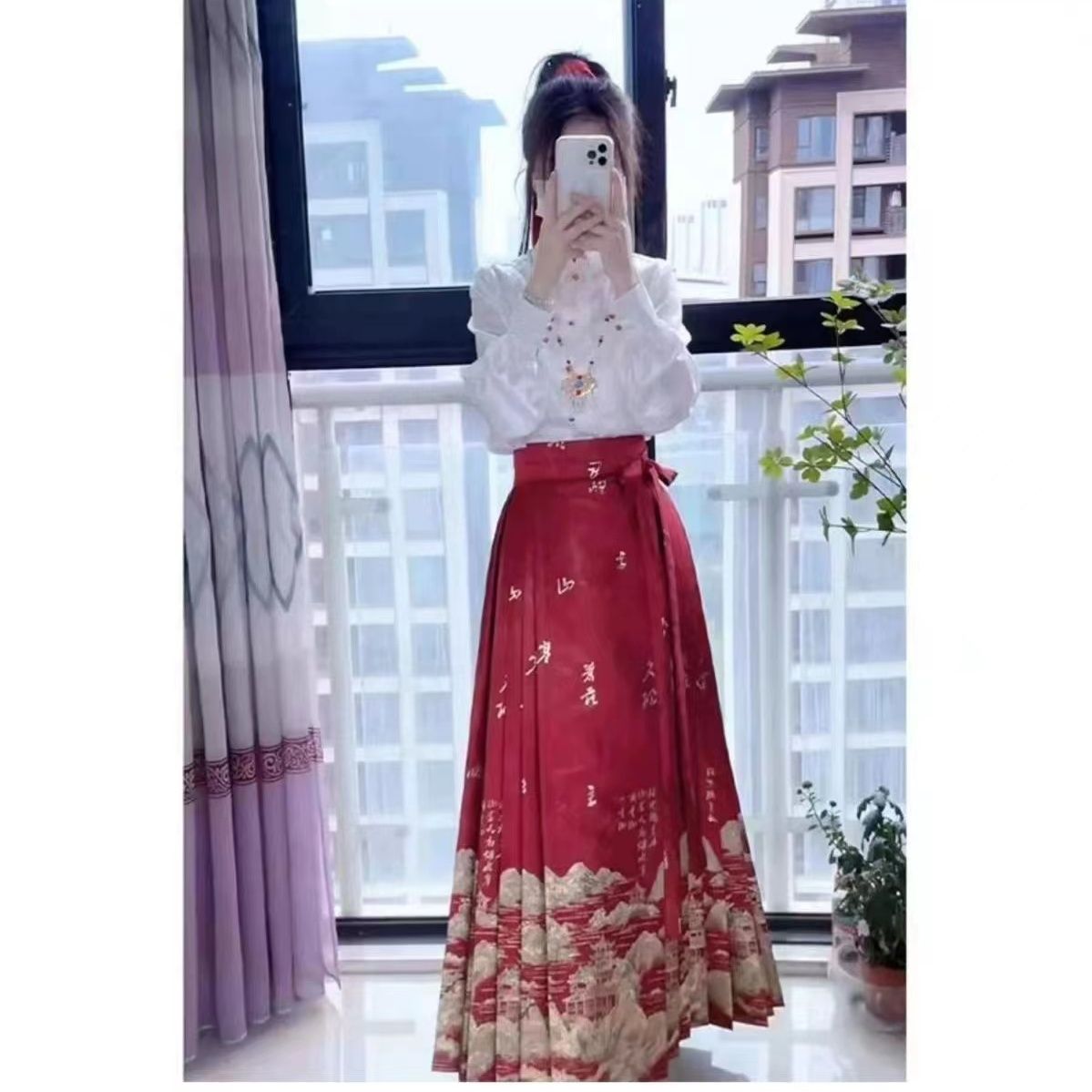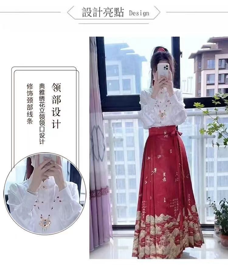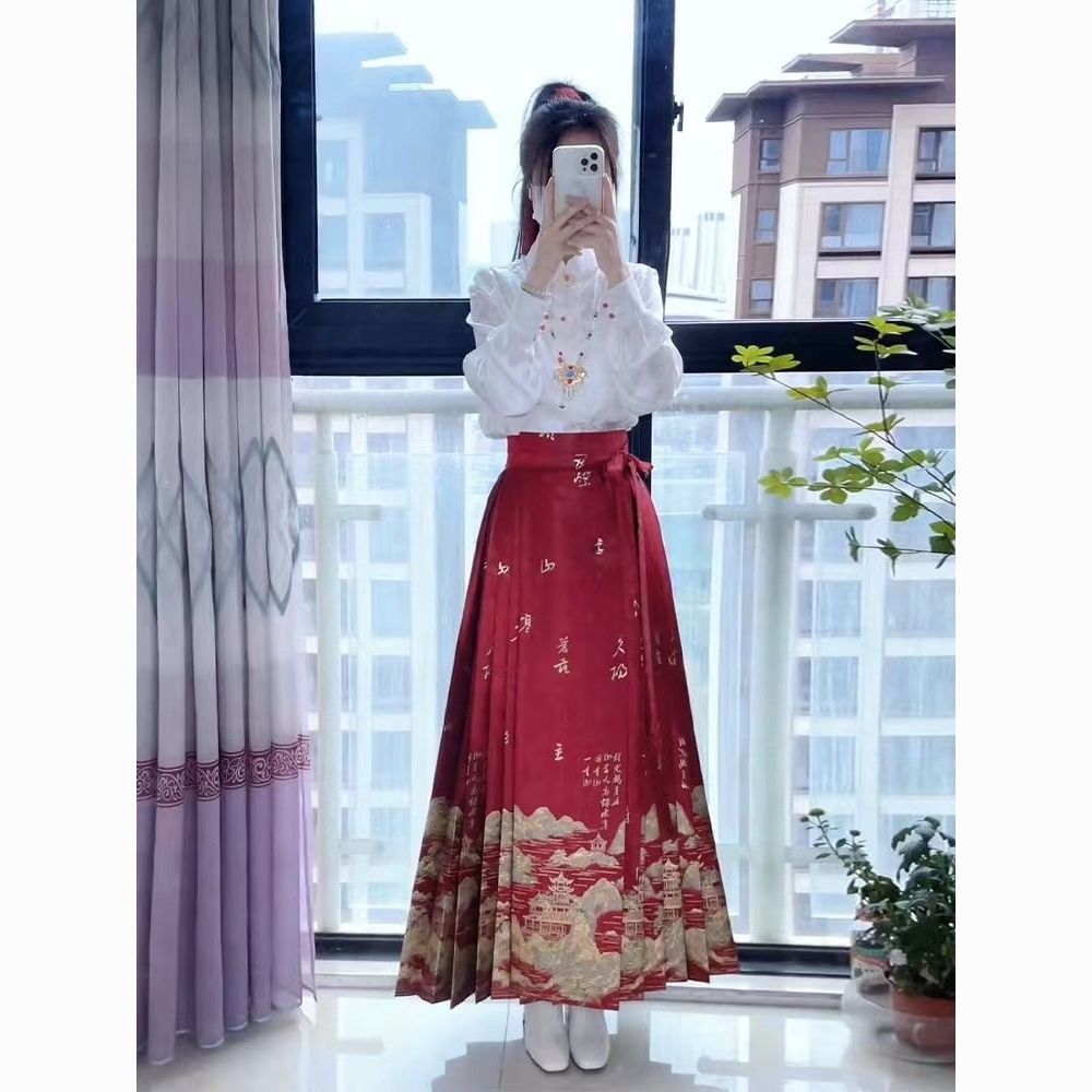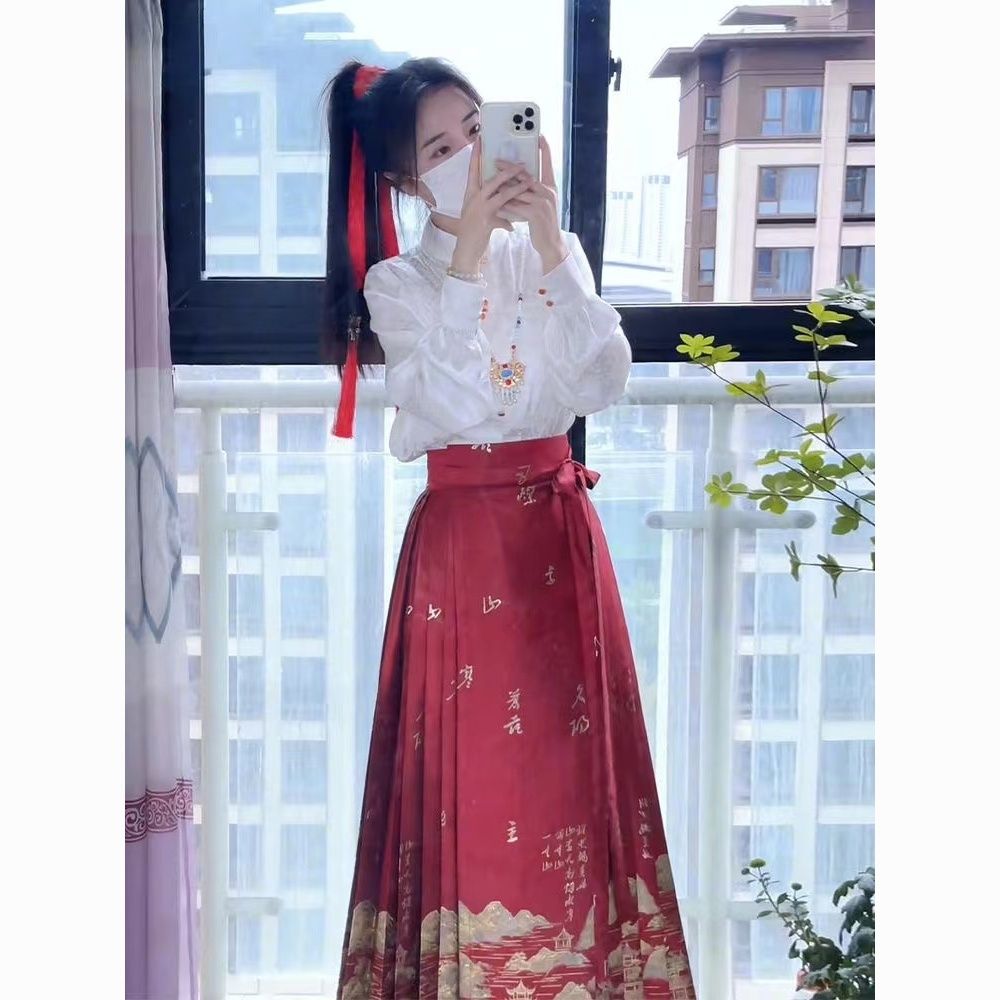 千里江山春季新款中式红色马面女上衣套装小个子日常国风加大汉服