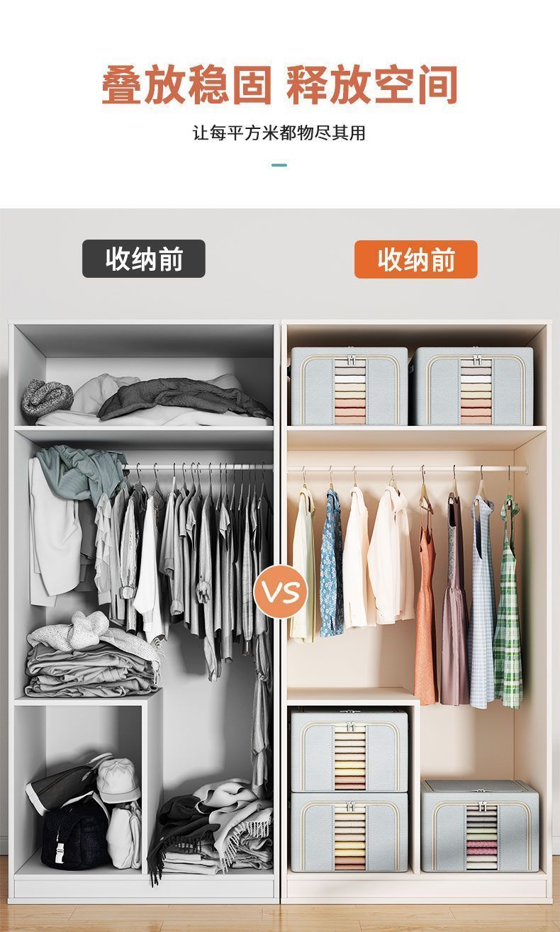 衣服收纳箱可折叠钢架加厚无纺布装衣服家用大容量储物箱整理筐子