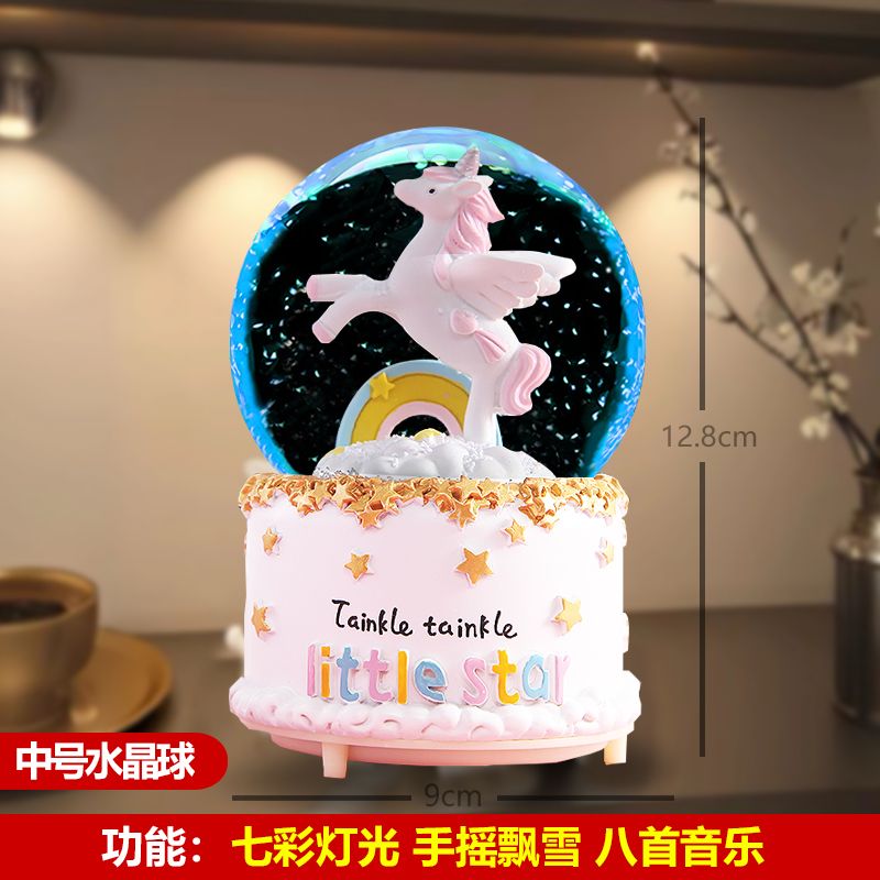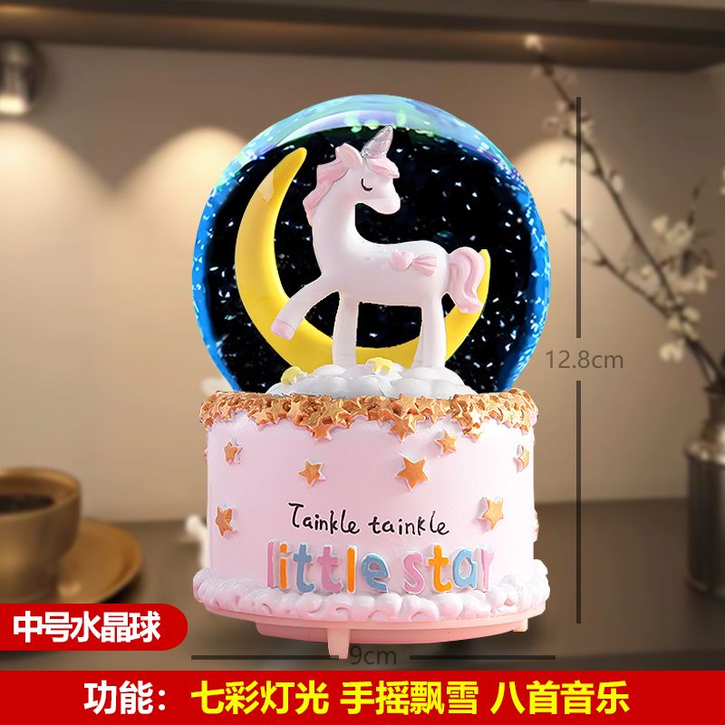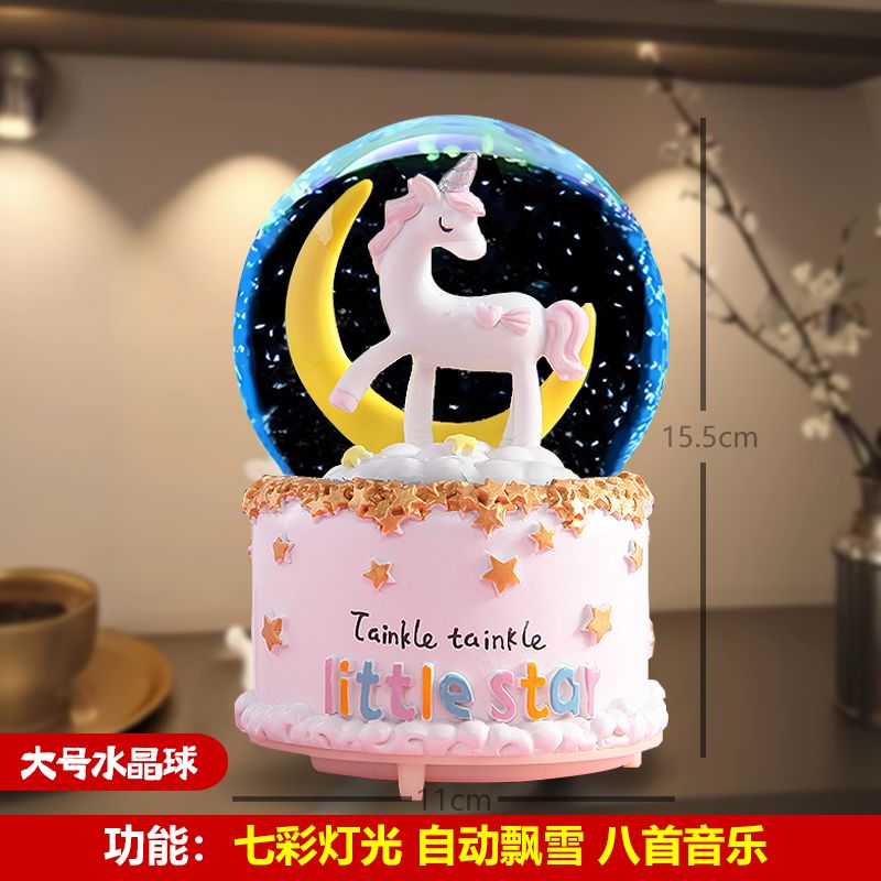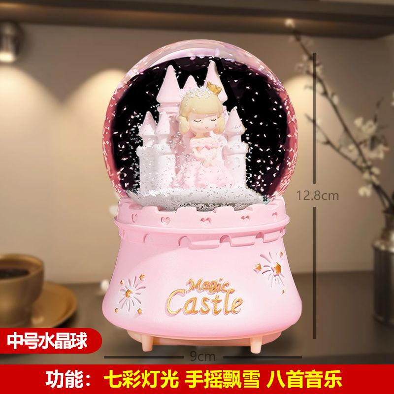 八音盒带雪花可发光生日礼物儿童女孩闺蜜朋友水晶球女孩公主风