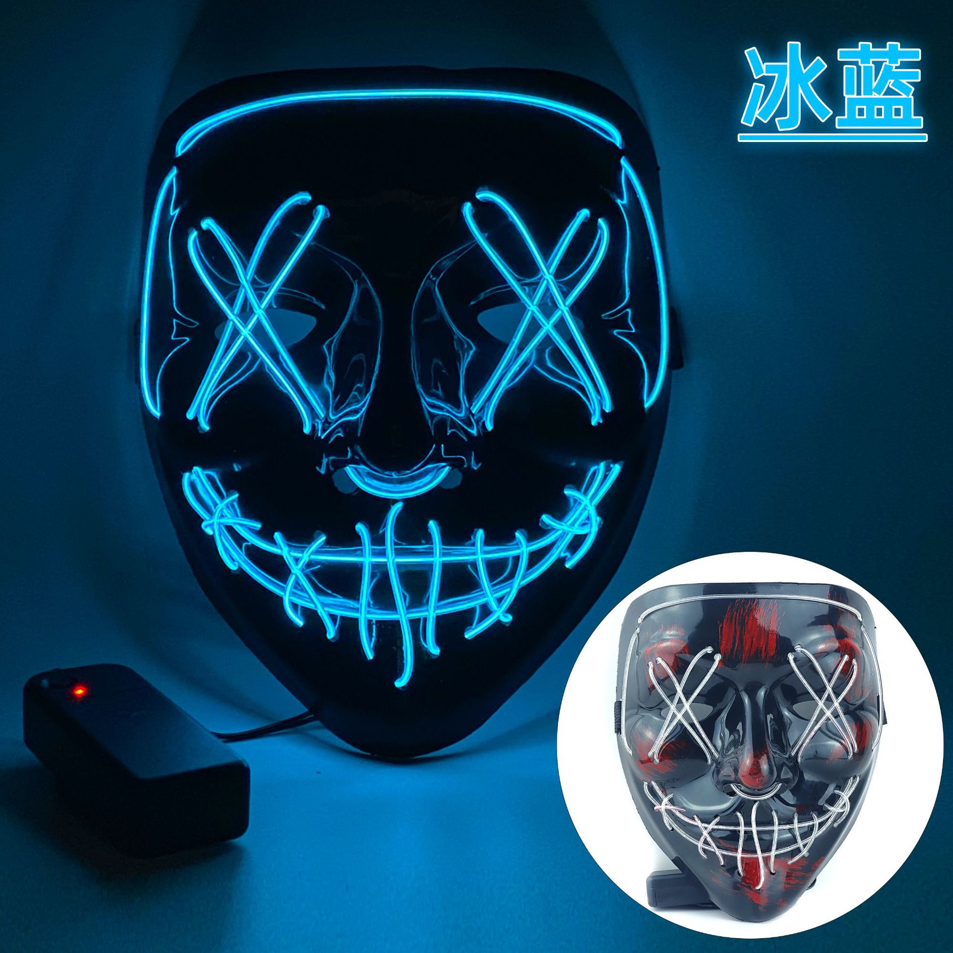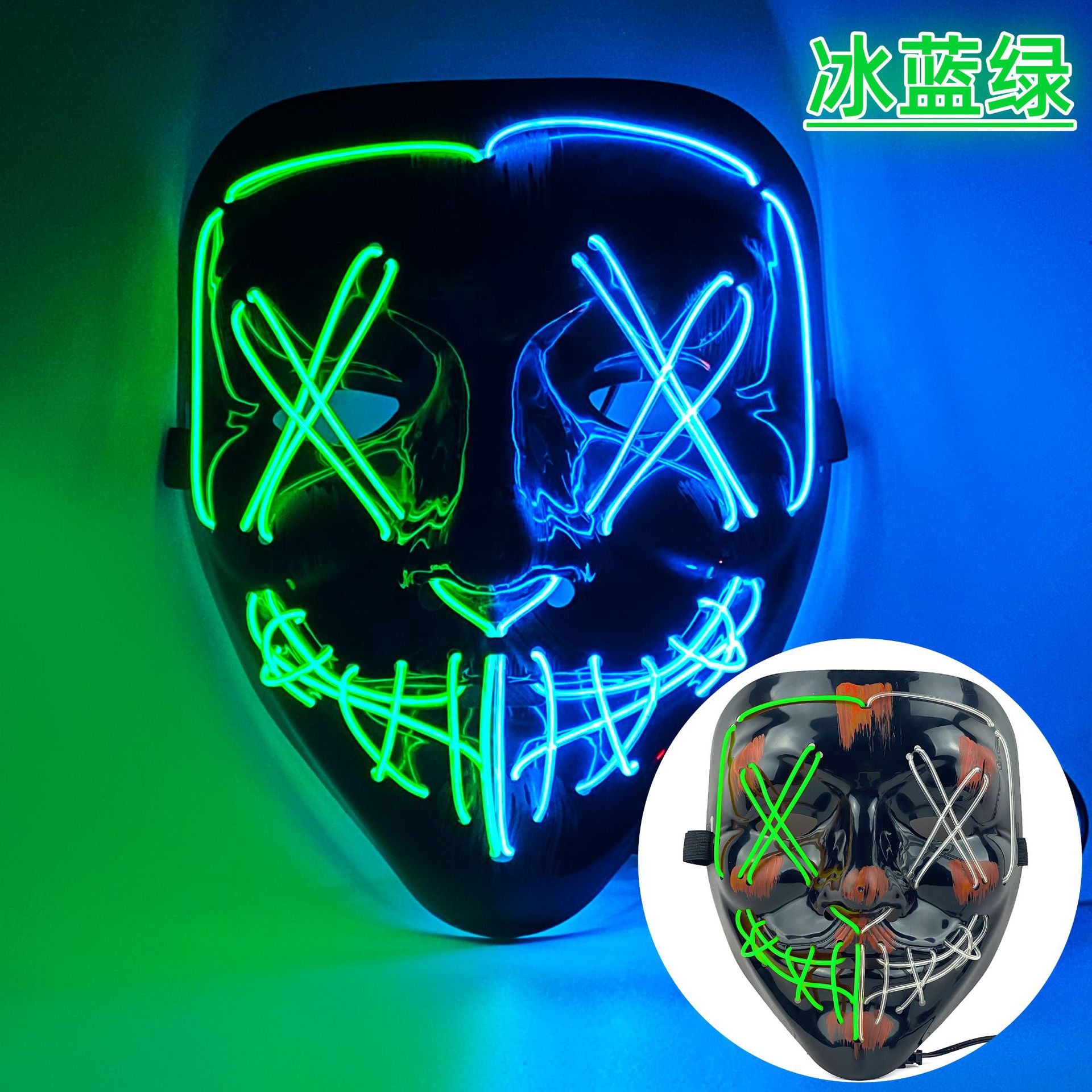 跨境万圣节发光面具EL冷光面罩黑V字仇杀恐怖鬼脸LED派对舞会道具