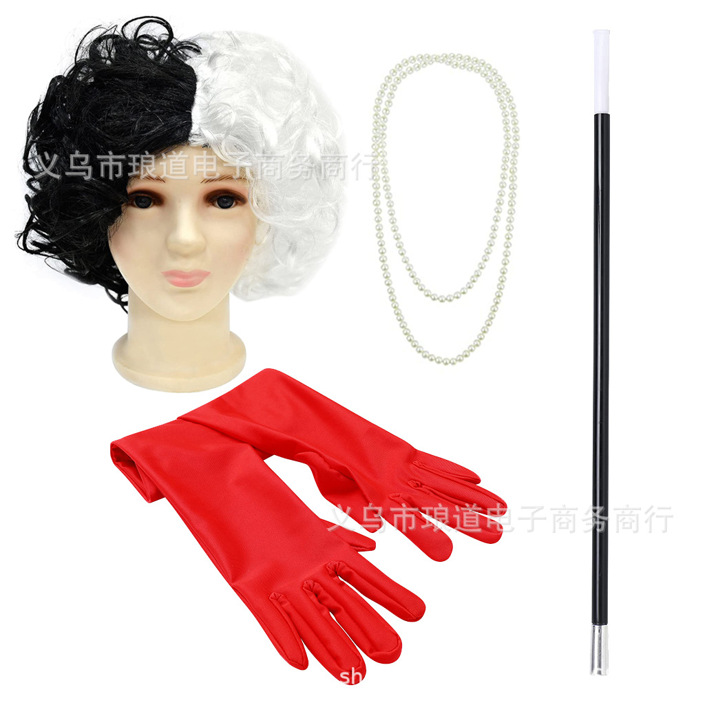 黑白魔女库伊拉假发面具手套烟杆项链套装101忠狗艾斯黛拉装扮