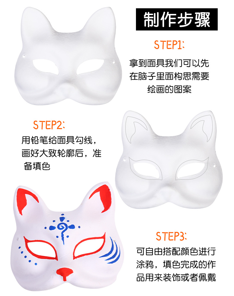 跨境手绘DIY猫脸面具狐狸面具精美猫脸彩绘面具 儿童纸浆厂家批发