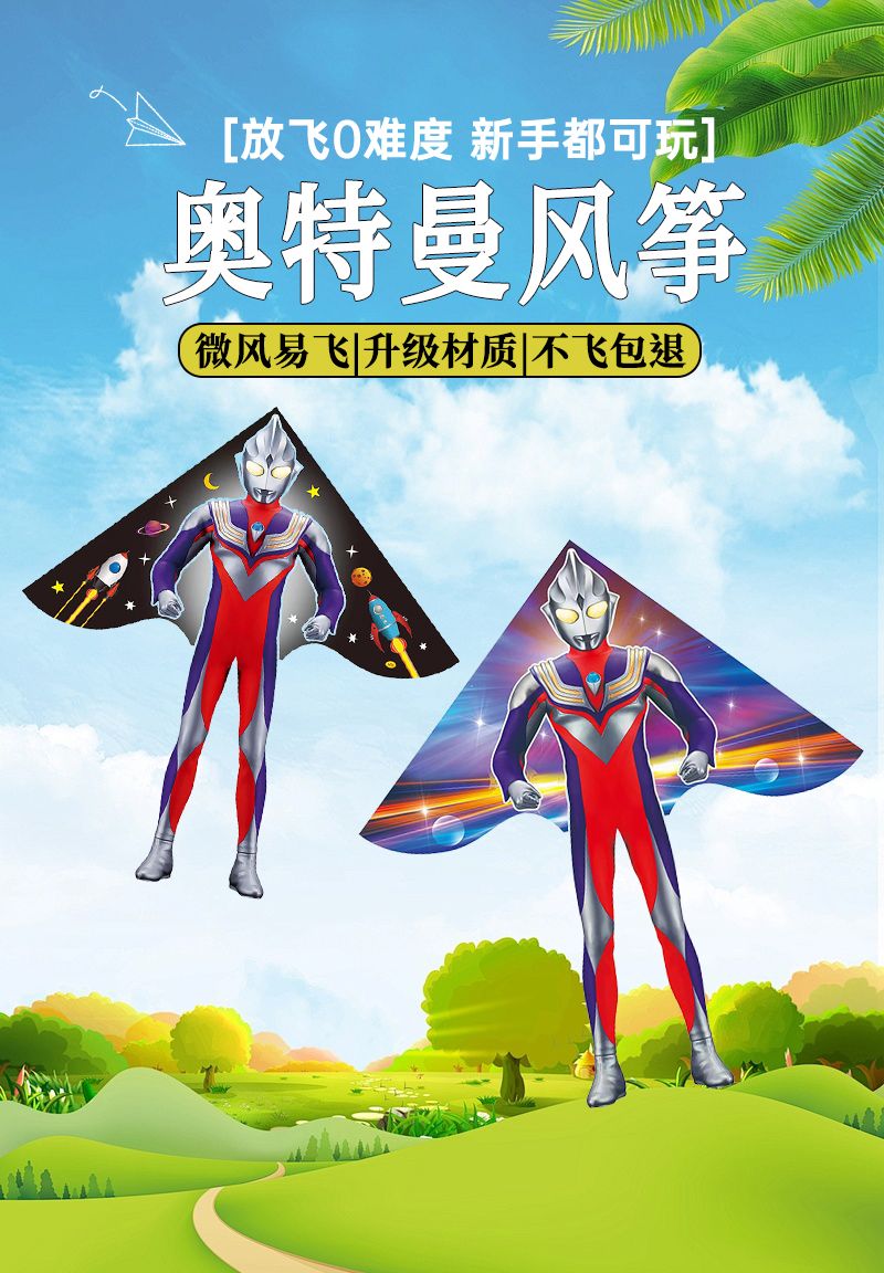 奥特曼风筝潍坊儿童新手男孩玩具钢铁侠新款运动迪迦泽塔网红线轮